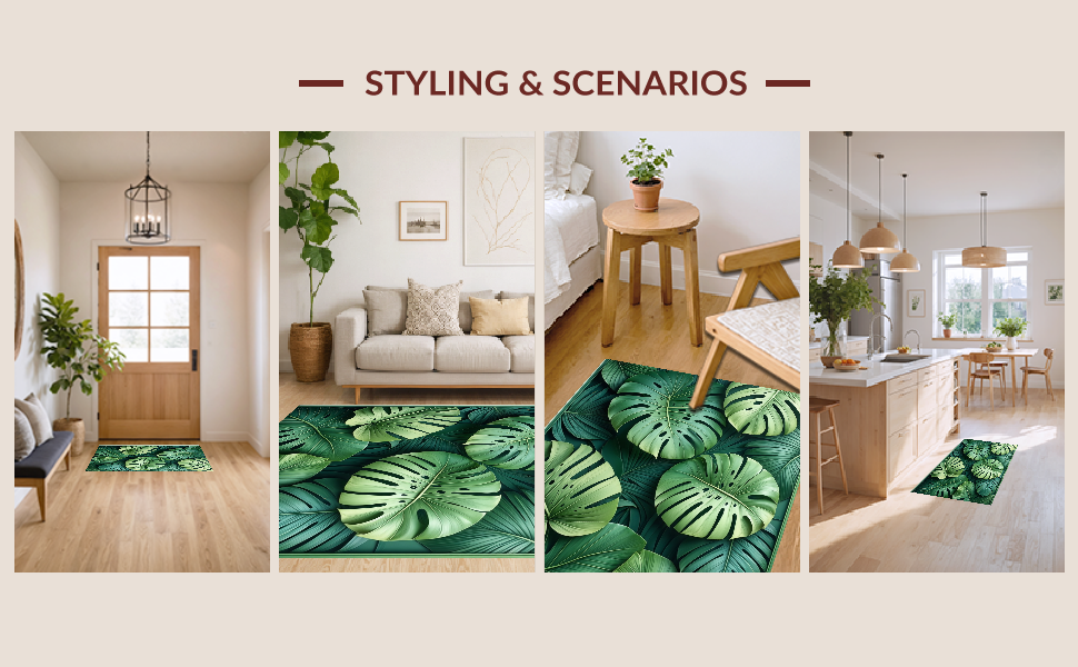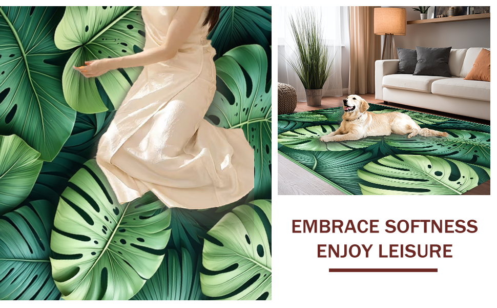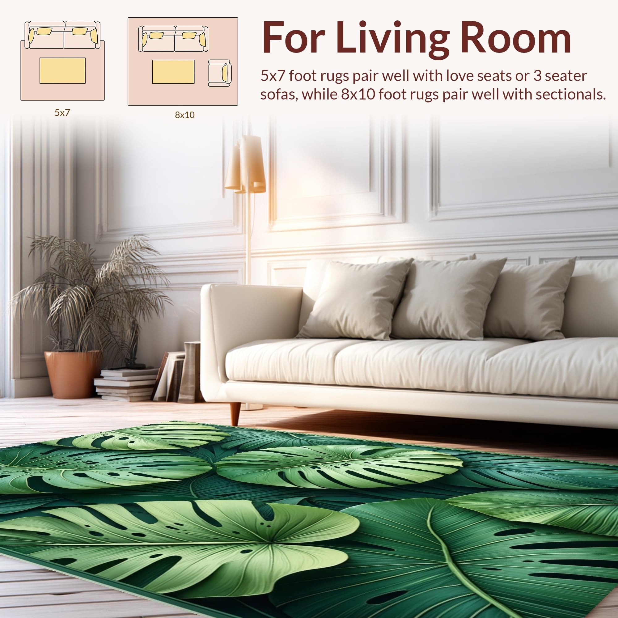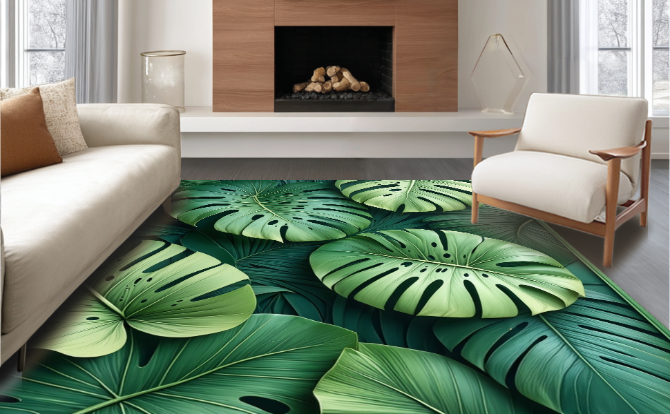 Ultra Soft Area Rug, Non Slip, Stain Resistant, Washable Area Rugs for Living Room, Bedroom, Fresh Tropical Vibe Rug Design(Green) Overview: