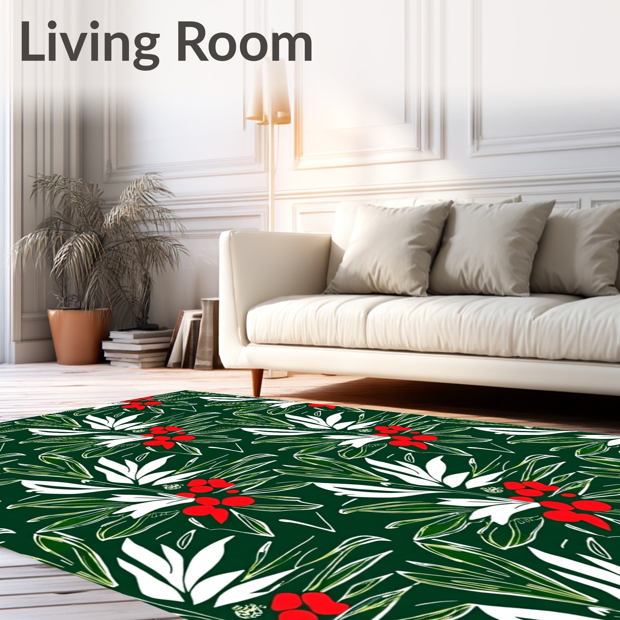 Ultra Soft Area Rug, Non Slip, Stain Resistant, Washable Area Rugs for Living Room, Bedroom, Frosted Holly Leaf Mosaic(Green) Overview:
