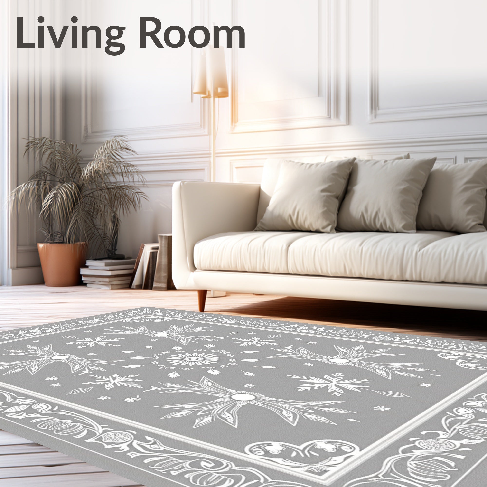 Ultra Soft Area Rug, Non Slip, Stain Resistant, Washable Area Rugs for Living Room, Bedroom, Frosty Crystal Wonderland Enchanted Seasonal(Gray) Overview: