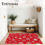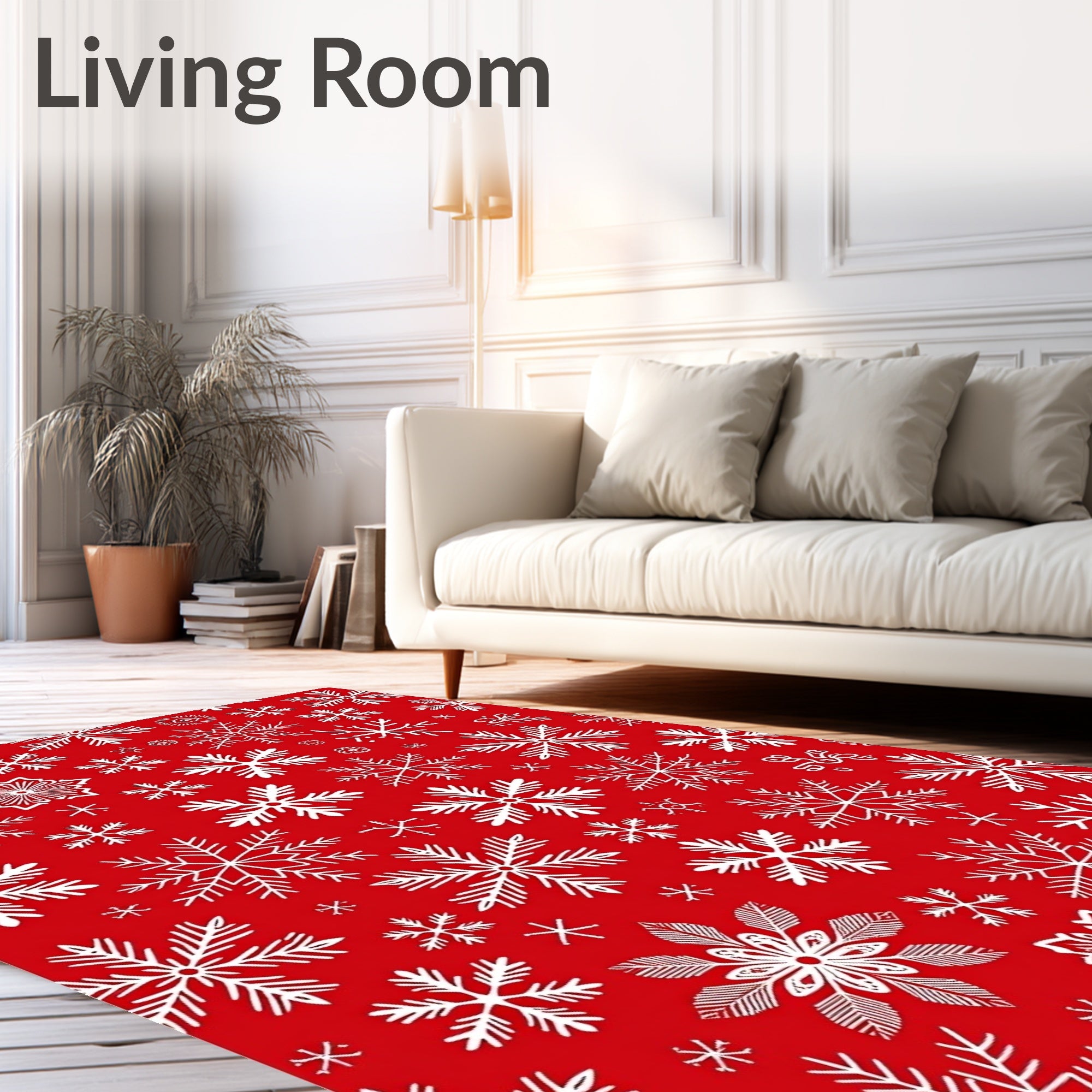Ultra Soft Area Rug, Non Slip, Stain Resistant, Washable Area Rugs for Living Room, Bedroom, Frosty Crystalline Wonderland Decorative Accent(Red) Overview: