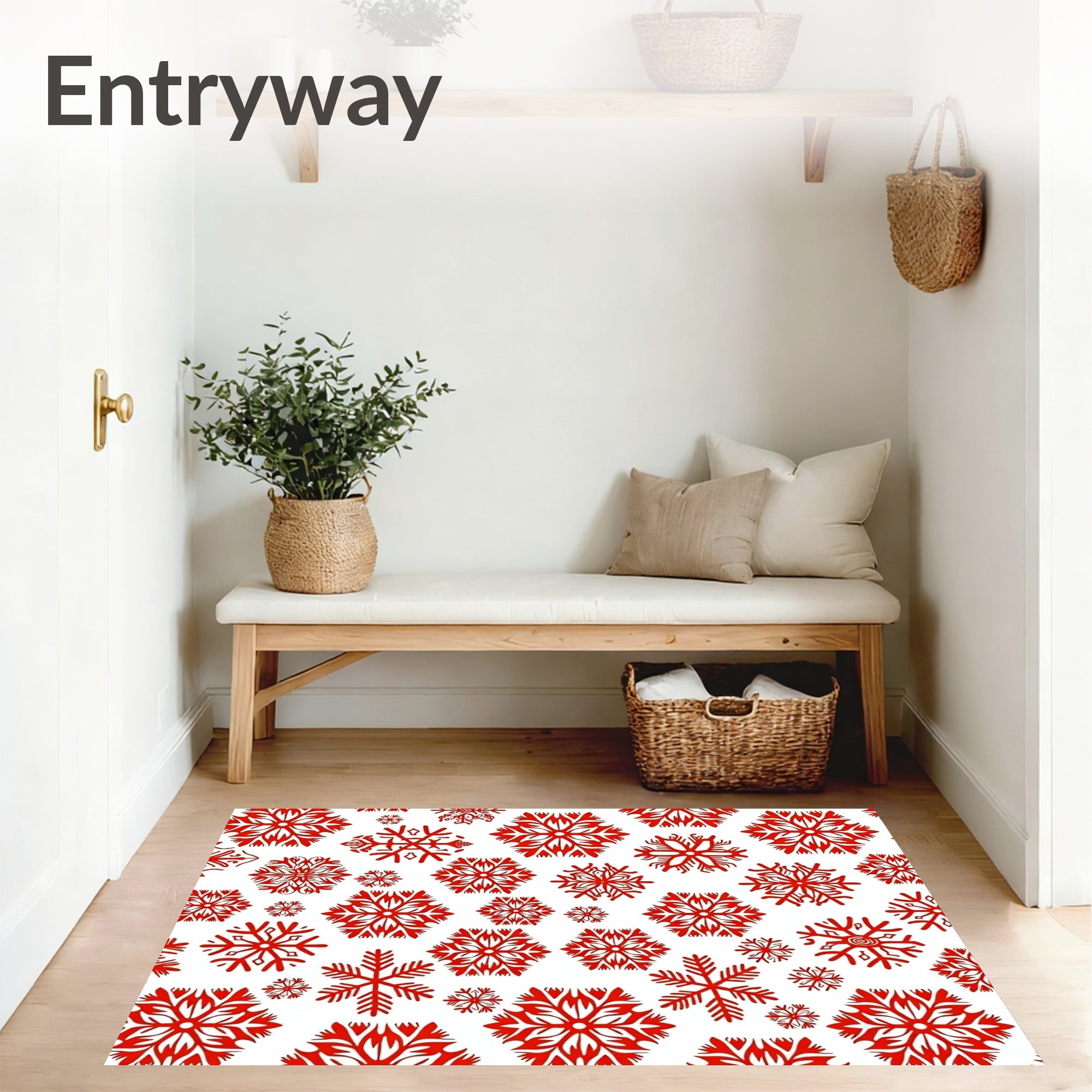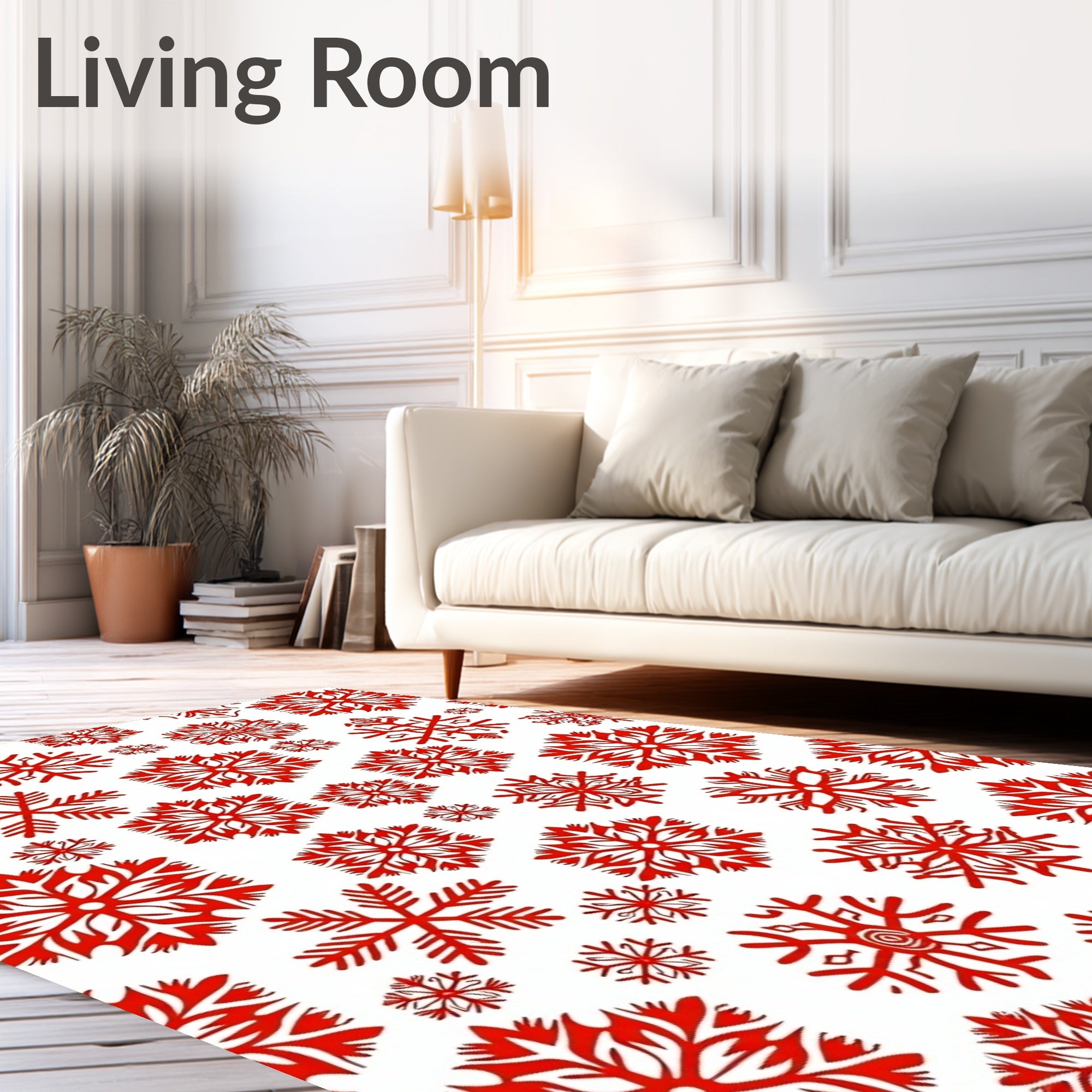 Ultra Soft Area Rug, Non Slip, Stain Resistant, Washable Area Rugs for Living Room, Bedroom, Frosty Wonderland Snowflake Festive Holiday Celebration Winter(Red) Overview:
