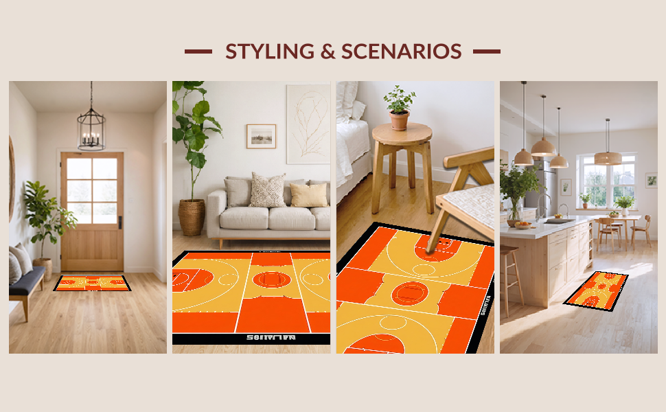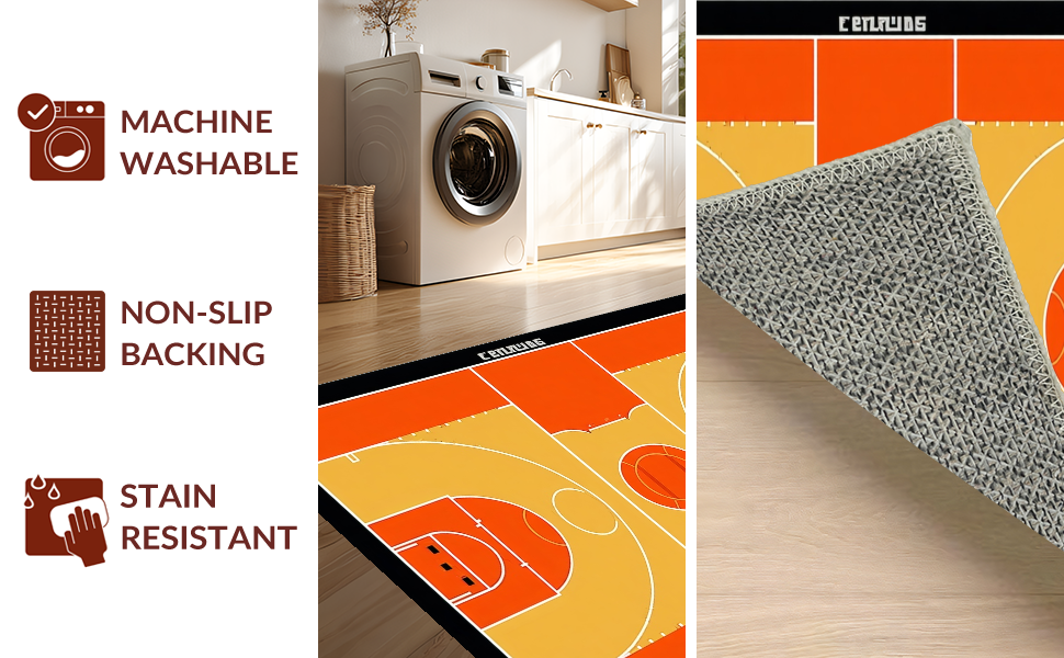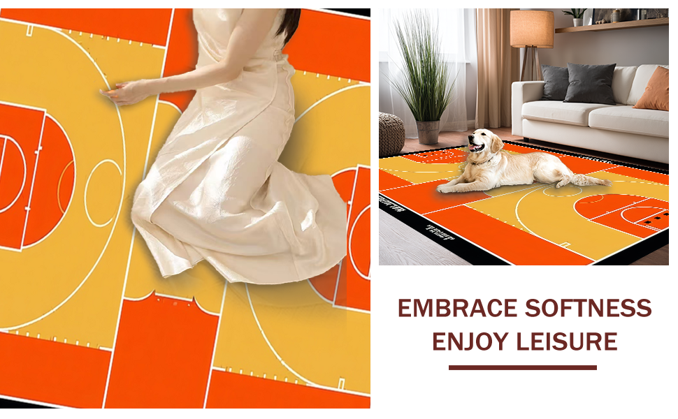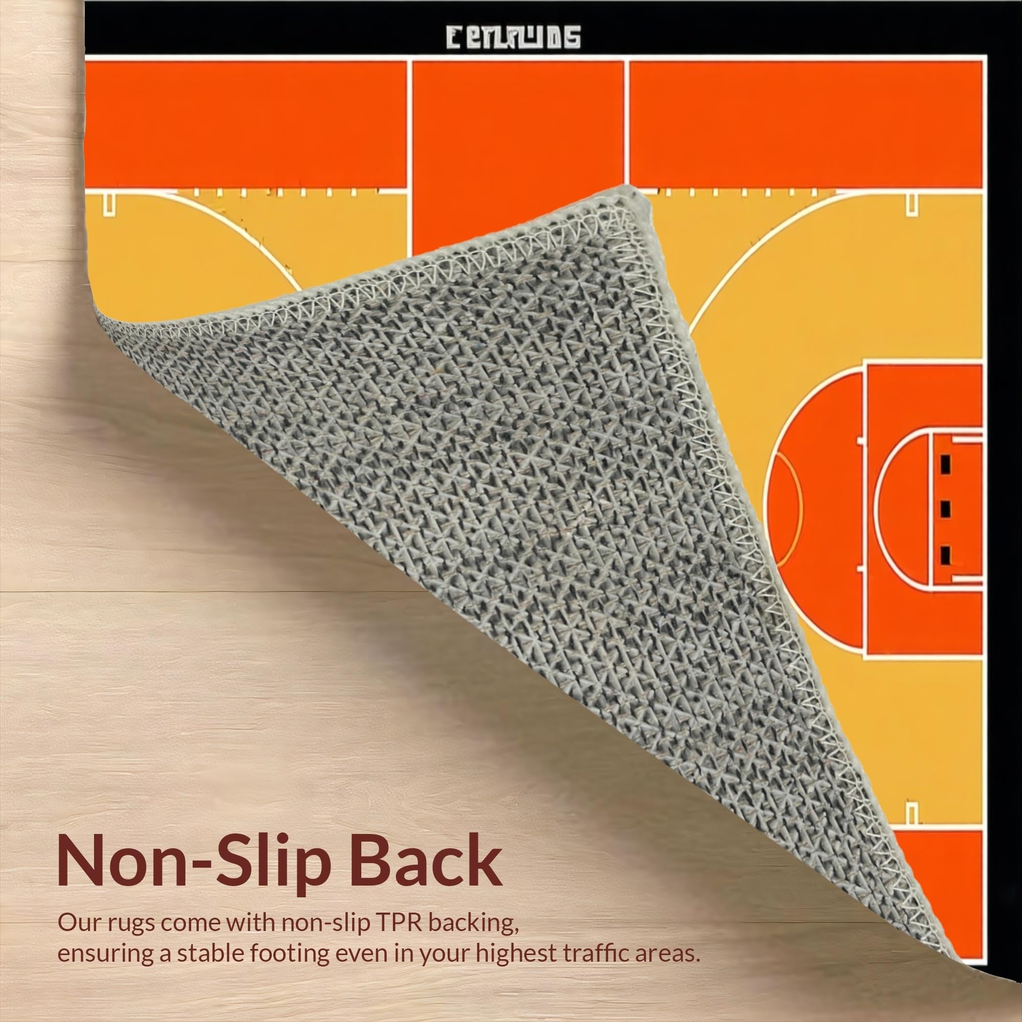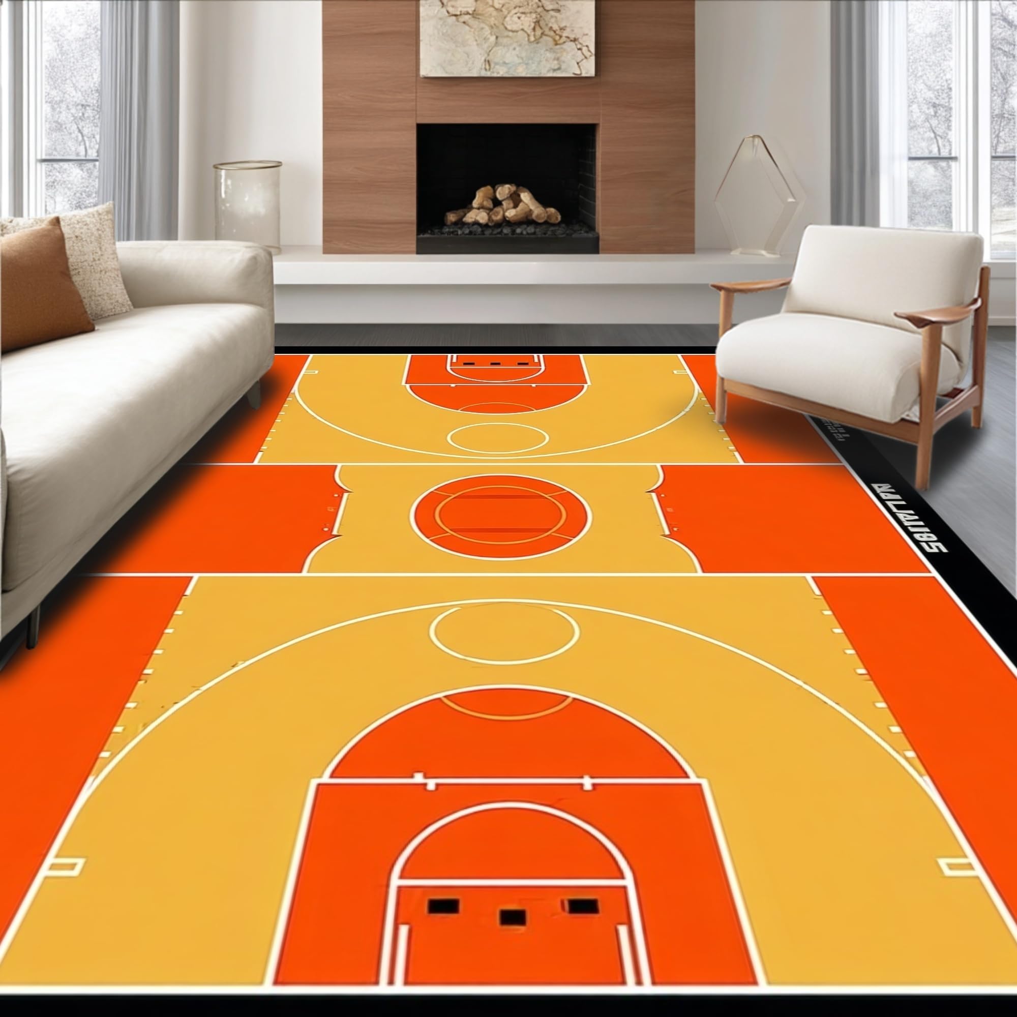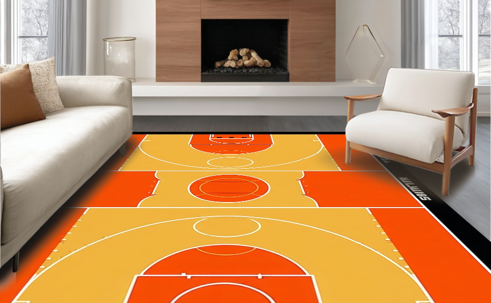 Ultra Soft Area Rug, Non Slip, Stain Resistant, Washable Area Rugs for Living Room, Bedroom, Fun Bold Basketball Graphic Element(Black) Overview: