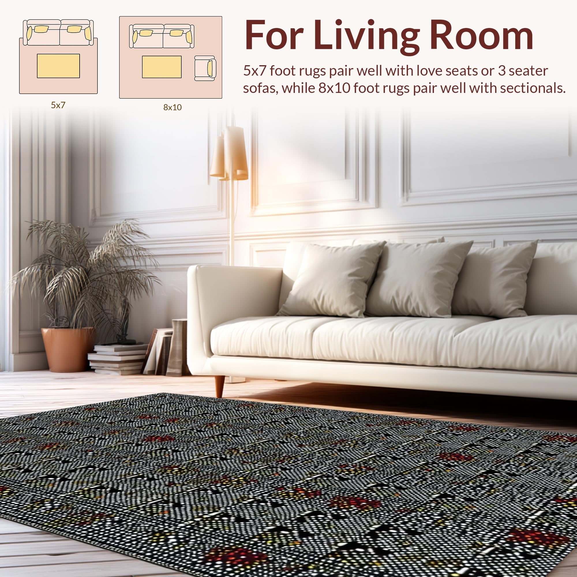 Ultra Soft Area Rug, Non Slip, Stain Resistant, Washable Area Rugs for Living Room, Bedroom, Fun Contemporary Print Inspiration(Gray) Overview:
