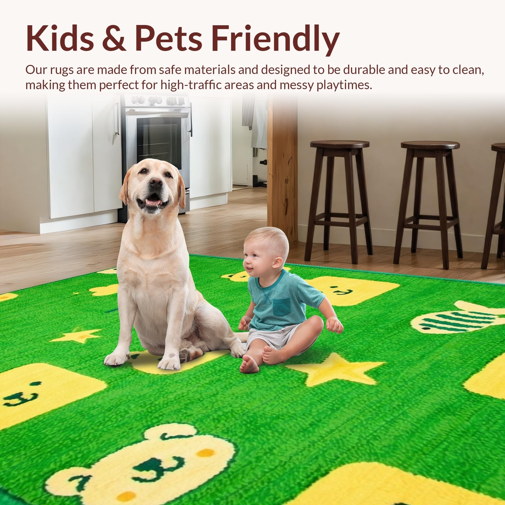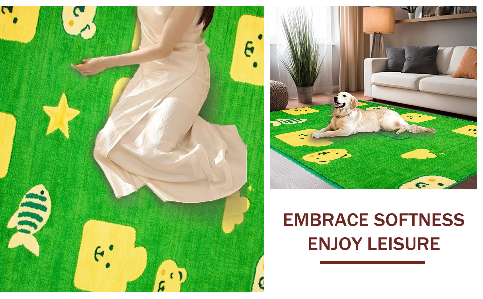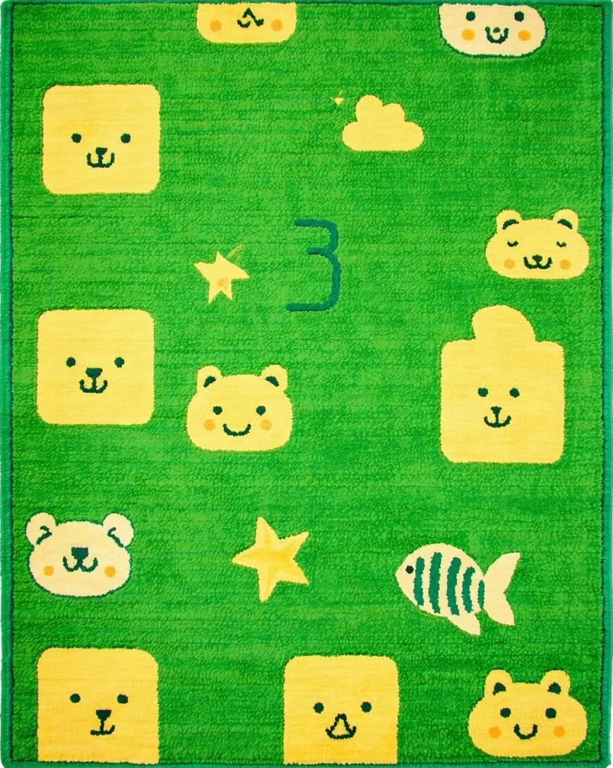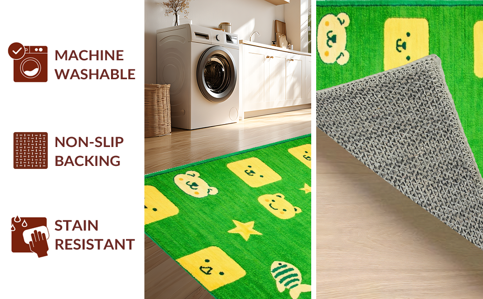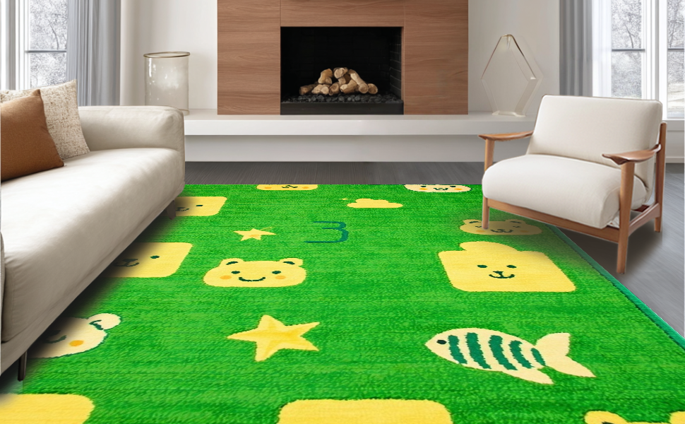 Ultra Soft Area Rug, Non Slip, Stain Resistant, Washable Area Rugs for Living Room, Bedroom, Fun Dynamic ABC Exploration(Green) Overview: