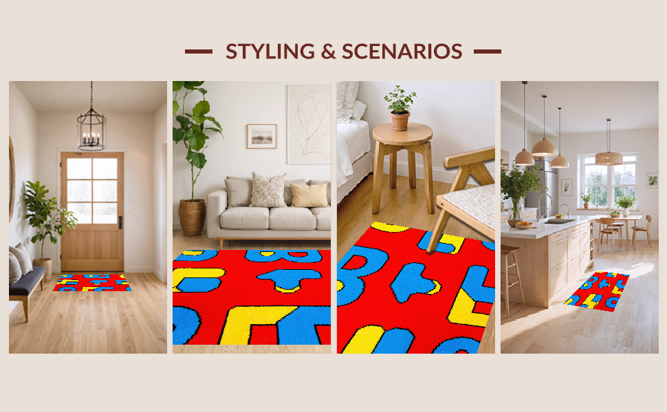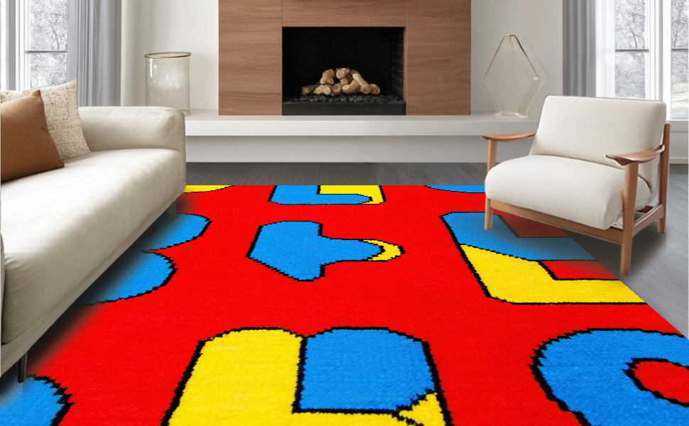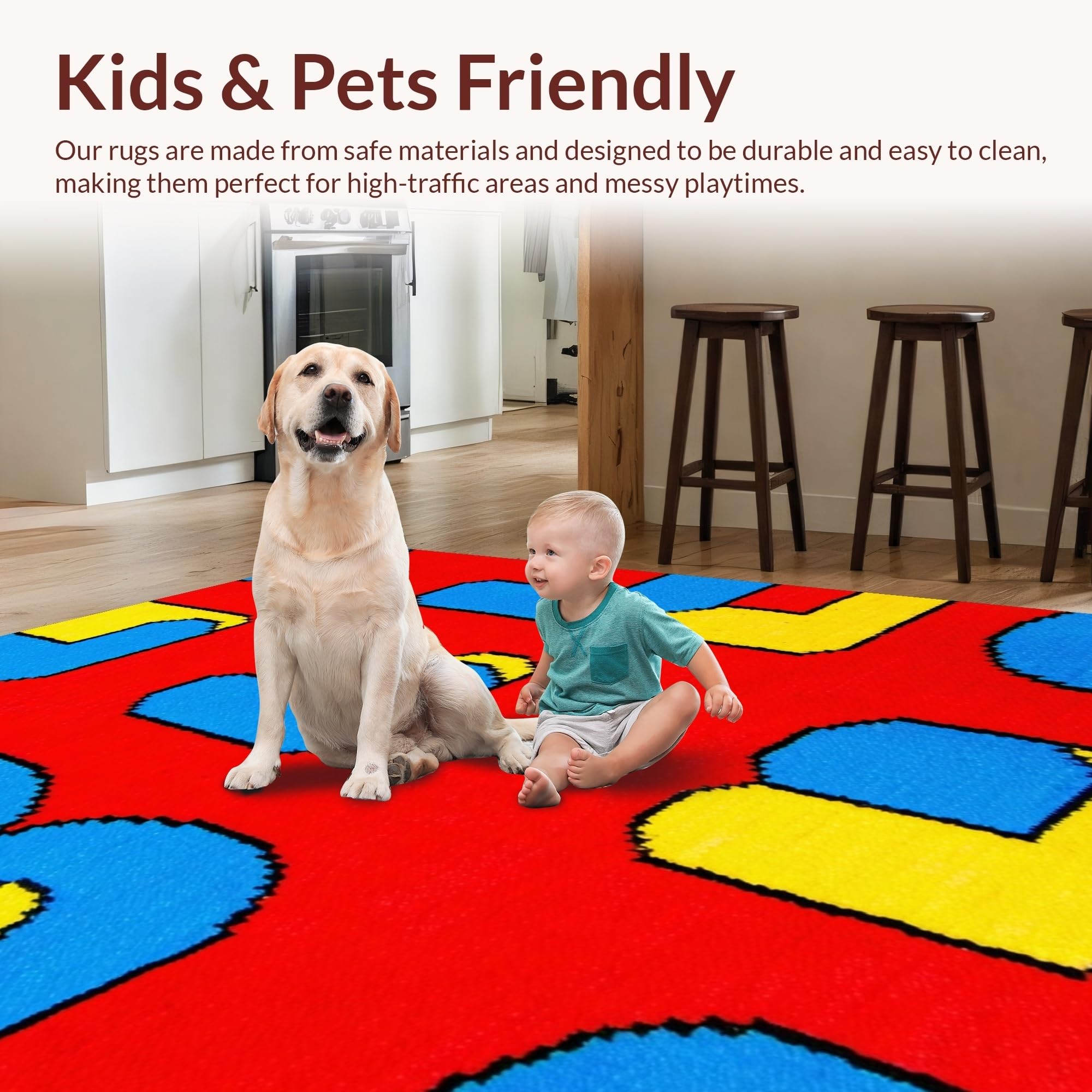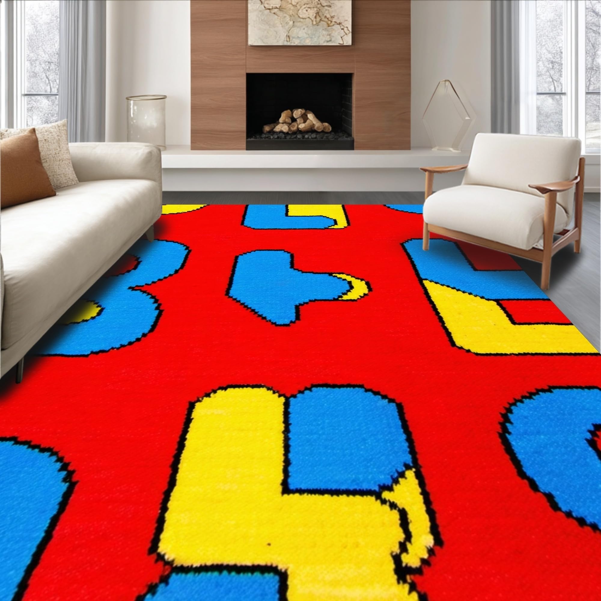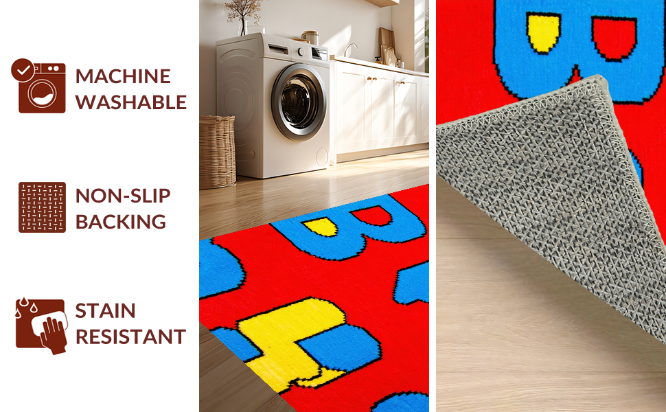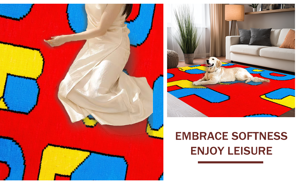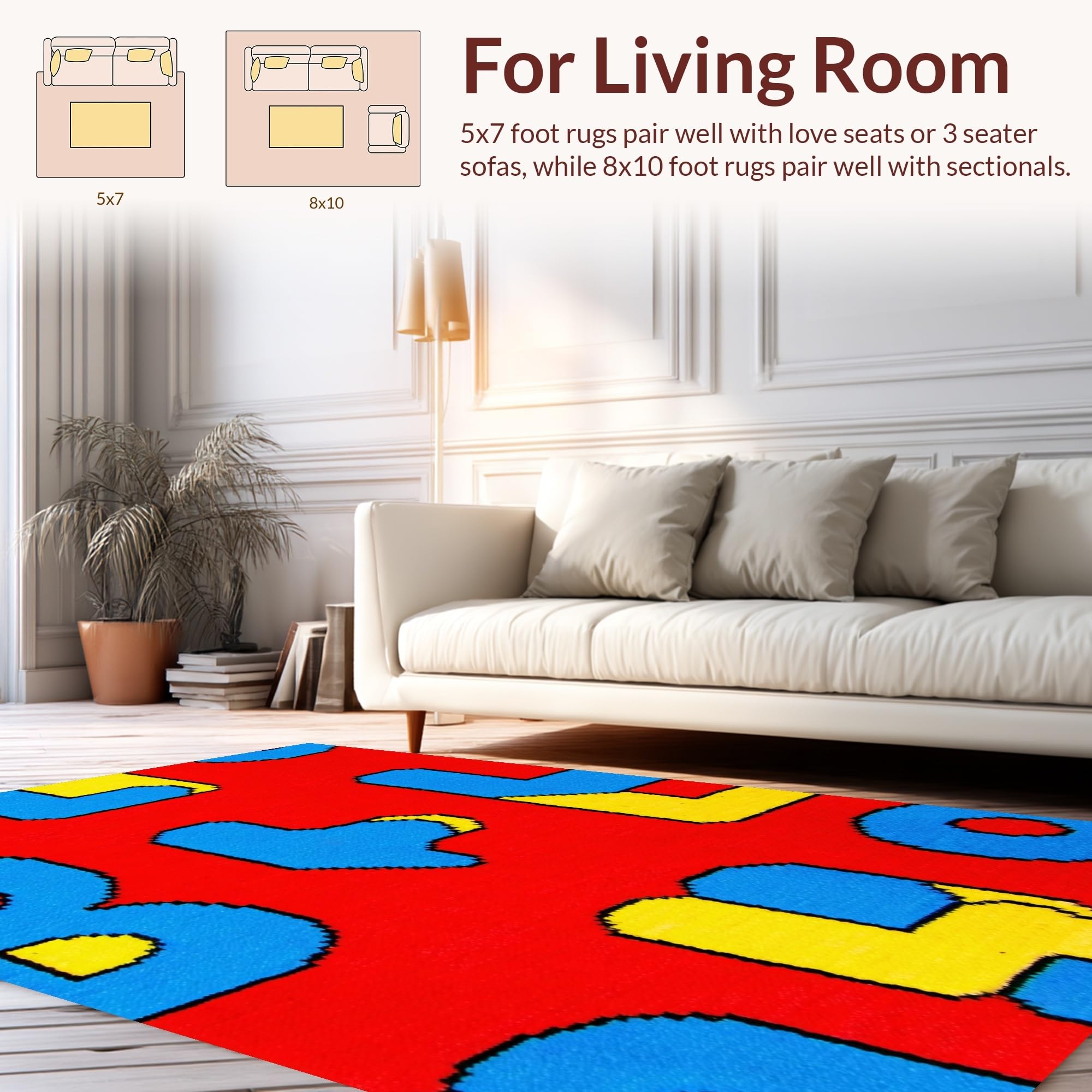 Ultra Soft Area Rug, Non Slip, Stain Resistant, Washable Area Rugs for Living Room, Bedroom, Fun Engaging Educational Typography Style(Red) Overview: