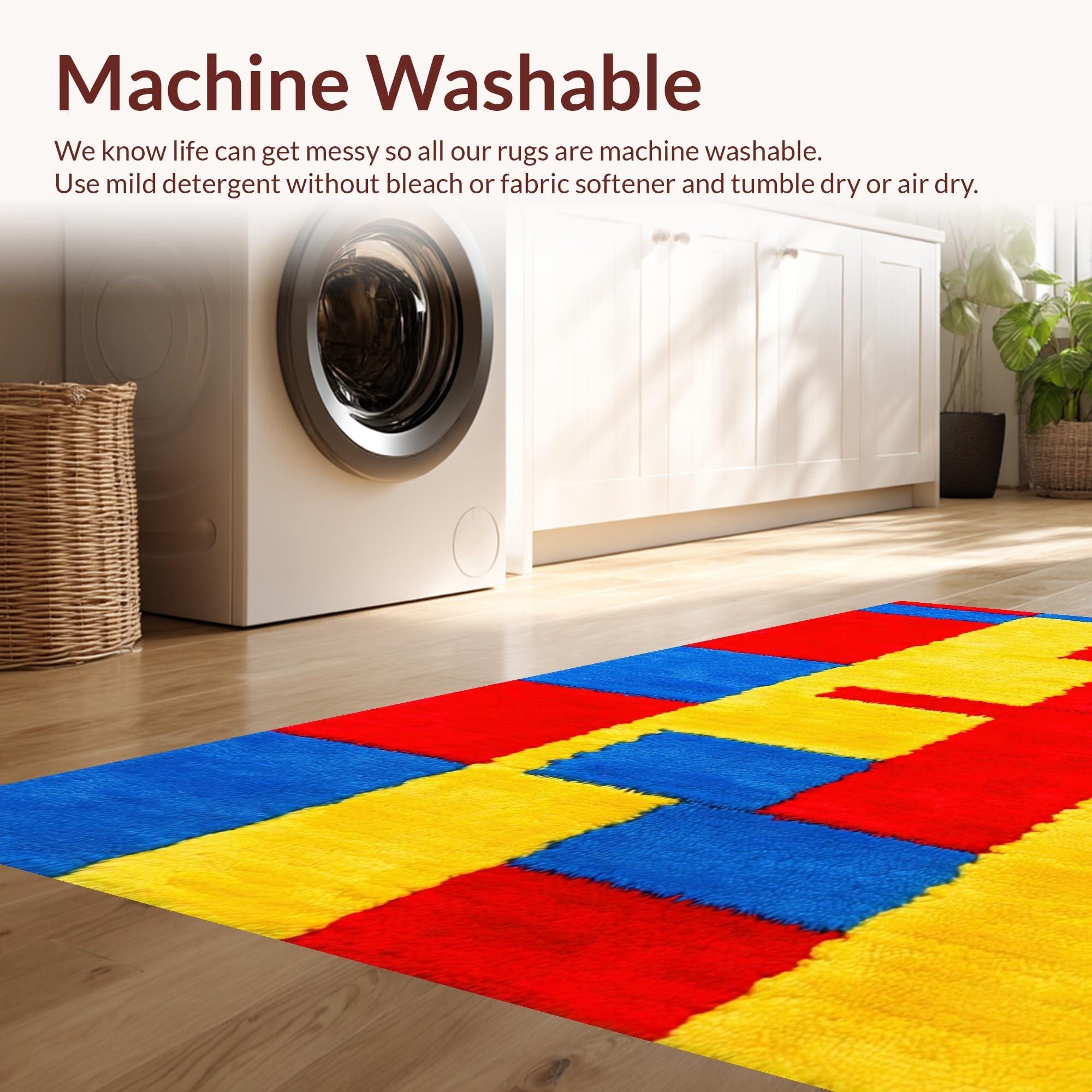 - Machine Washable: Our rugs can be easily thrown in the wash machine.