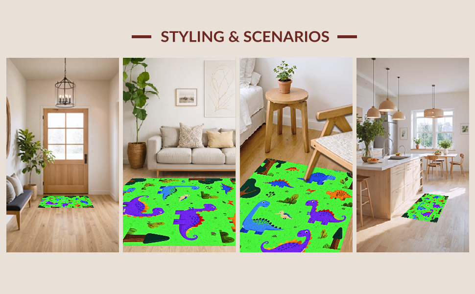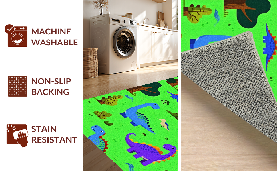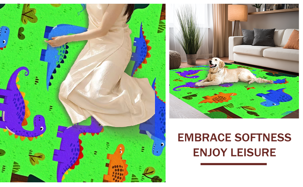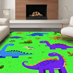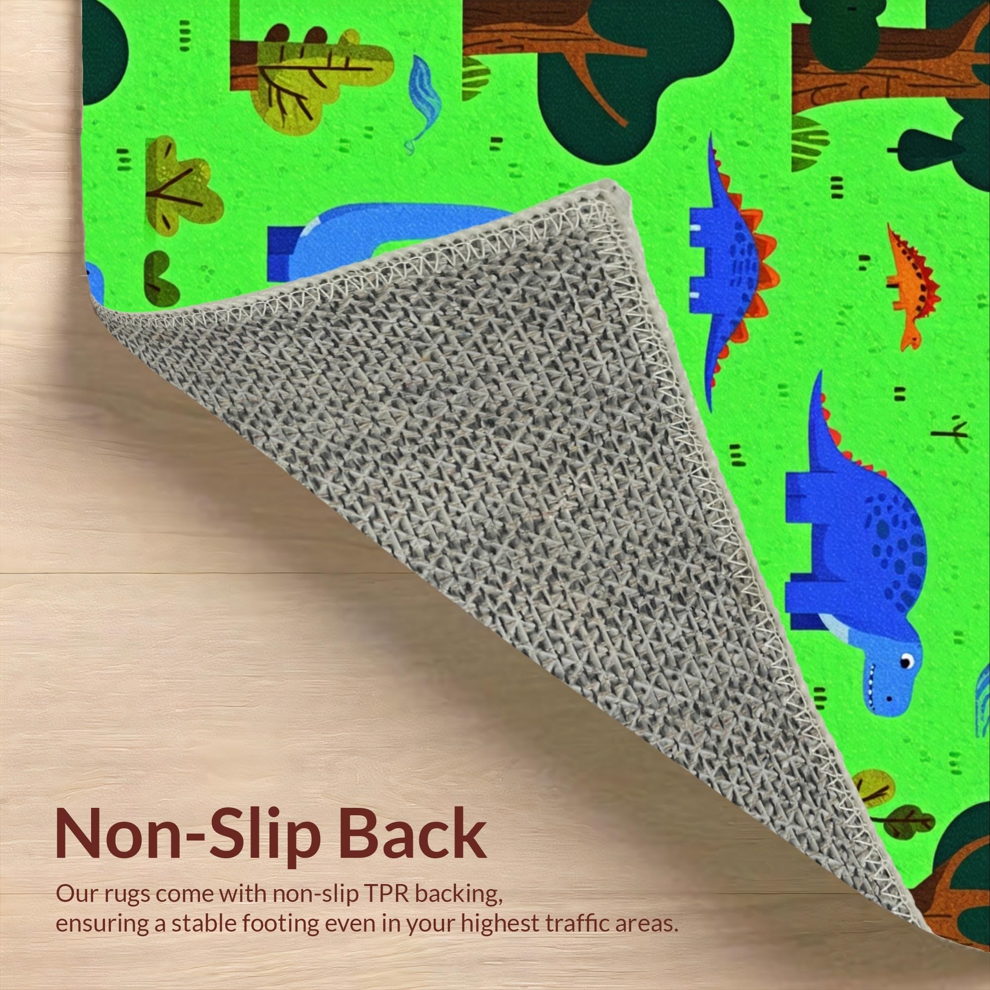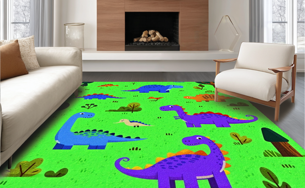 Ultra Soft Area Rug, Non Slip, Stain Resistant, Washable Area Rugs for Living Room, Bedroom, Fun-Filled T-Rex and Friends Scene(Green) Overview: