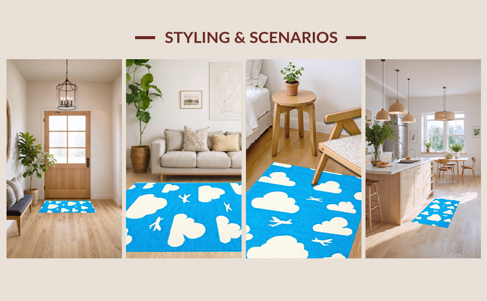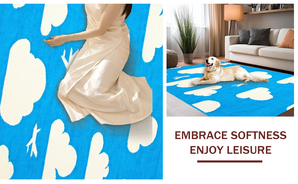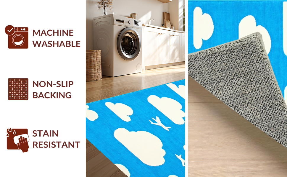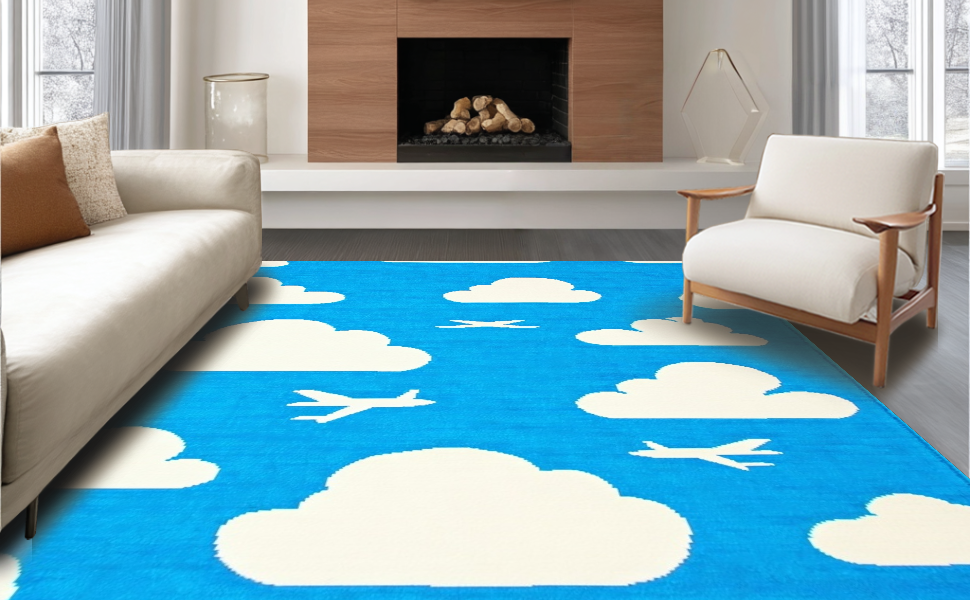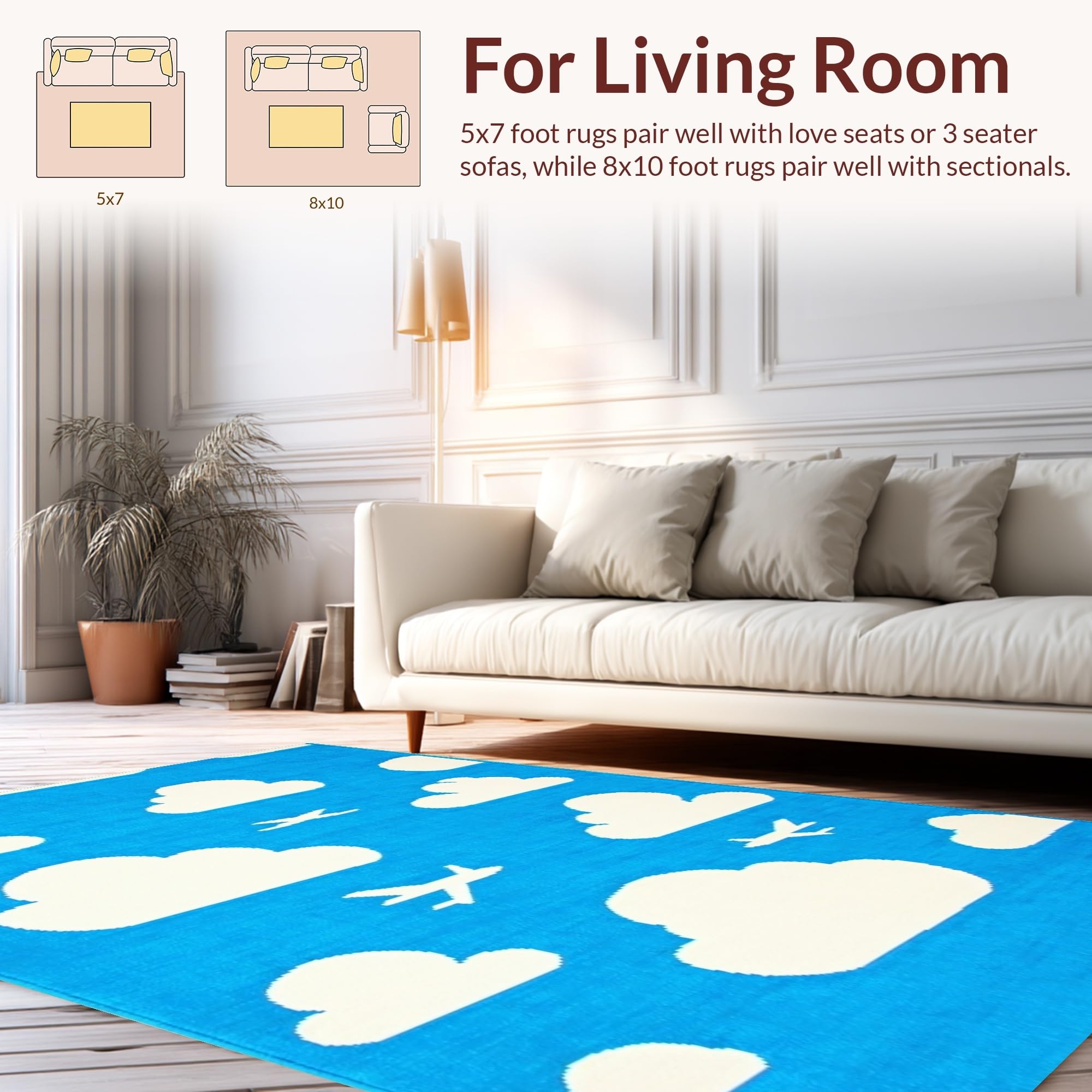 Ultra Soft Area Rug, Non Slip, Stain Resistant, Washable Area Rugs for Living Room, Bedroom, Fun Flight Inspired Decor(Blue) Overview: