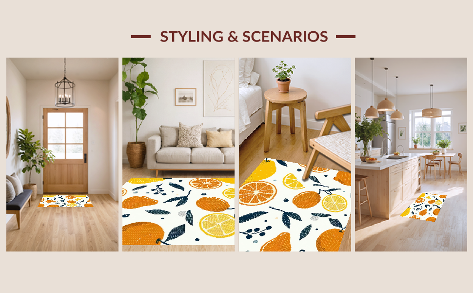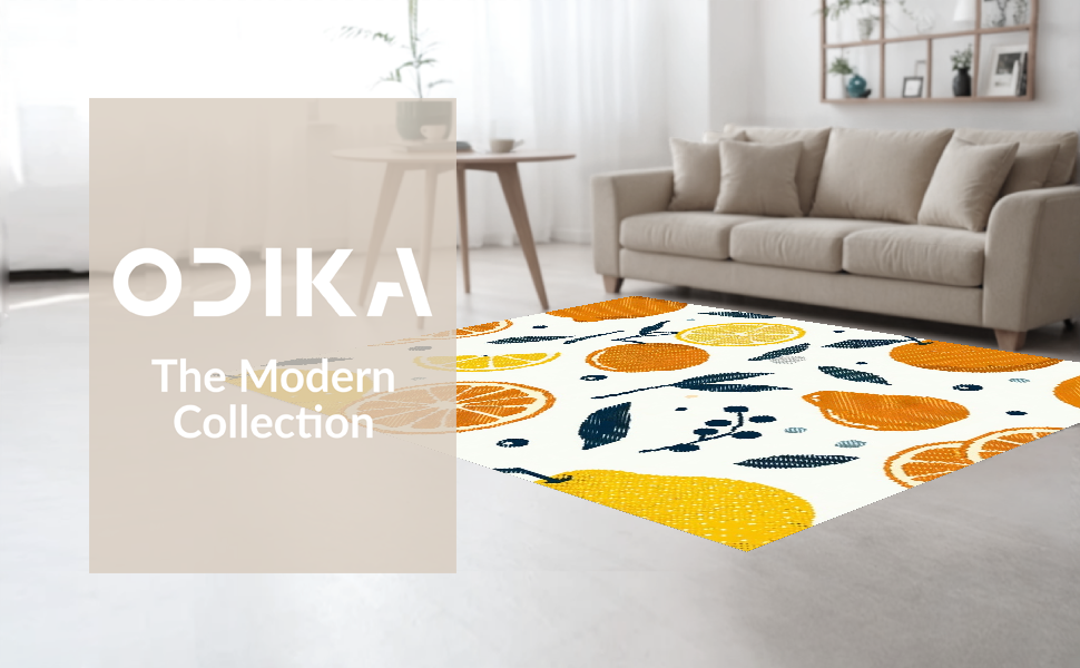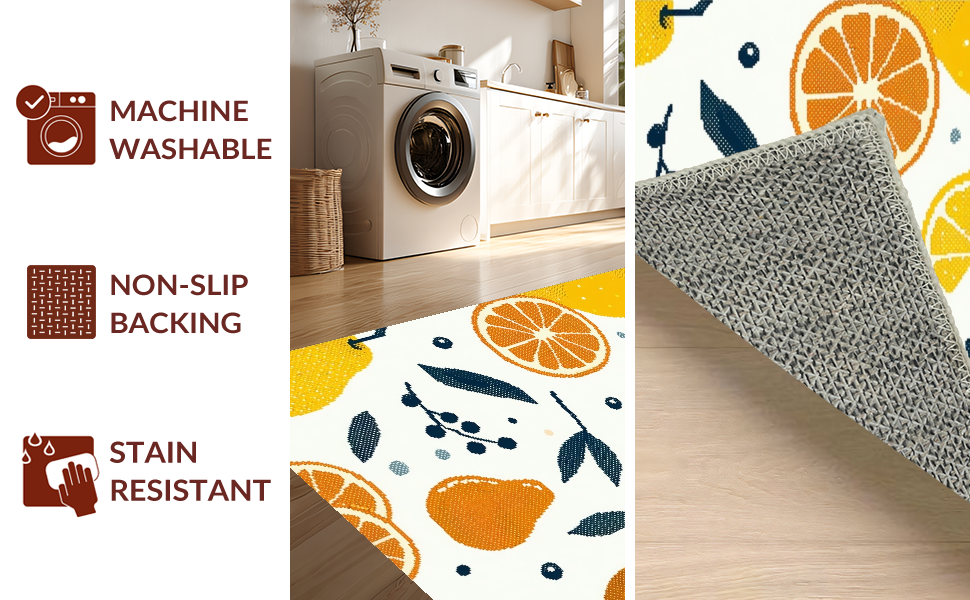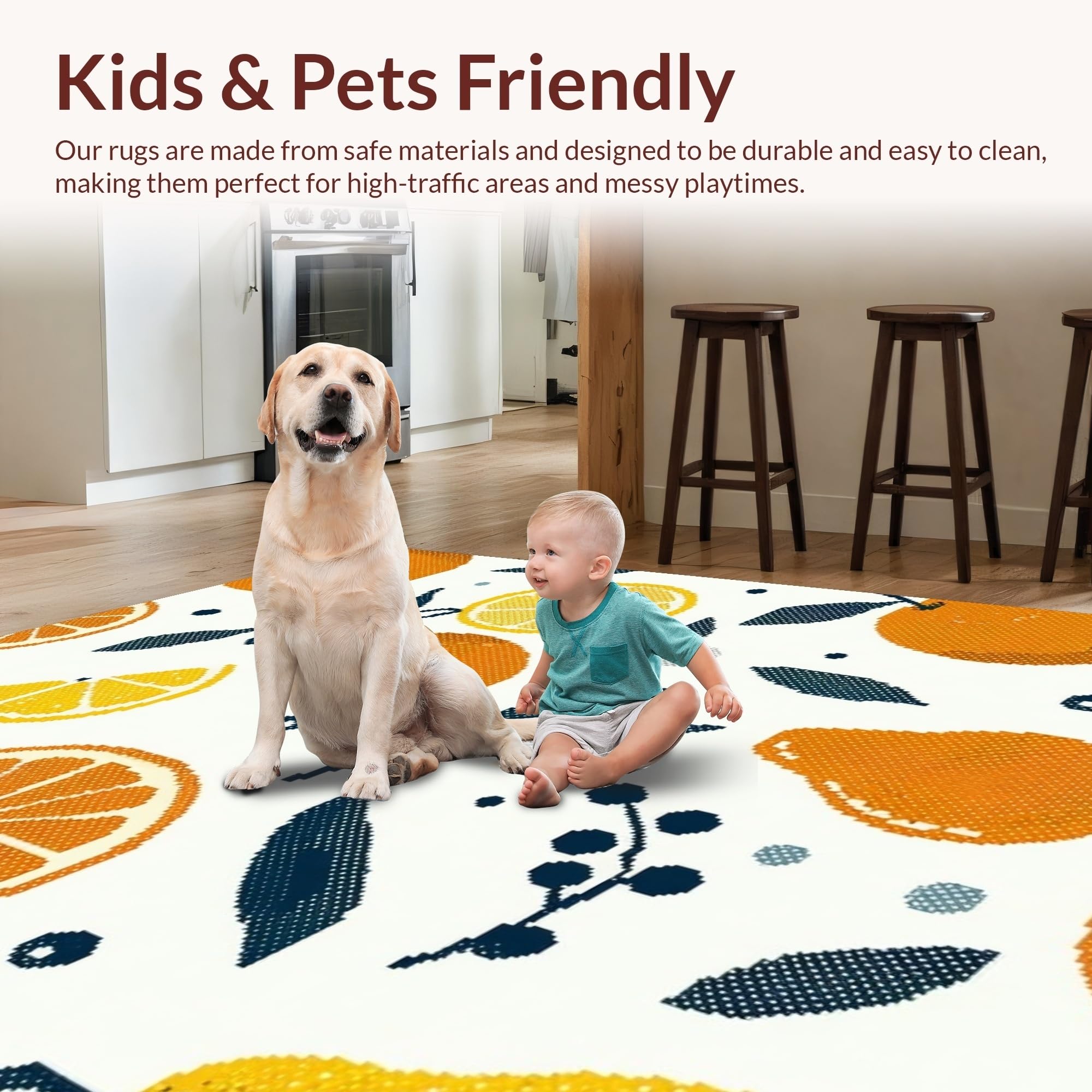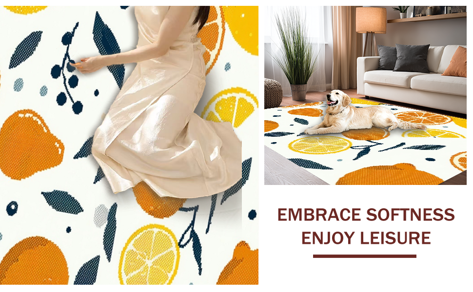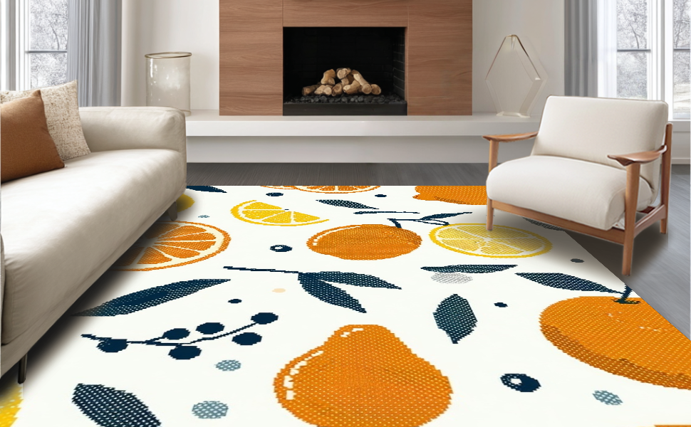 Ultra Soft Area Rug, Non Slip, Stain Resistant, Washable Area Rugs for Living Room, Bedroom, Fun Fruity Scandinavian Chic Style(Yellow) Overview: