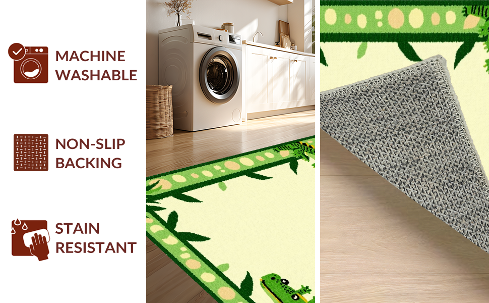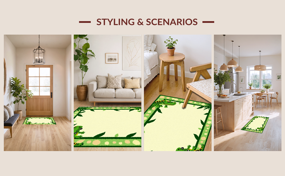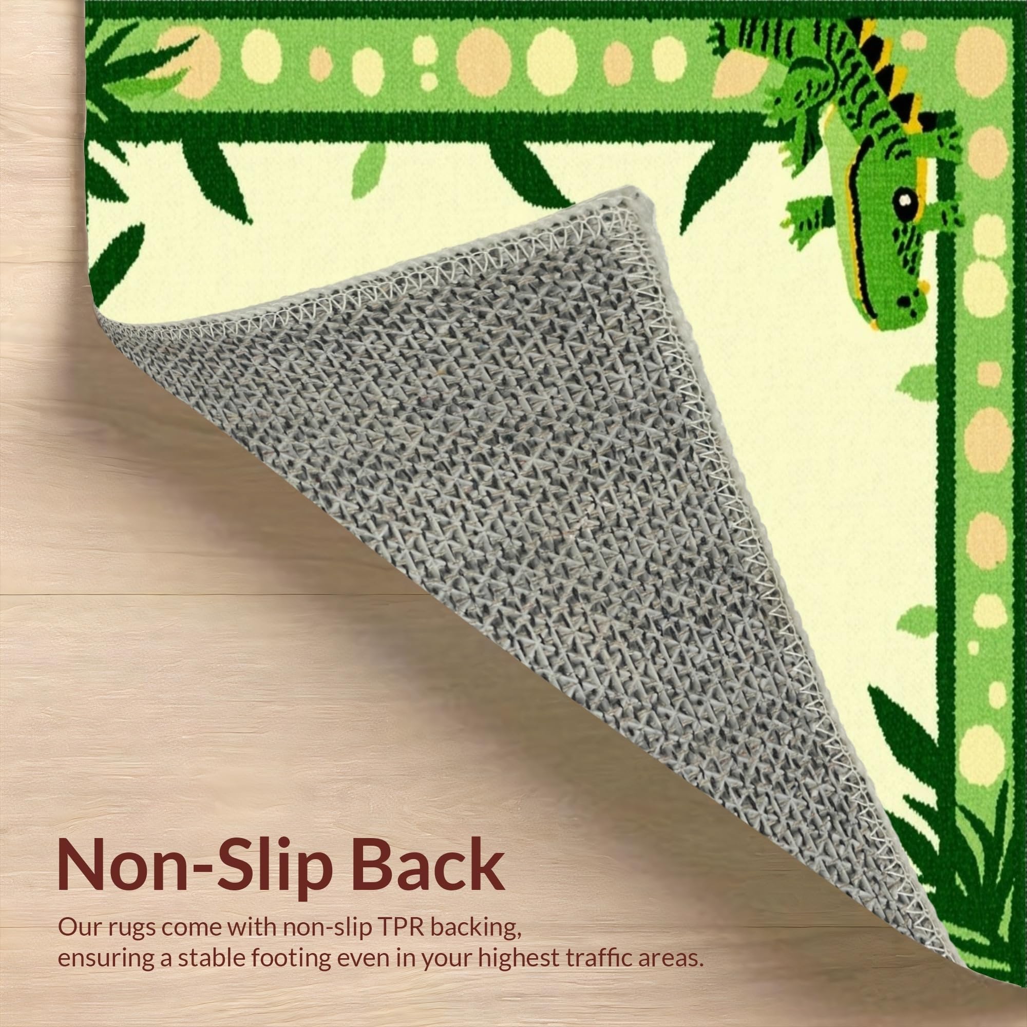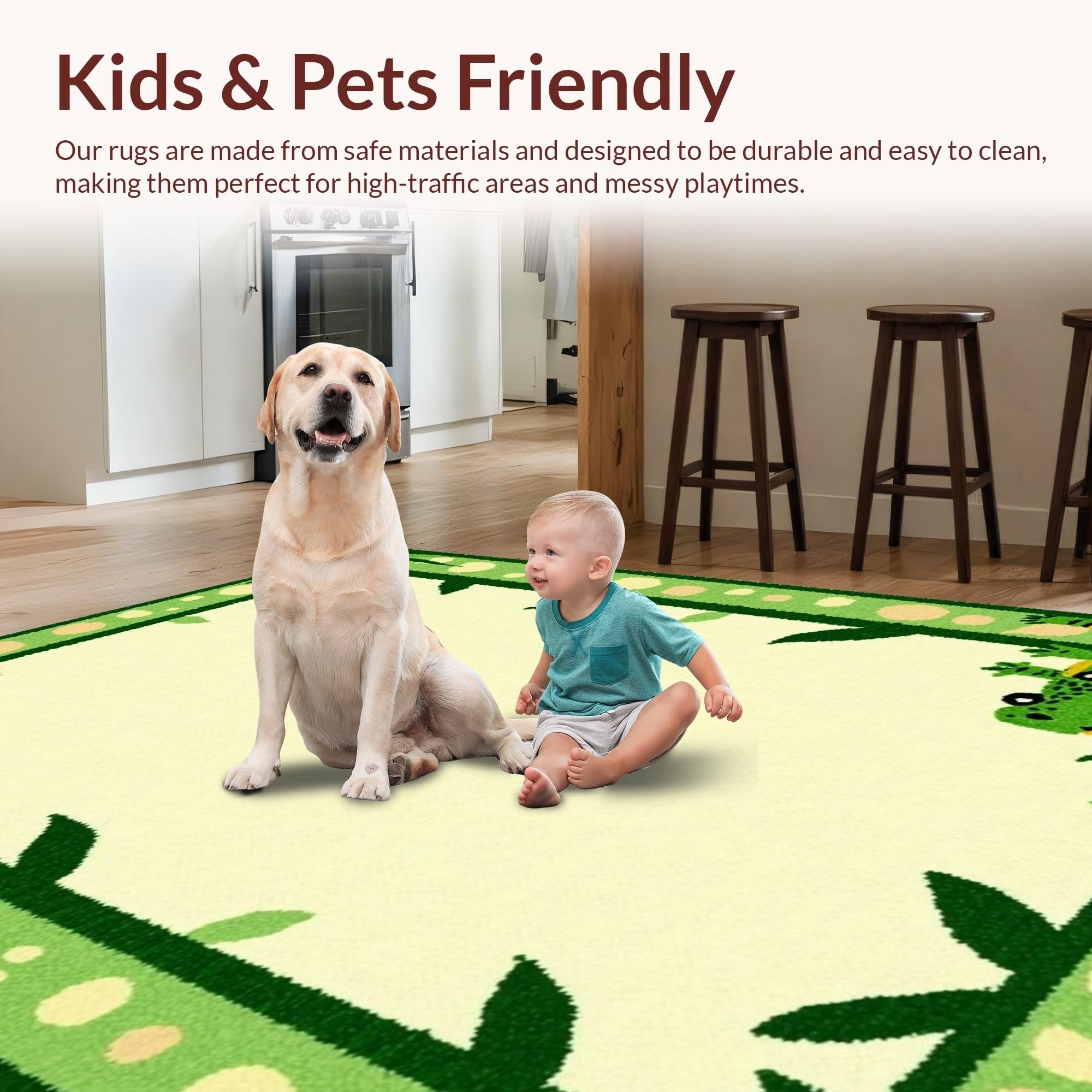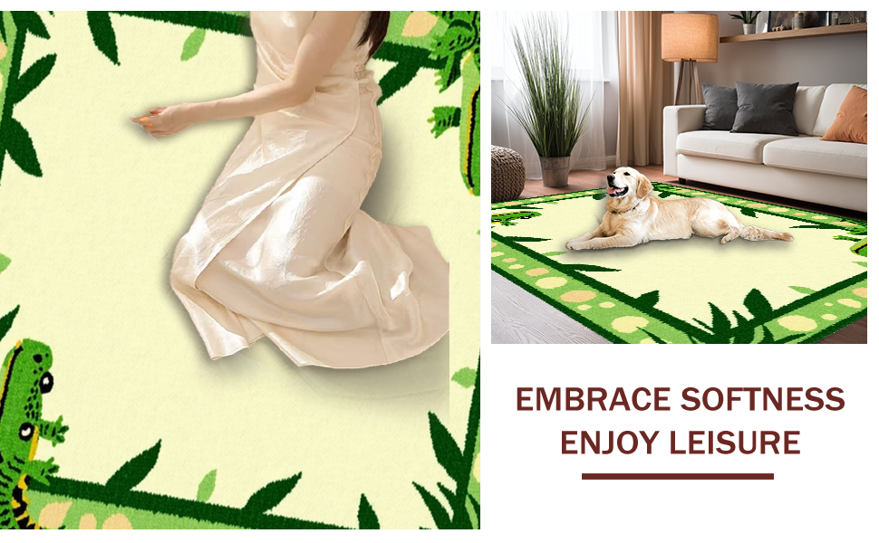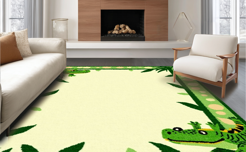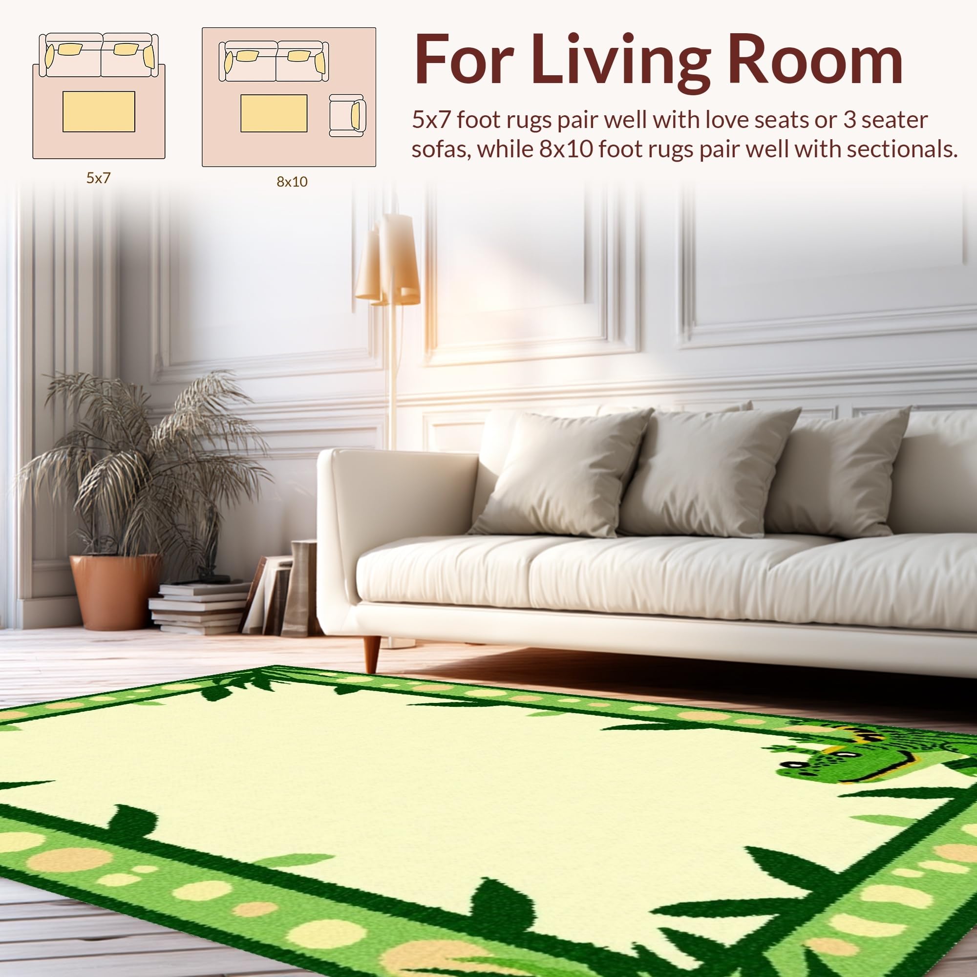 Ultra Soft Area Rug, Non Slip, Stain Resistant, Washable Area Rugs for Living Room, Bedroom, Fun Green Creature Illustration Style(Green) Overview: