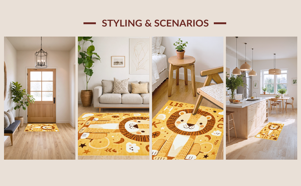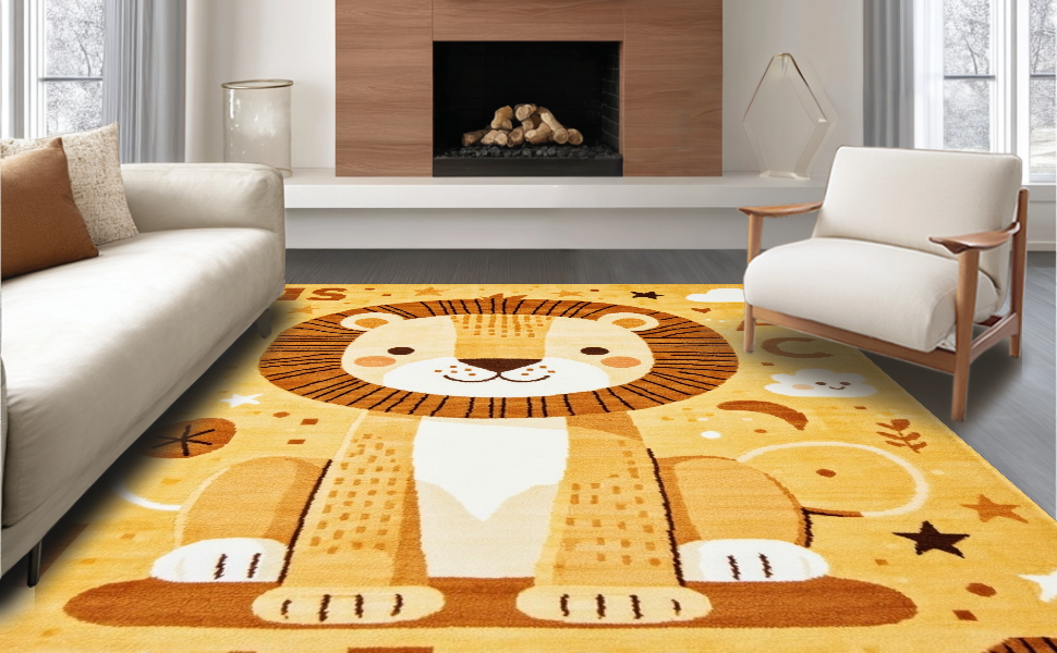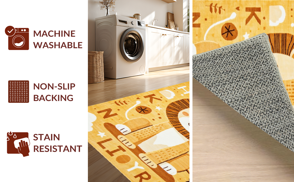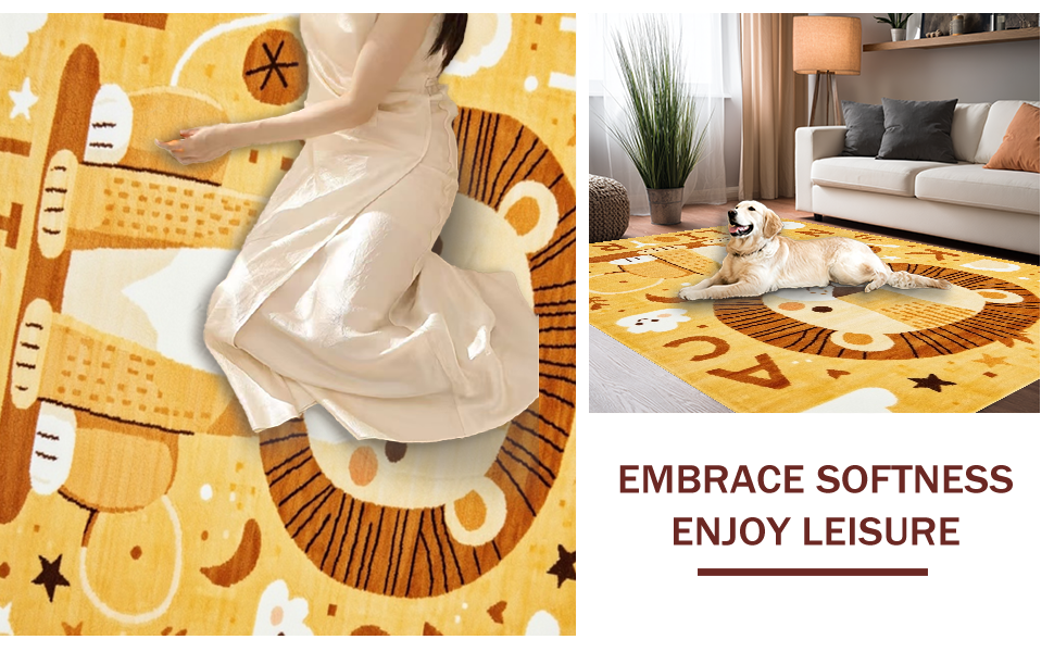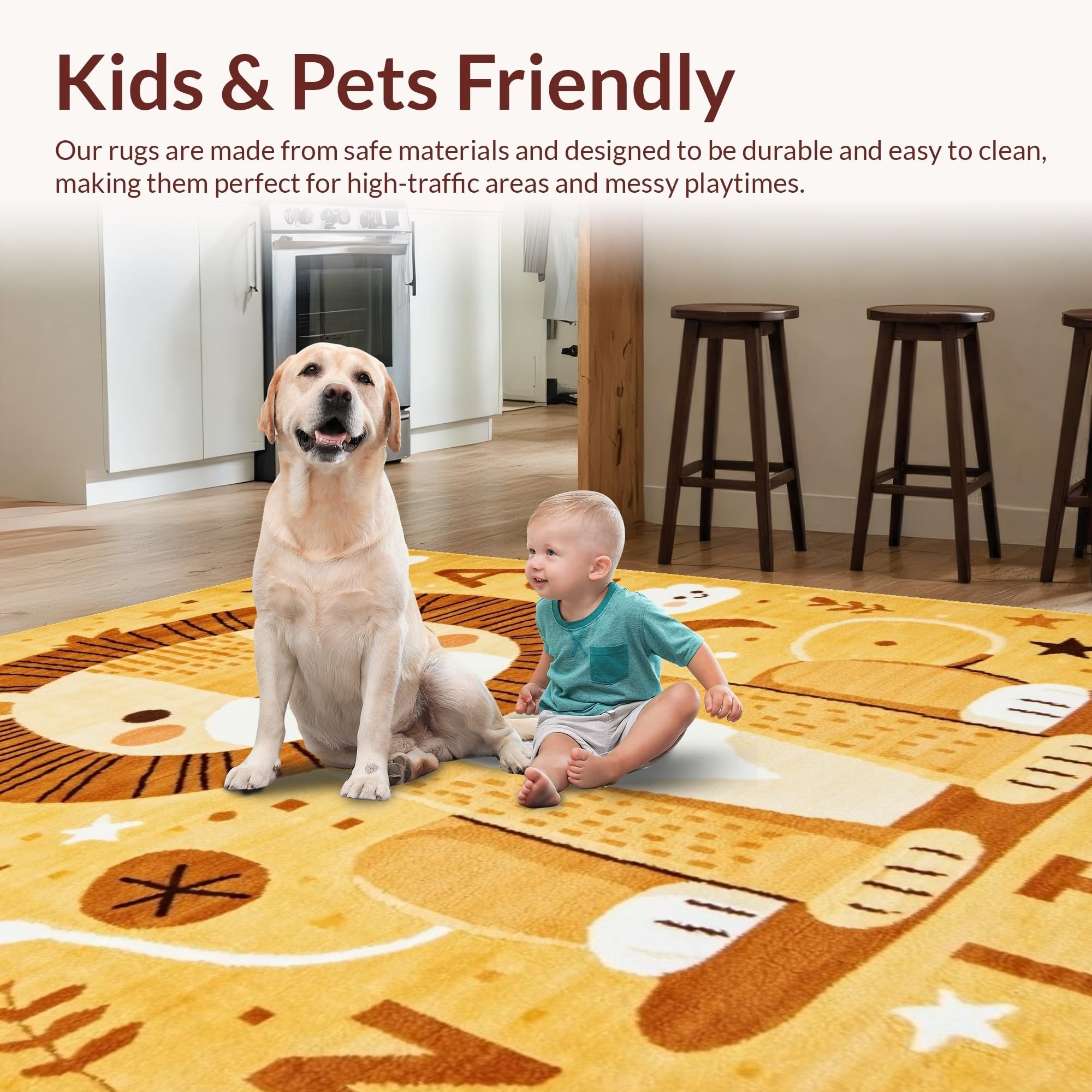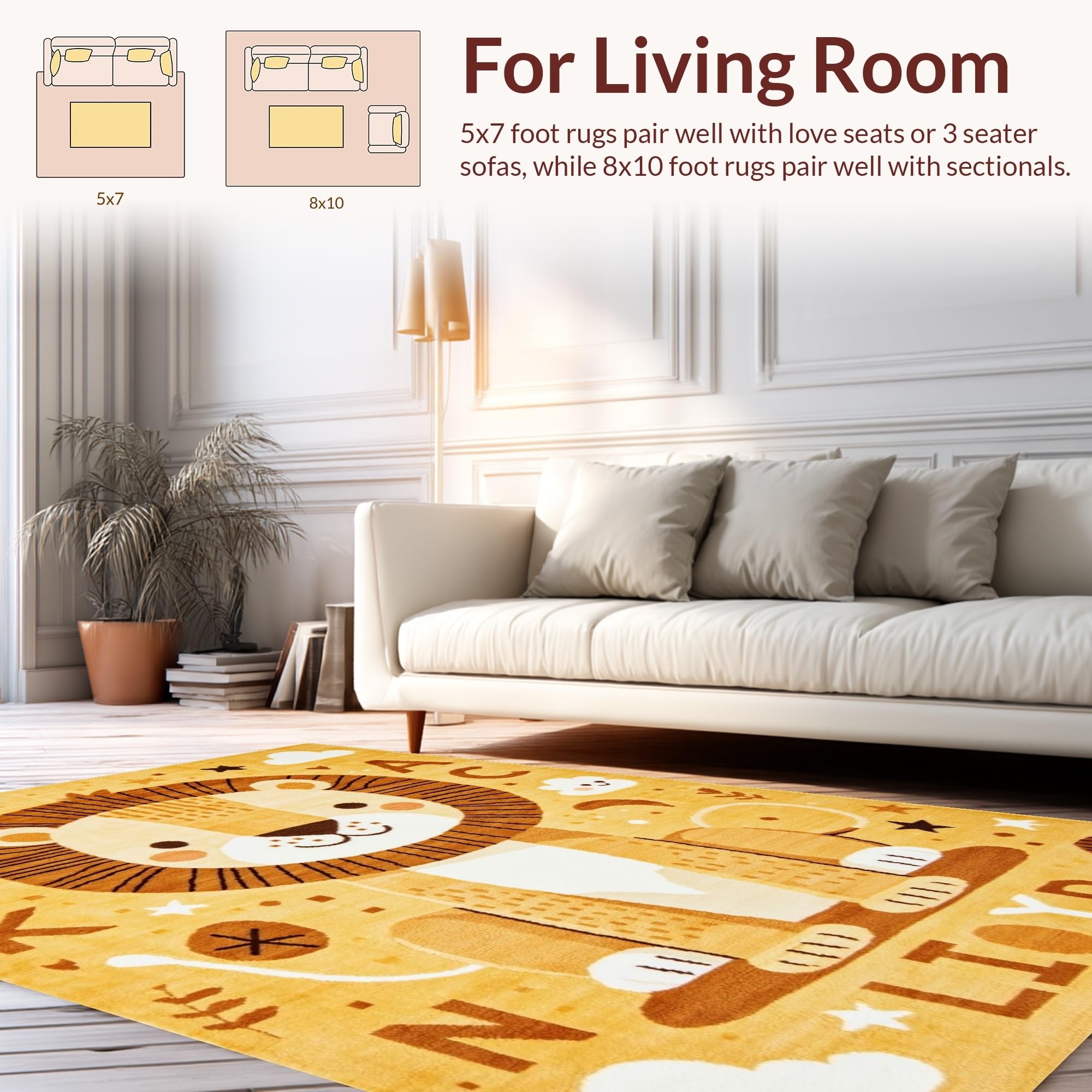 Ultra Soft Area Rug, Non Slip, Stain Resistant, Washable Area Rugs for Living Room, Bedroom, Fun Interactive Toddler Aesthetic(Beige) Overview: