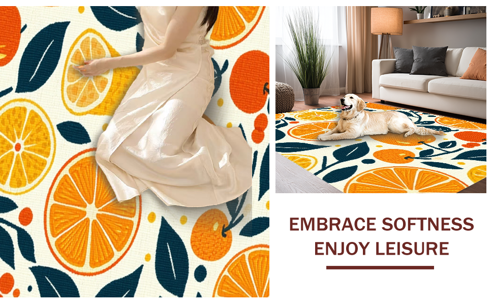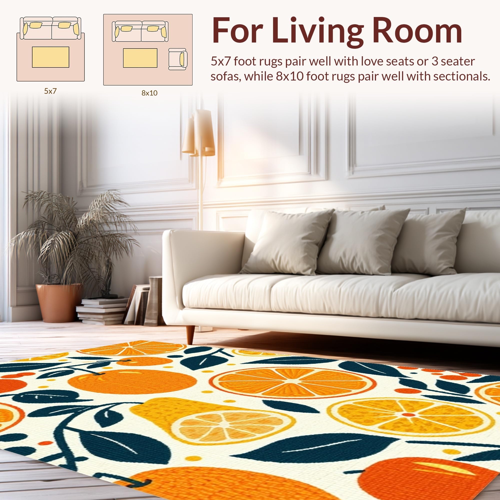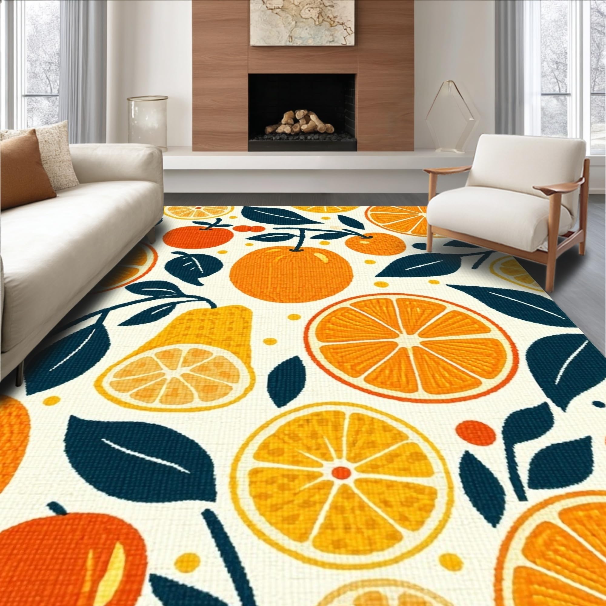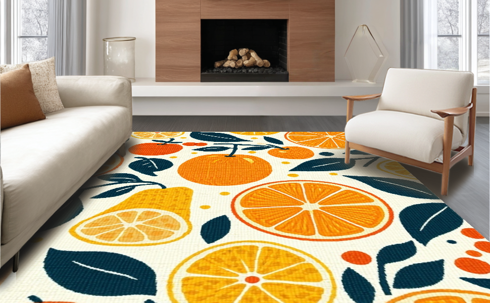 Ultra Soft Area Rug, Non Slip, Stain Resistant, Washable Area Rugs for Living Room, Bedroom, Fun Juicy Patterned Surface(Orange) Overview: