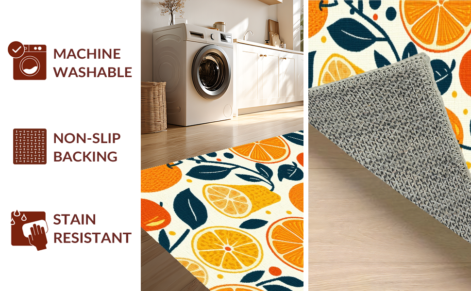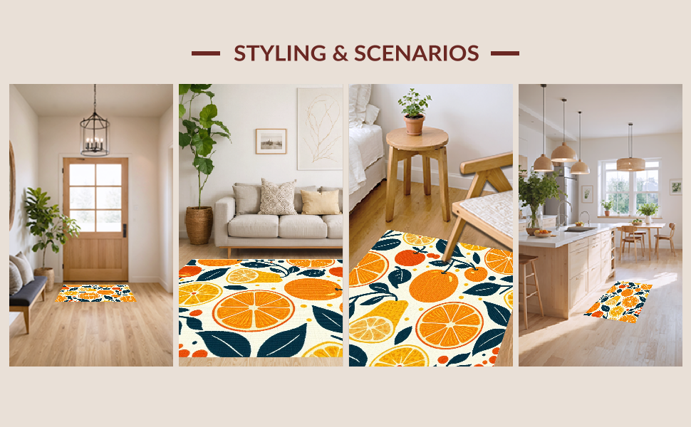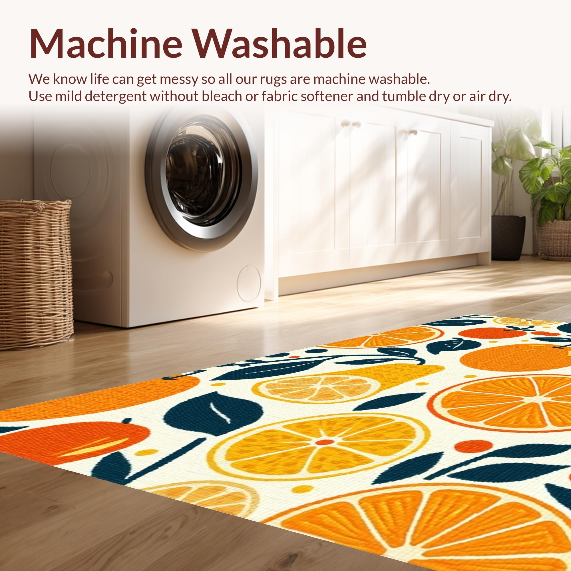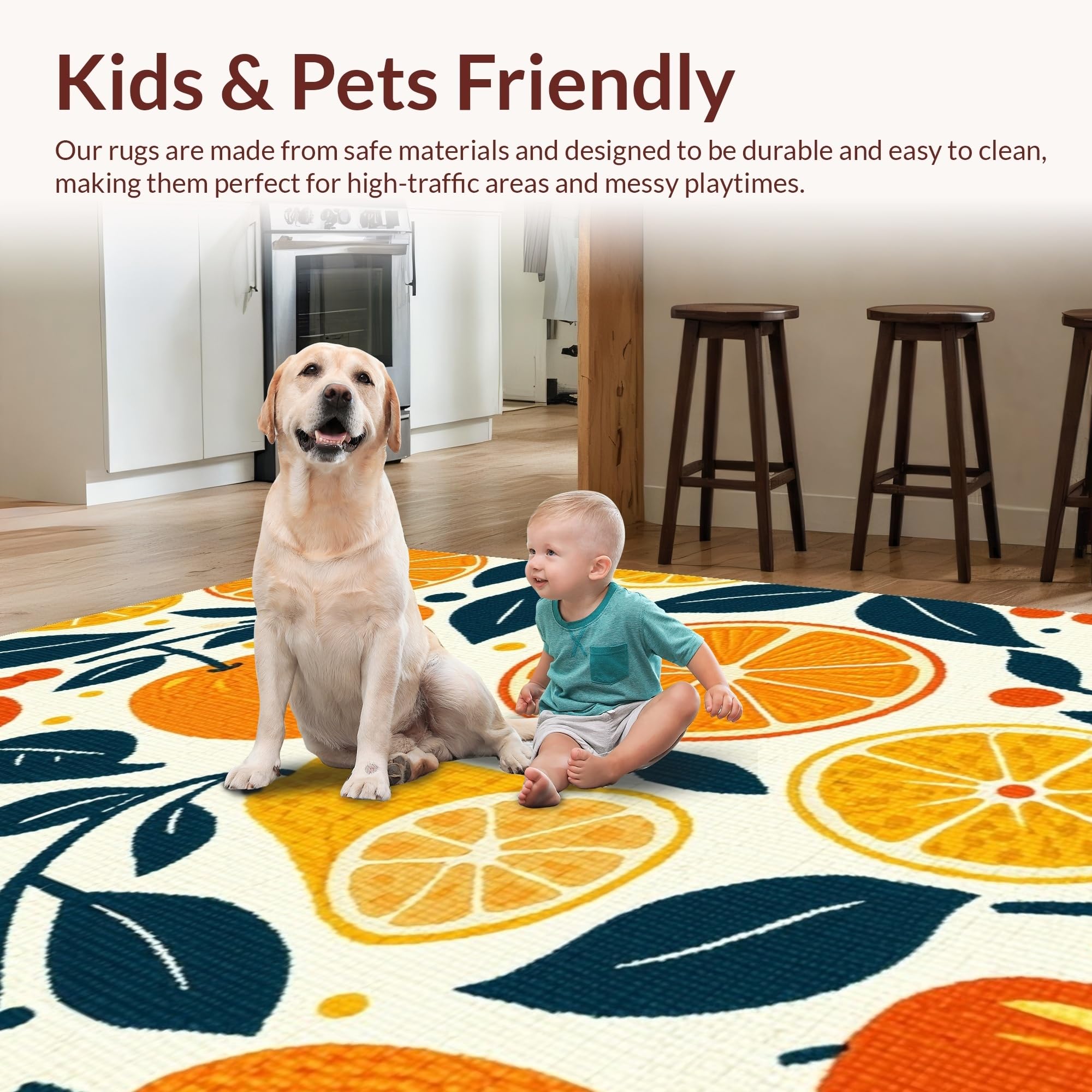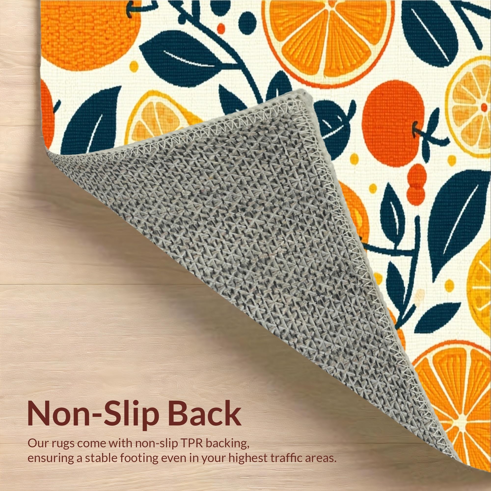 Ultra Soft Area Rug, Non Slip, Stain Resistant, Washable Area Rugs for Living Room, Bedroom, Fun Juicy Patterned Surface(Orange) Overview: