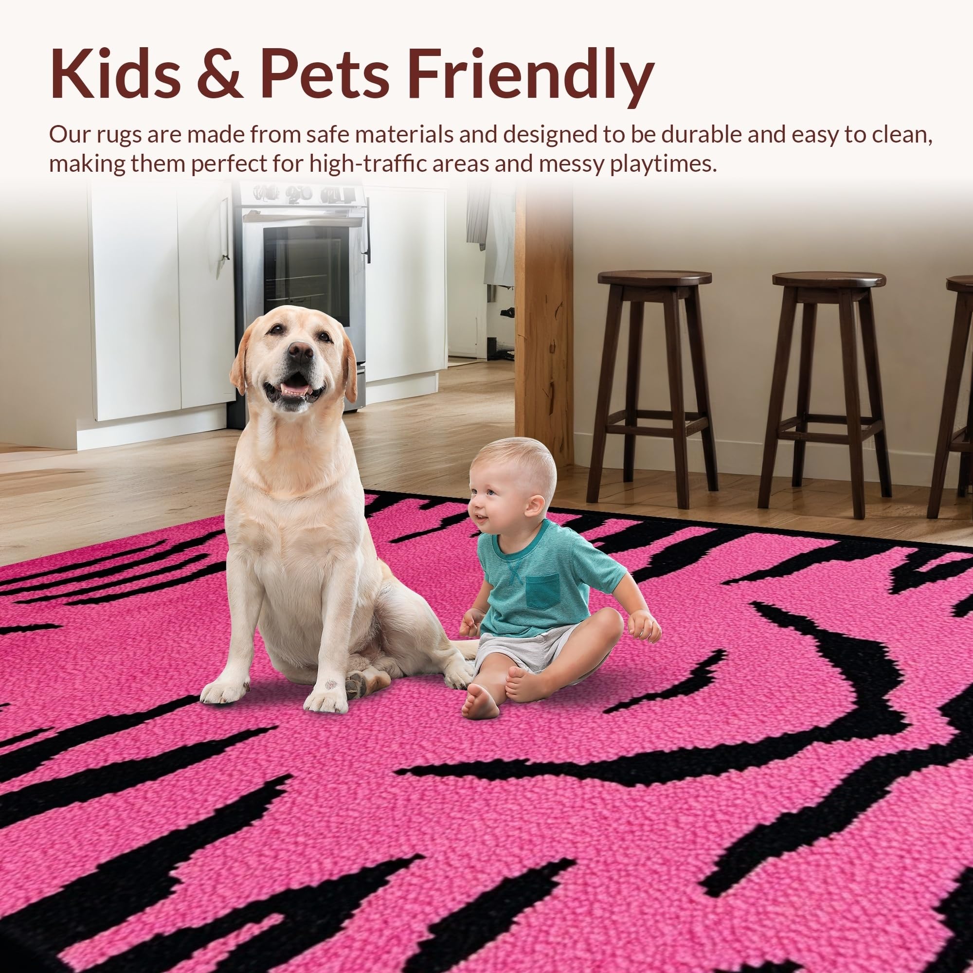 Ultra Soft Area Rug, Non Slip, Stain Resistant, Washable Area Rugs for Living Room, Bedroom, Fun Kid-Friendly Decorative Accent(Pink) Overview: