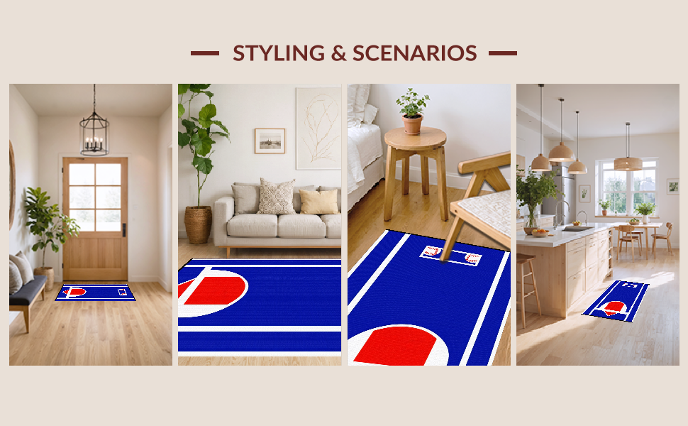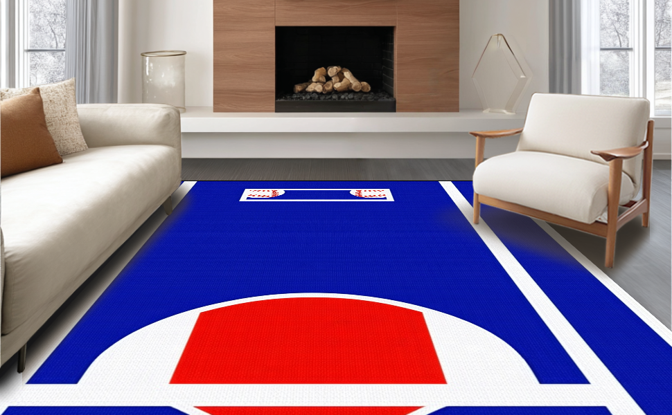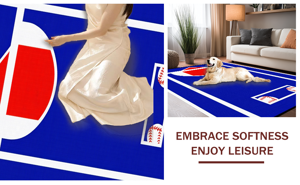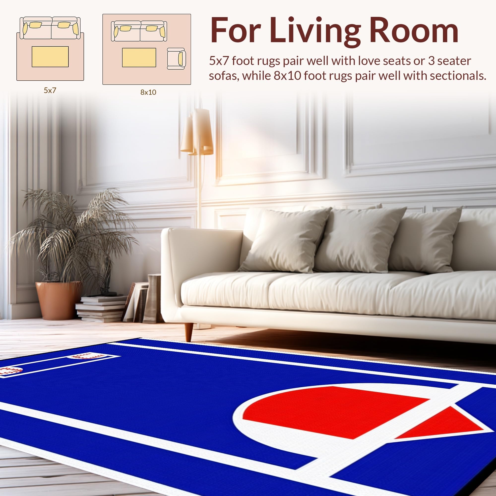 Ultra Soft Area Rug, Non Slip, Stain Resistant, Washable Area Rugs for Living Room, Bedroom, Fun Lively Sports Spirit Composition(Blue) Overview: