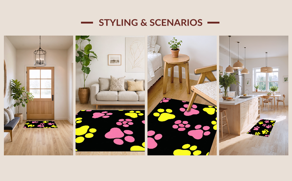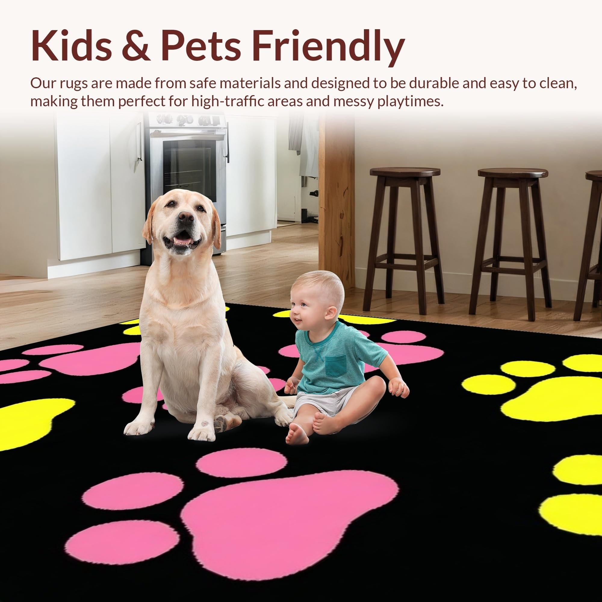 Ultra Soft Area Rug, Non Slip, Stain Resistant, Washable Area Rugs for Living Room, Bedroom, Fun Loving Doggie Bone Theme(Pink) Overview: