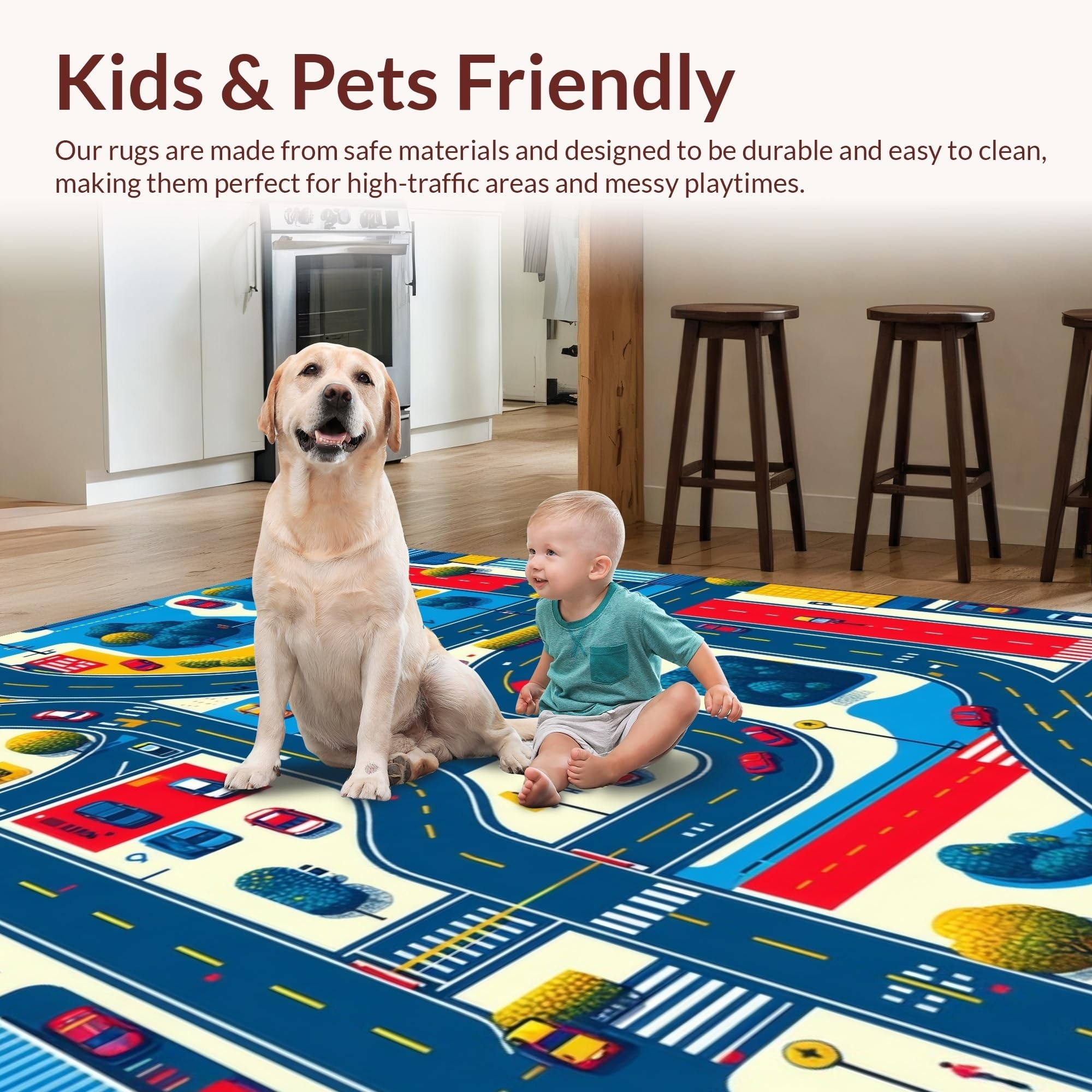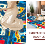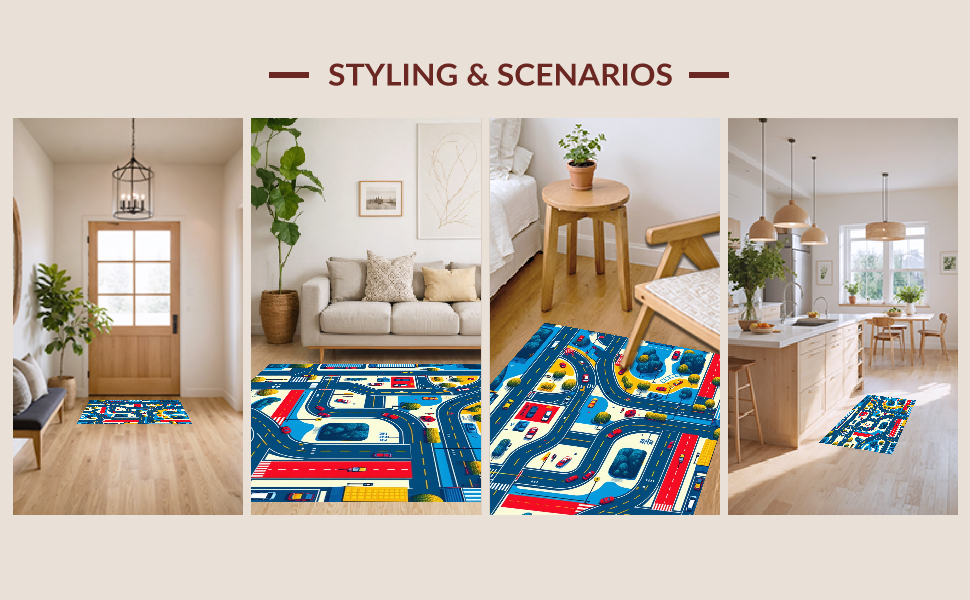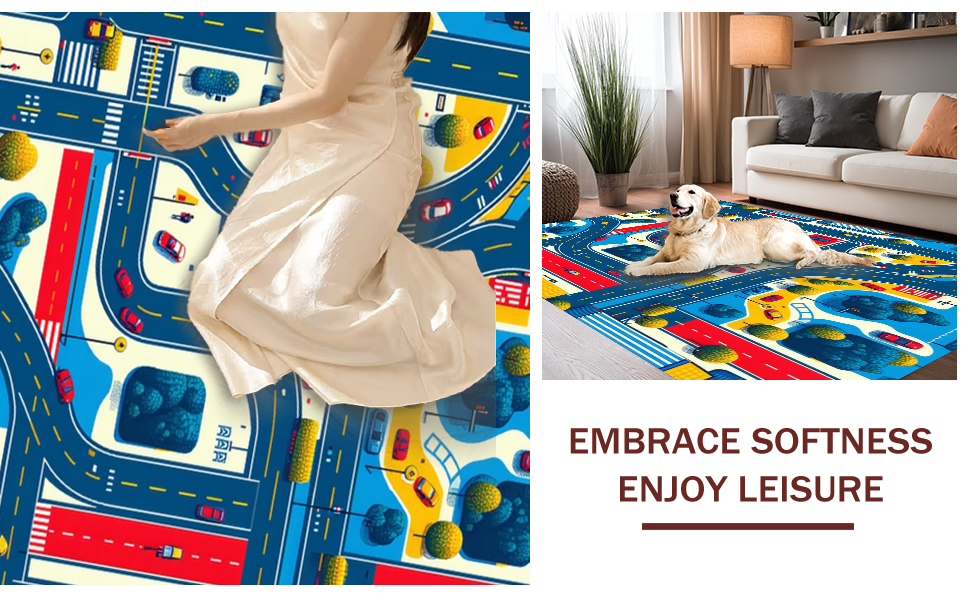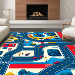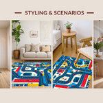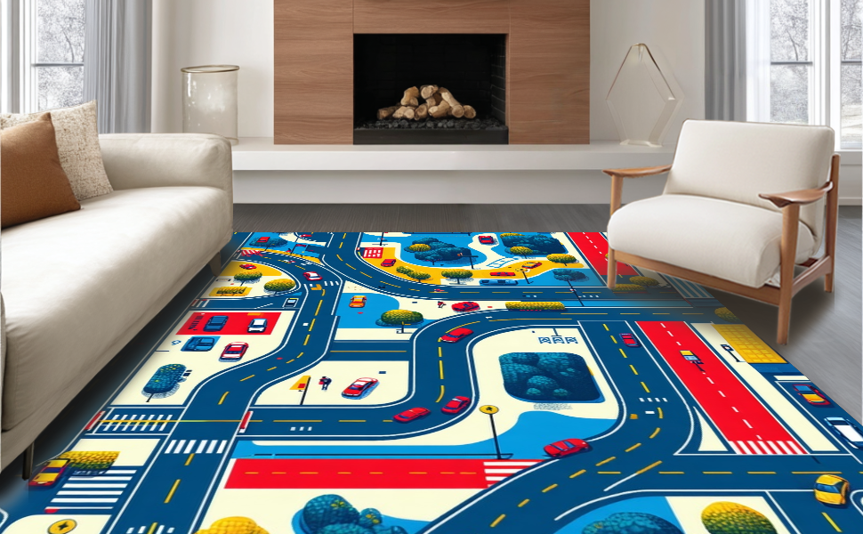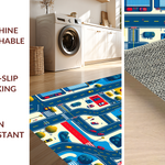 Ultra Soft Area Rug, Non Slip, Stain Resistant, Washable Area Rugs for Living Room, Bedroom, Fun-Loving Playful City Vibe(Blue) Overview: