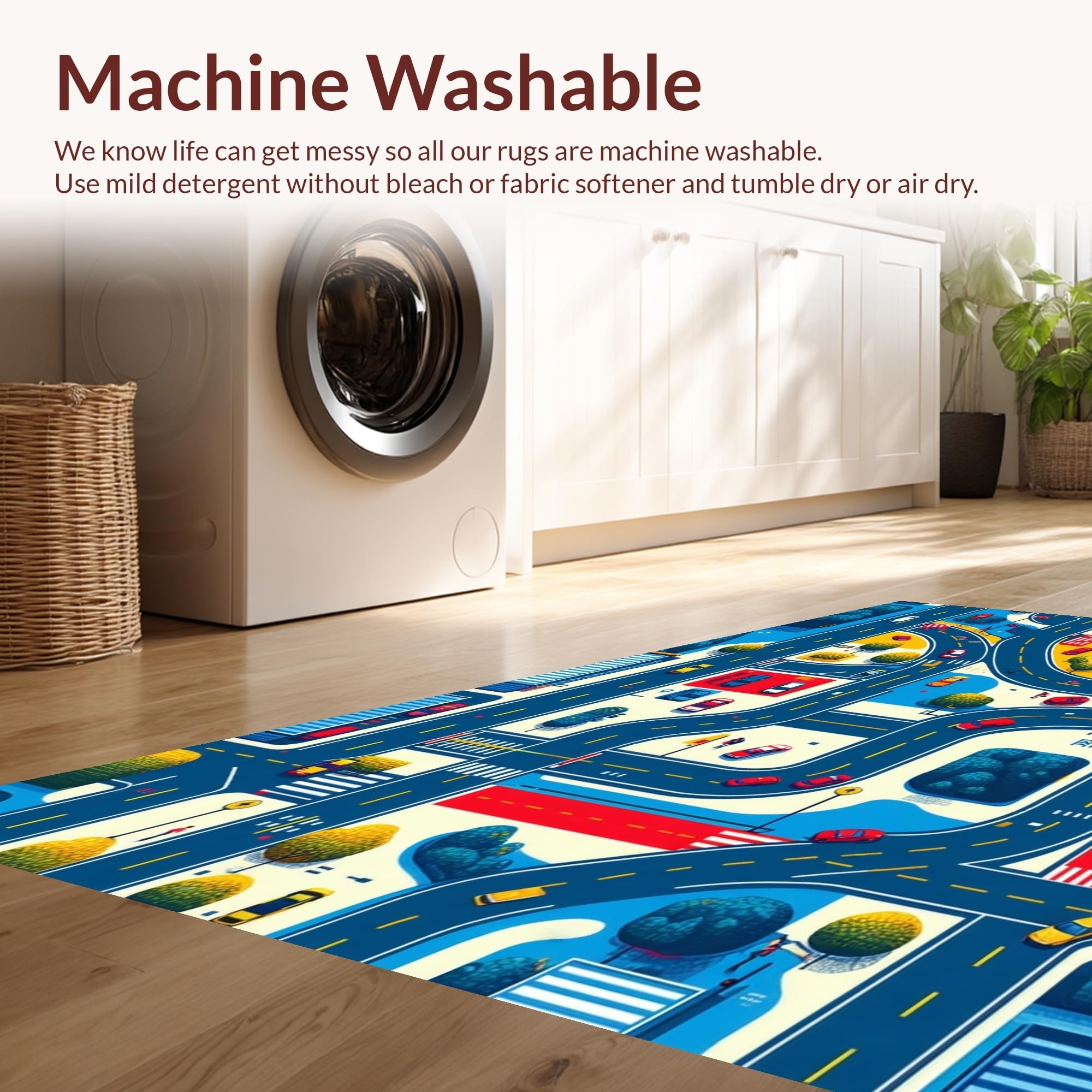 - Machine Washable: Our rugs can be easily thrown in the wash machine.