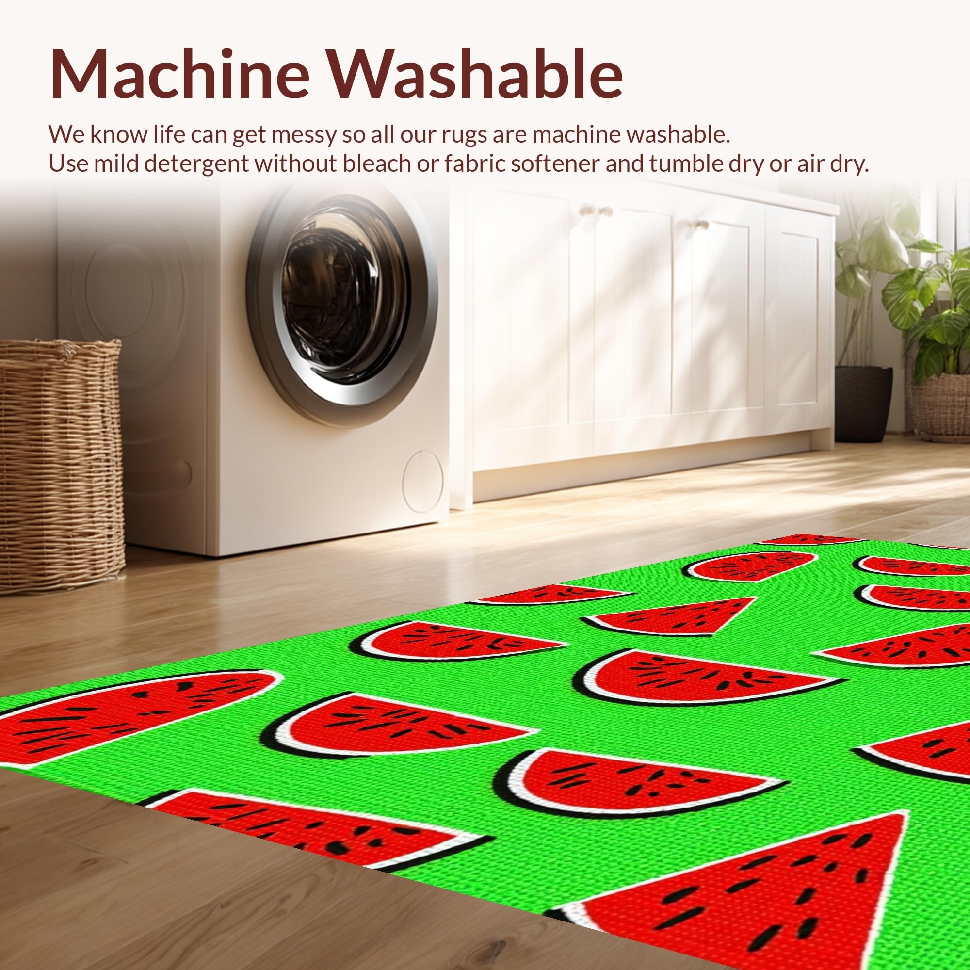 - Machine Washable: Our rugs can be easily thrown in the wash machine.