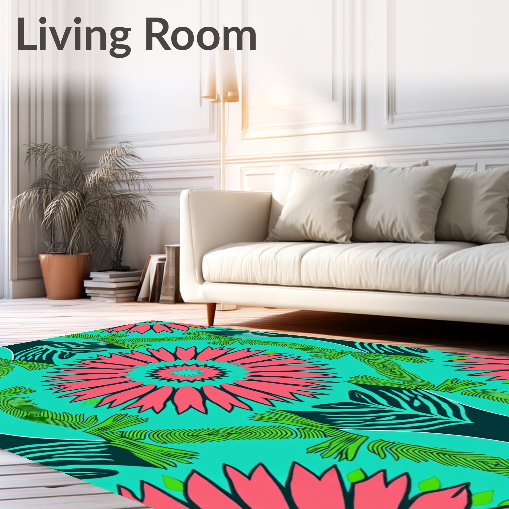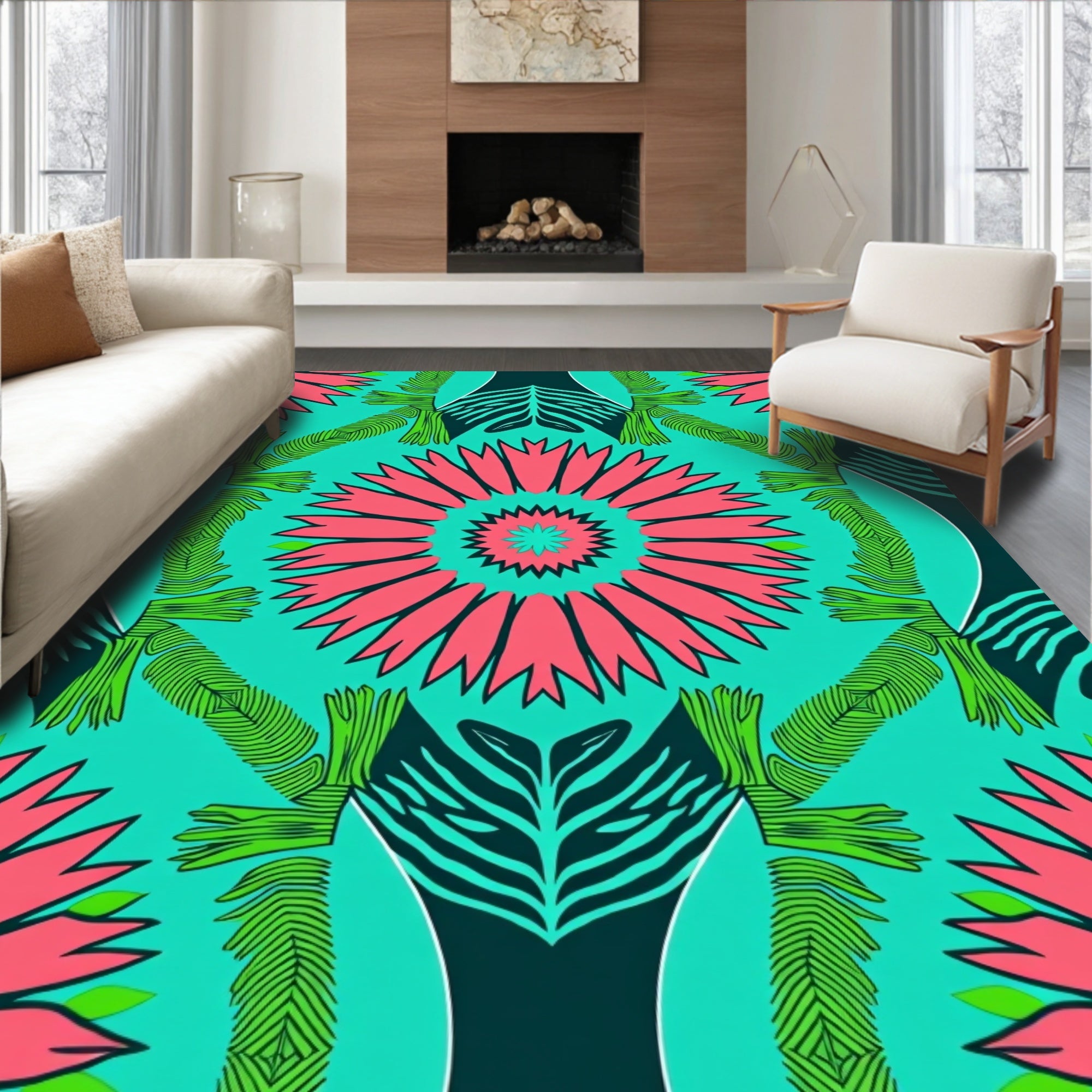 Flatwoven High Traffic Area Rug, Funky Abstract Tropical Foliage Accent, Non Slip, Stain Resistant, Washable Area Rugs for Living Room, Bedroom (Turquoise) Overview: