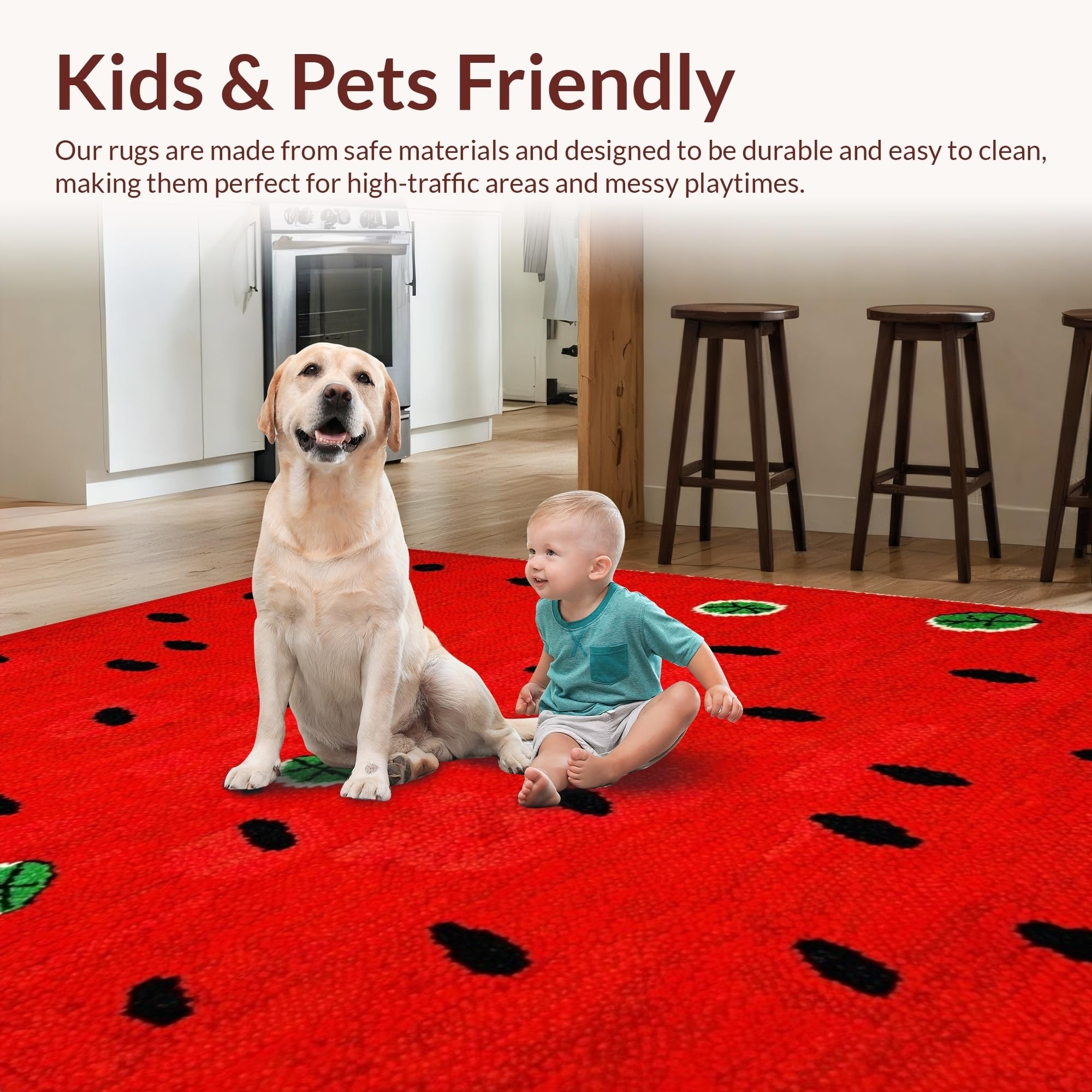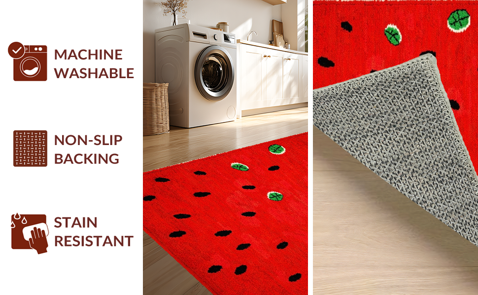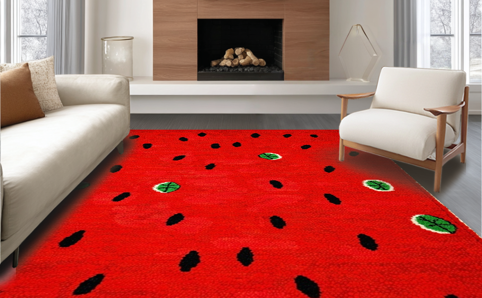 Ultra Soft Area Rug, Non Slip, Stain Resistant, Washable Area Rugs for Living Room, Bedroom, Funky Fresh Produce Theme(Red) Overview: