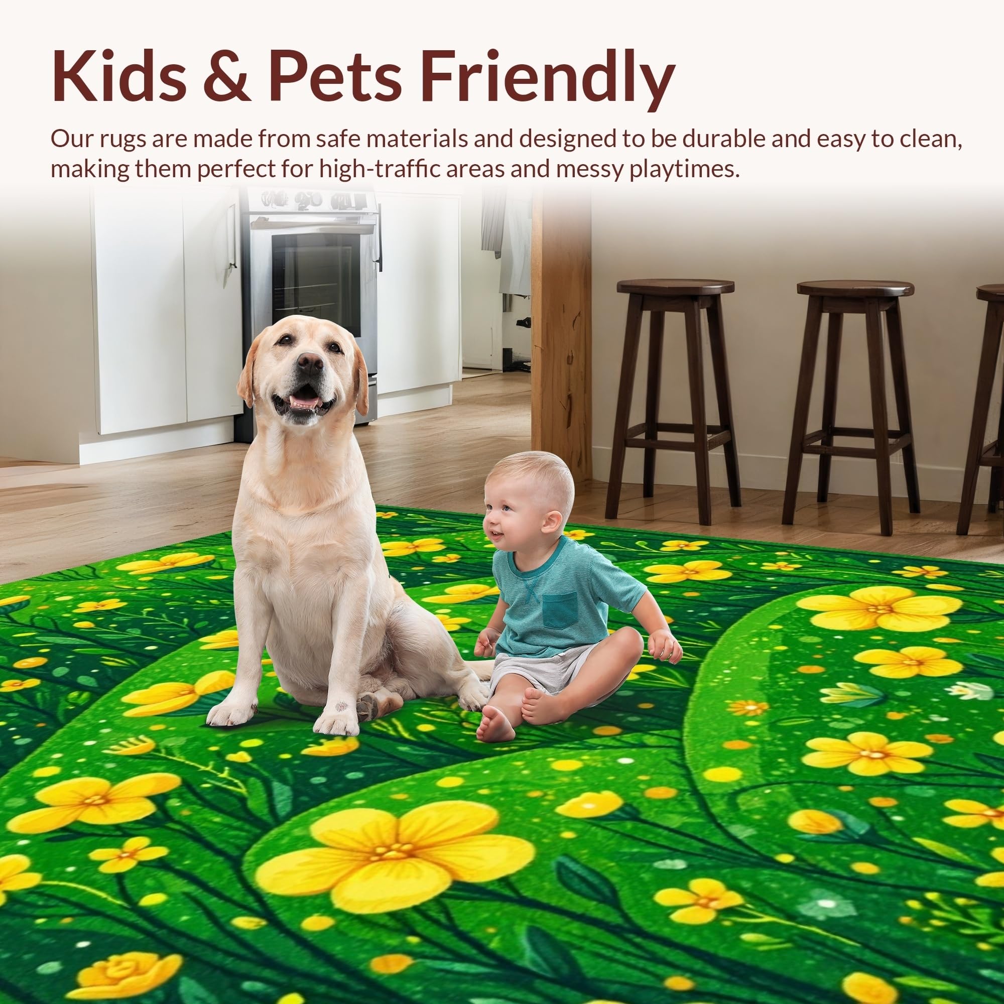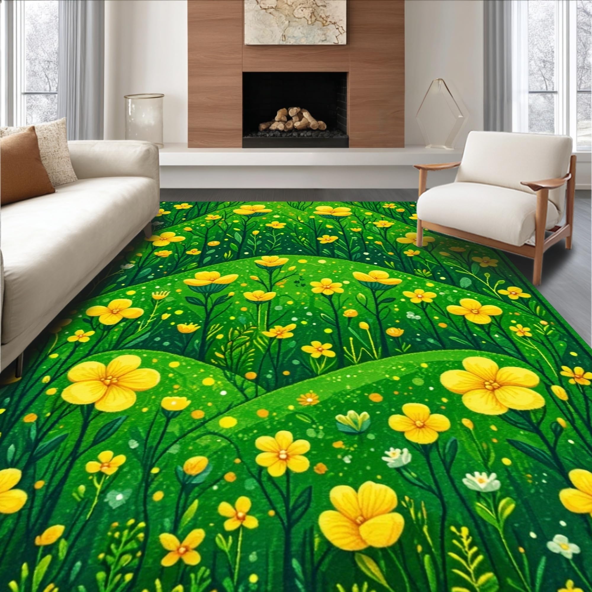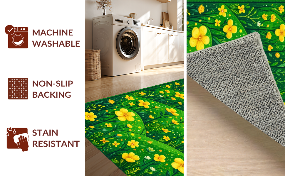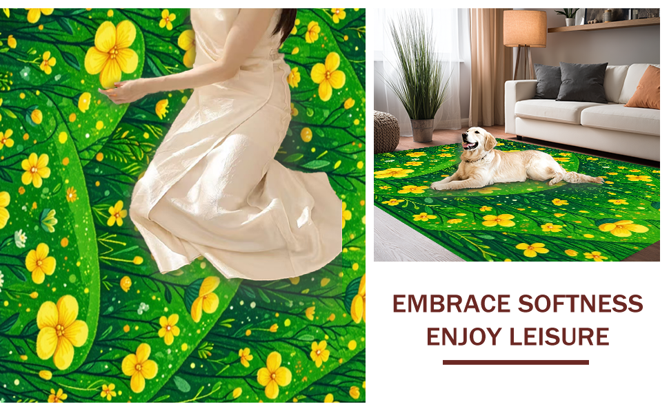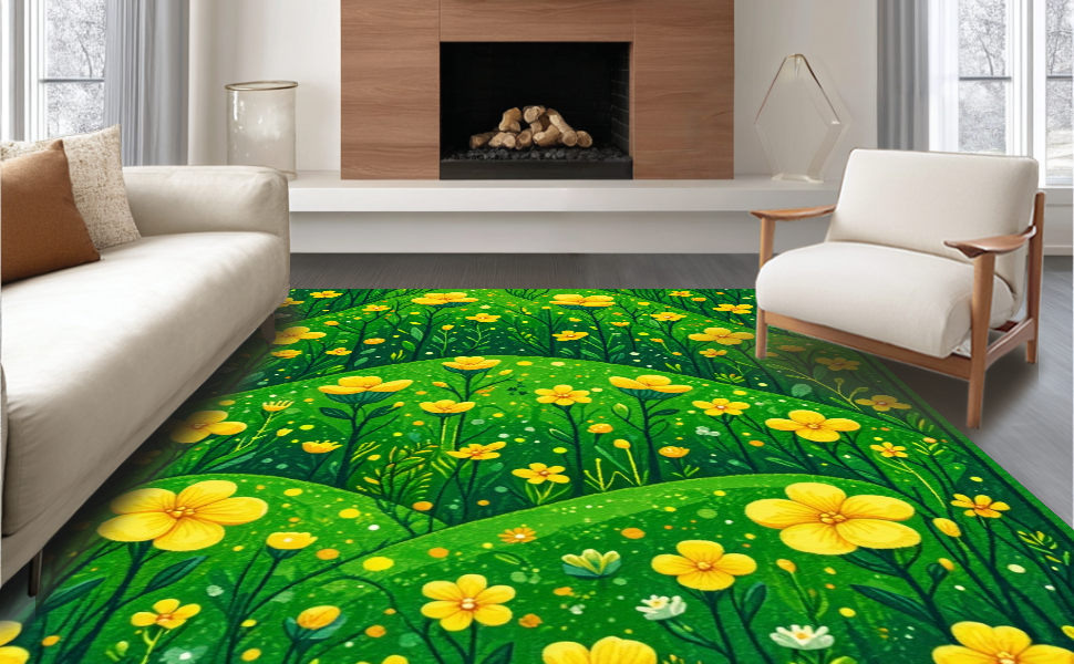 Ultra Soft Area Rug, Non Slip, Stain Resistant, Washable Area Rugs for Living Room, Bedroom, Funky Nature-Infused Decor(Green) Overview:
