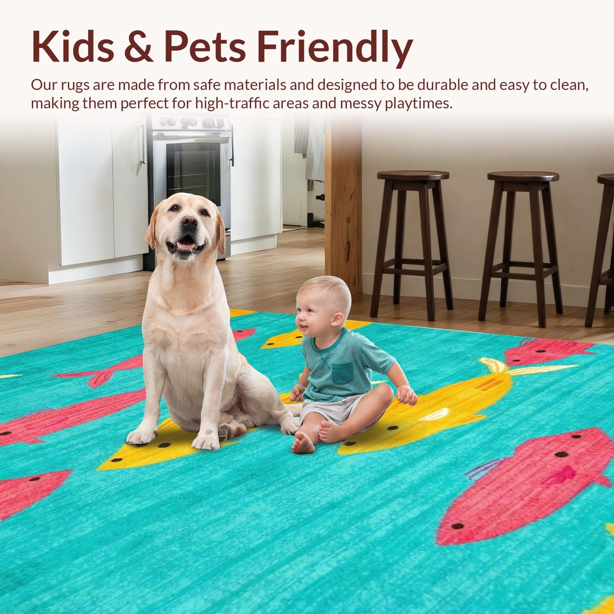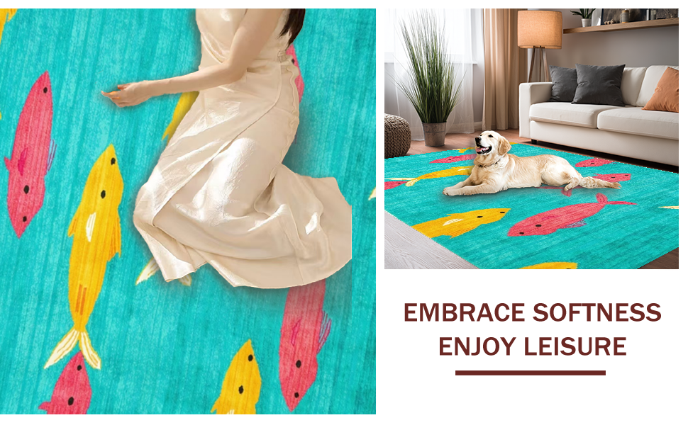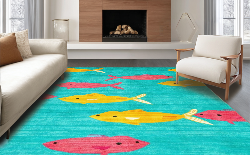 Ultra Soft Area Rug, Non Slip, Stain Resistant, Washable Area Rugs for Living Room, Bedroom, Funky Pink Green Visual Theme(Blue) Overview: