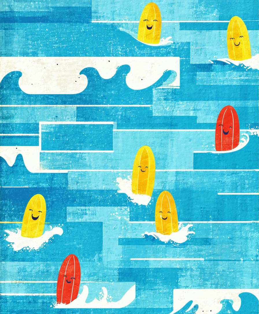 Funny Tropical Surf Absorbent Bath Mat Coastal Ocean Wave Art Design(Blue)