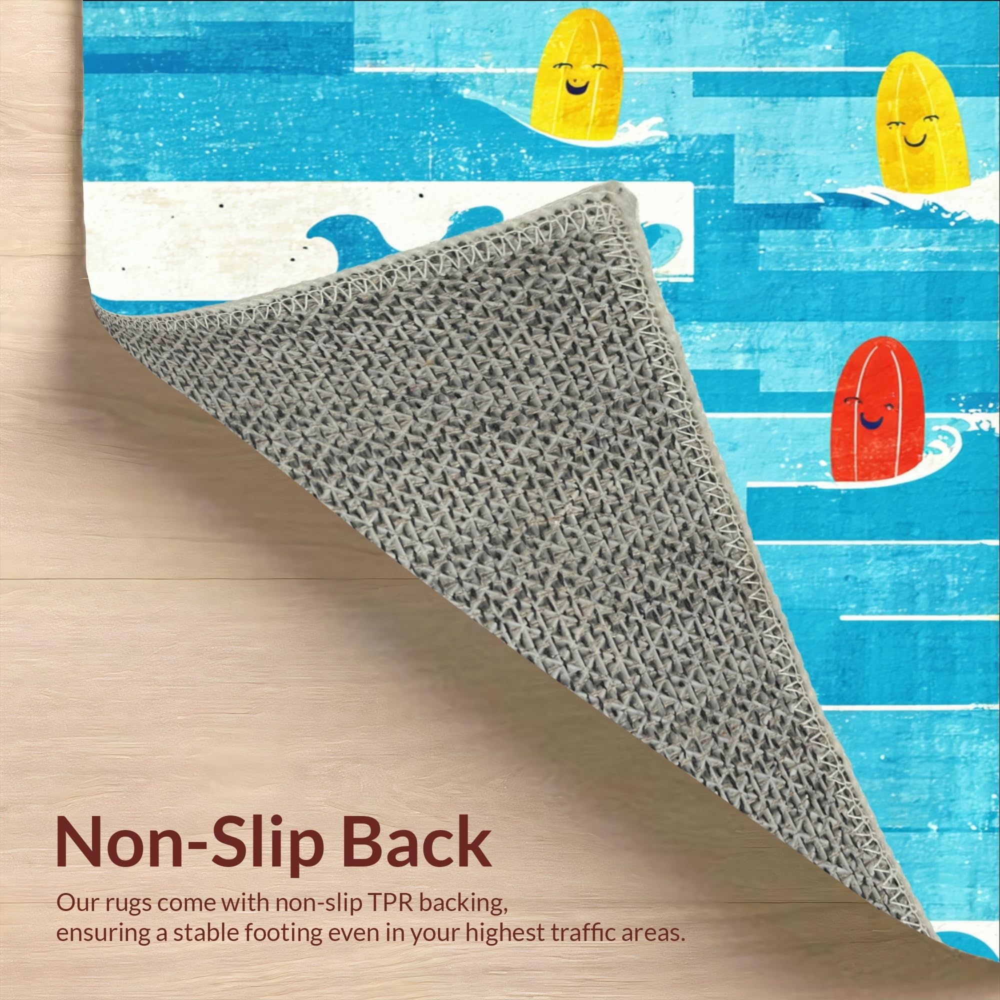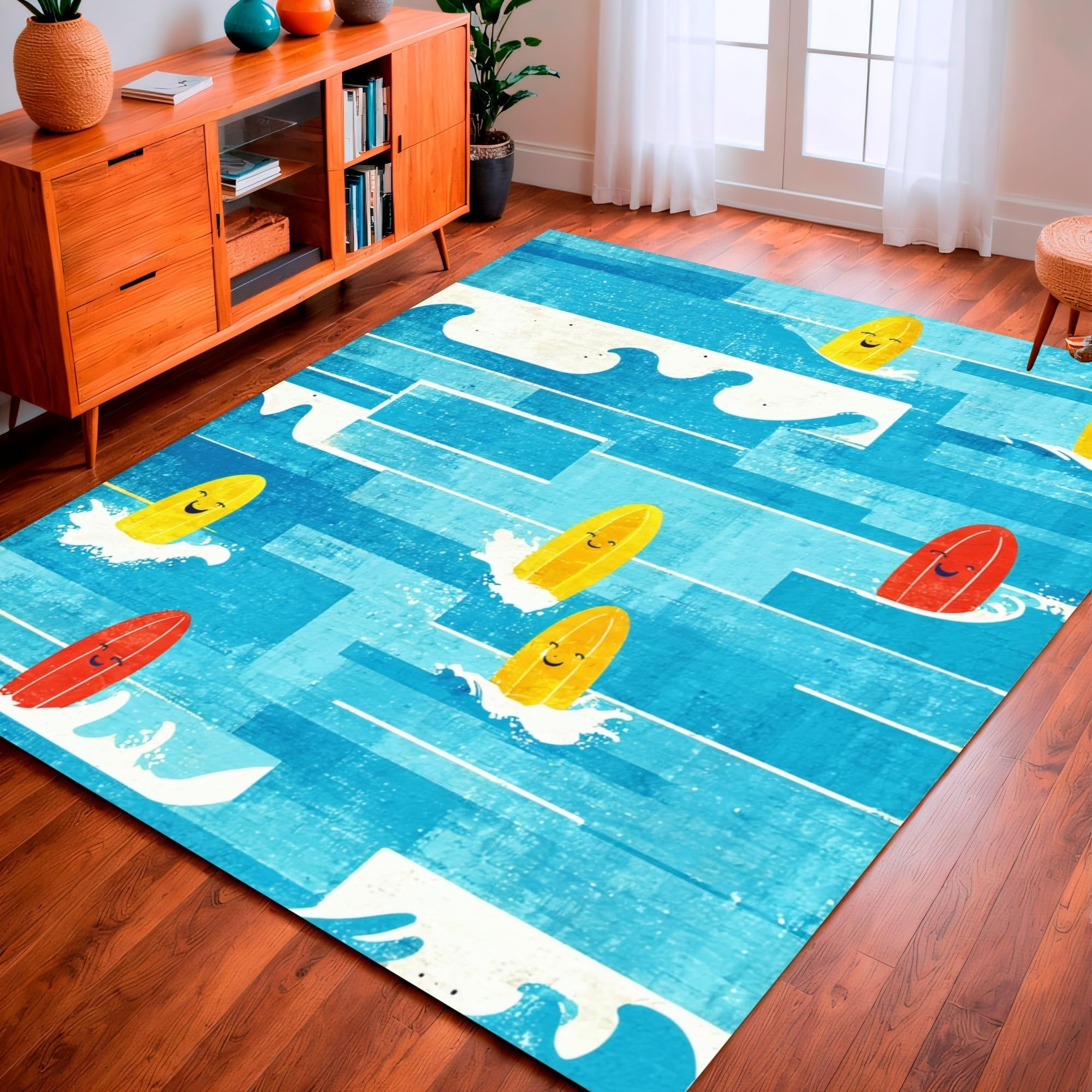 Ultra Soft Area Rug, Non Slip, Stain Resistant, Washable Area Rugs for Living Room, Bedroom, Funny Tropical Surf Rug Absorbent Bath Mat Coastal Ocean Wave Art Design(Blue) Overview: