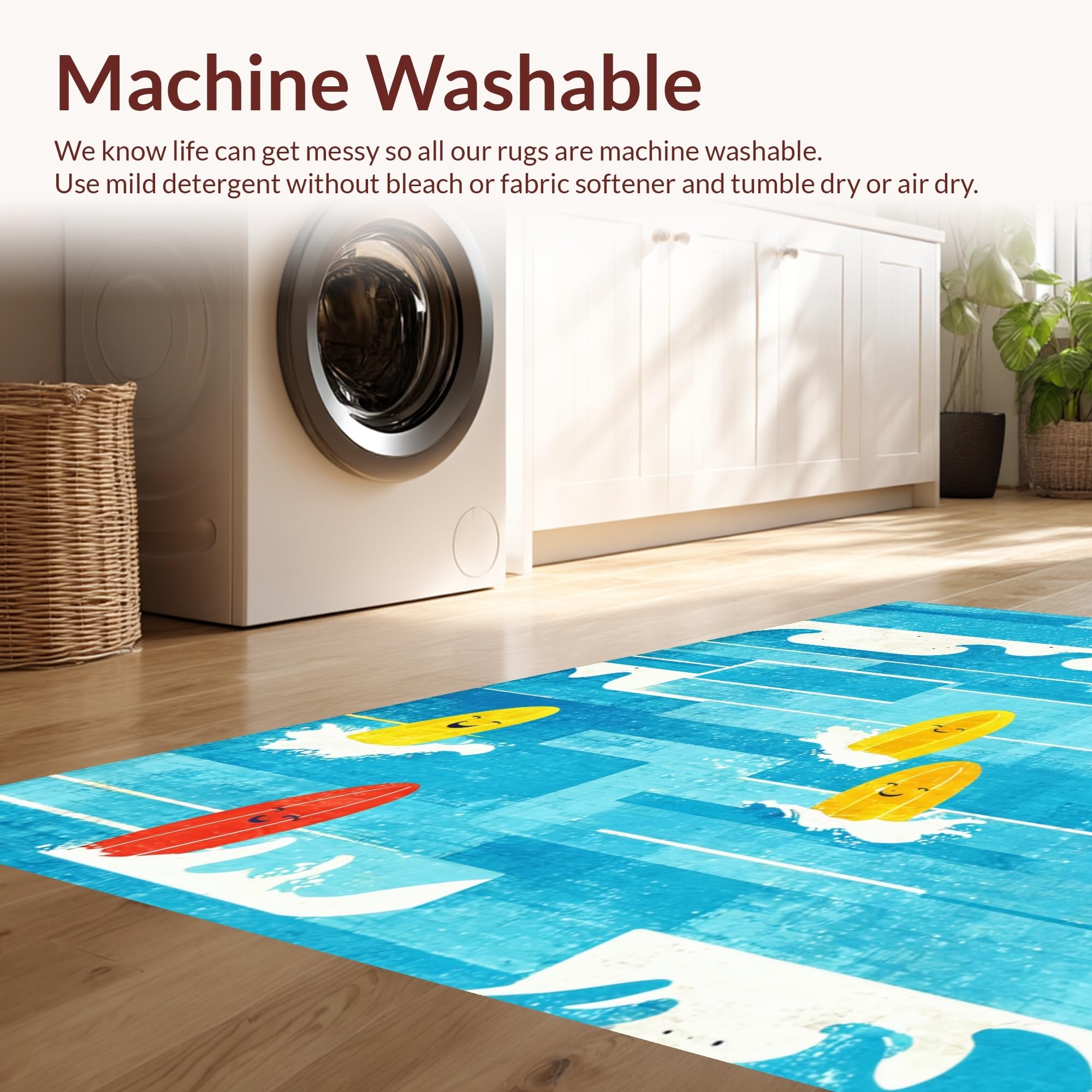 - Machine Washable: Our rugs can be easily thrown in the wash machine.