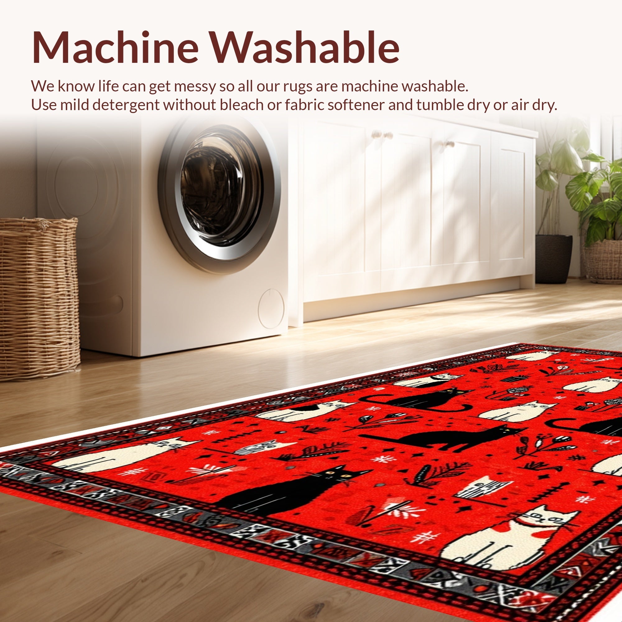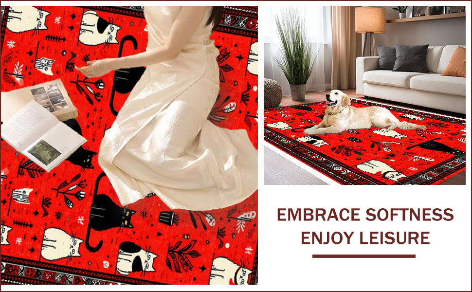 Ultra Soft Area Rug, Non Slip, Stain Resistant, Washable Area Rugs for Living Room, Bedroom, Funny Western Cat(Red) Overview: