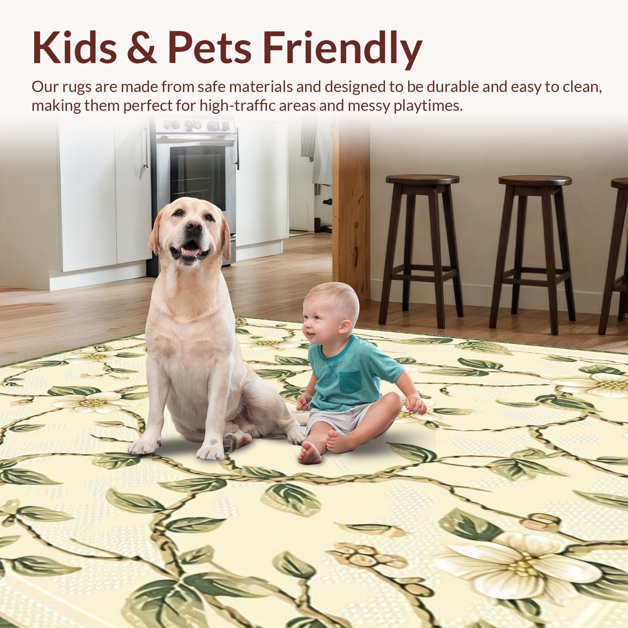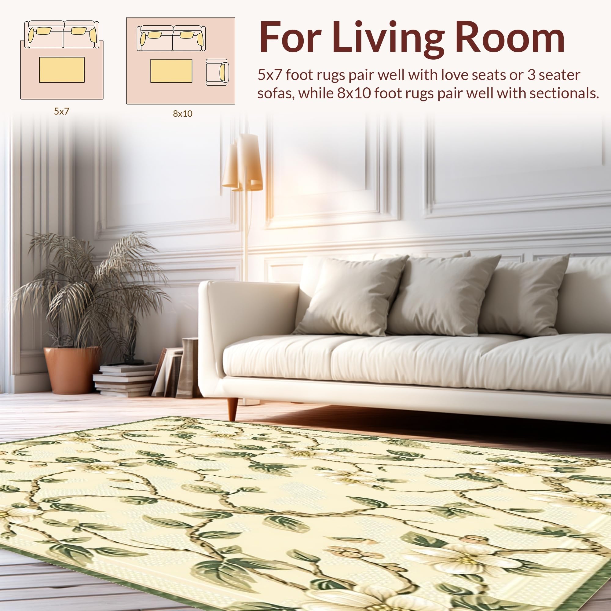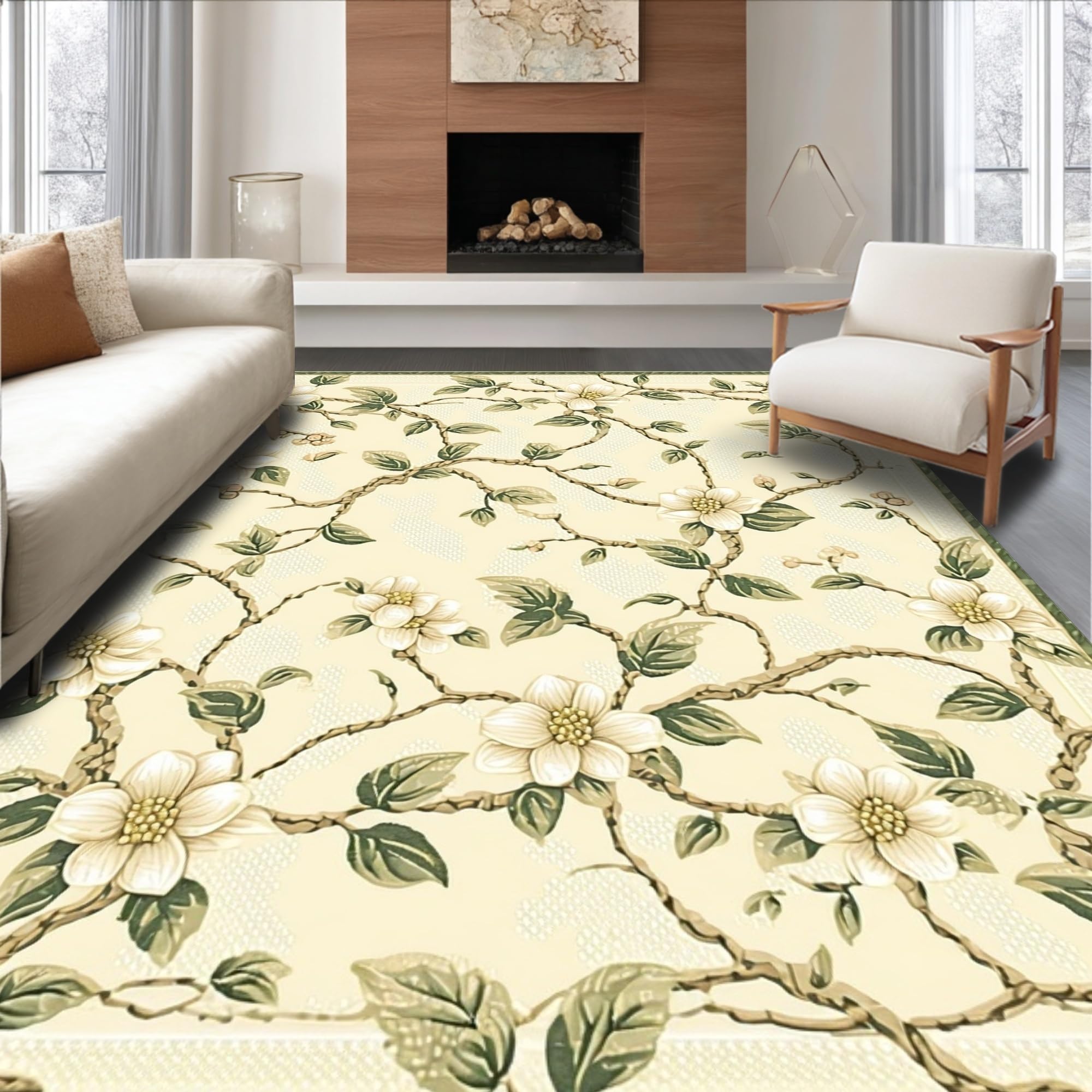 Ultra Soft Area Rug, Non Slip, Stain Resistant, Washable Area Rugs for Living Room, Bedroom, Garden Bloom Accent Charming Flower Decorative Mat(Beige) Overview:
