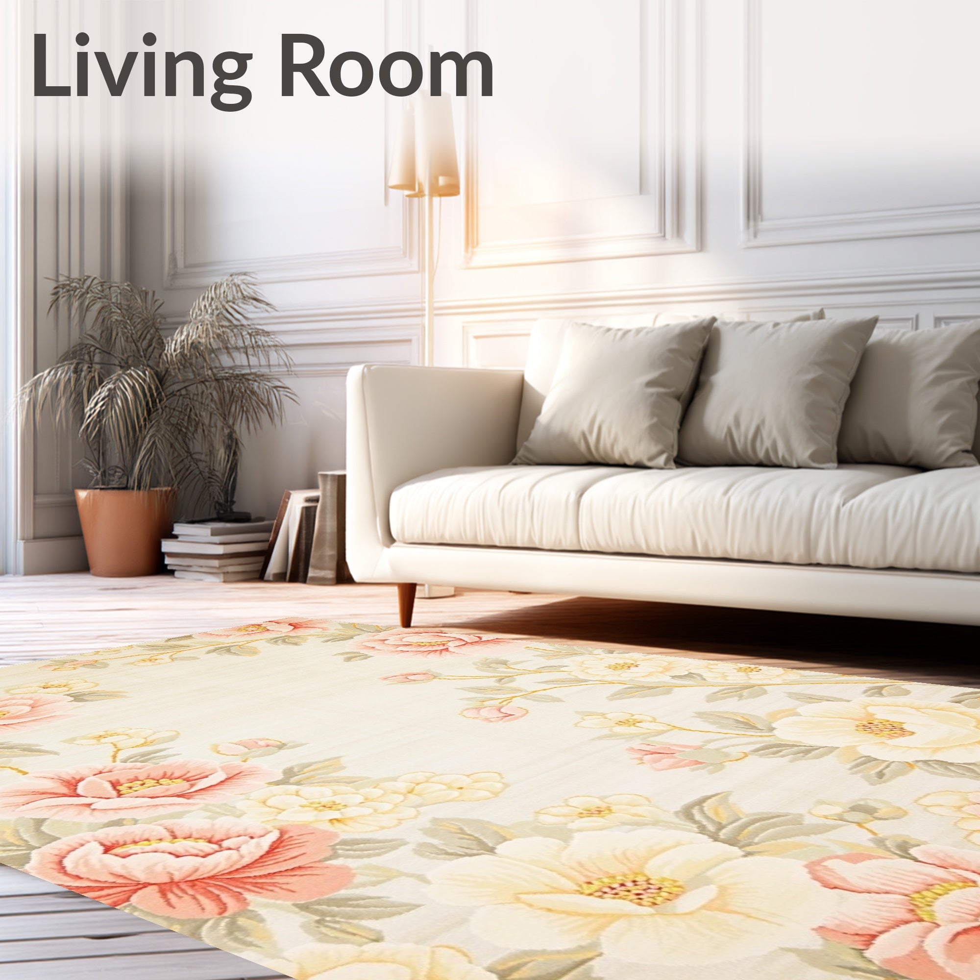 Ultra Soft Area Rug, Non Slip, Stain Resistant, Washable Area Rugs for Living Room, Bedroom, Garden Bloom Anti Fatigue Area Pair Beige Petal Comfort Mat(Ivory) Overview: