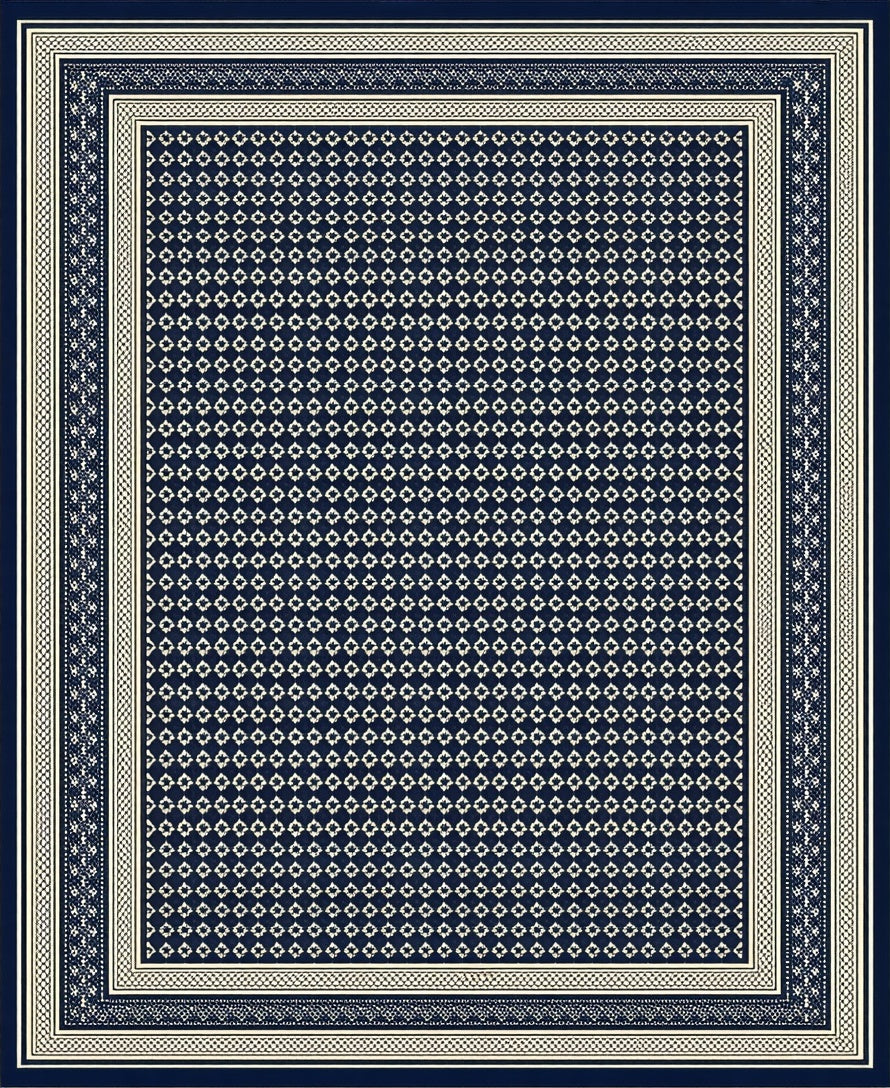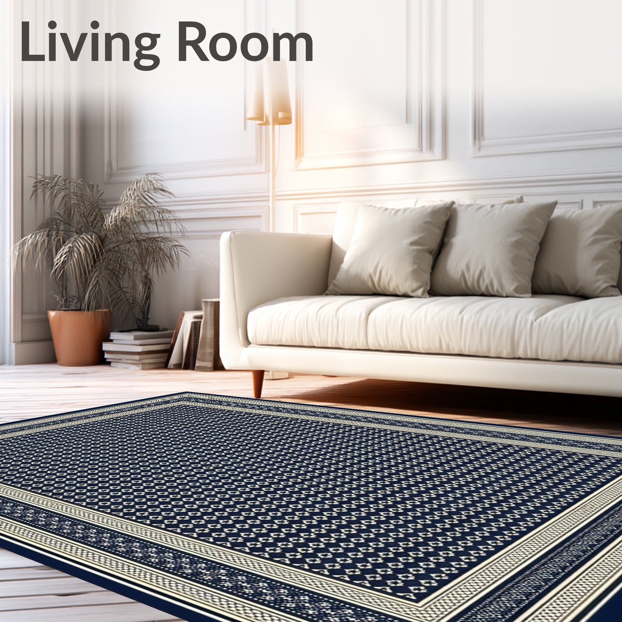 Ultra Soft Area Rug, Non Slip, Stain Resistant, Washable Area Rugs for Living Room, Bedroom, Garden Path Runner Navy and Beige Trellis with Subtle Border(Blue) Overview: