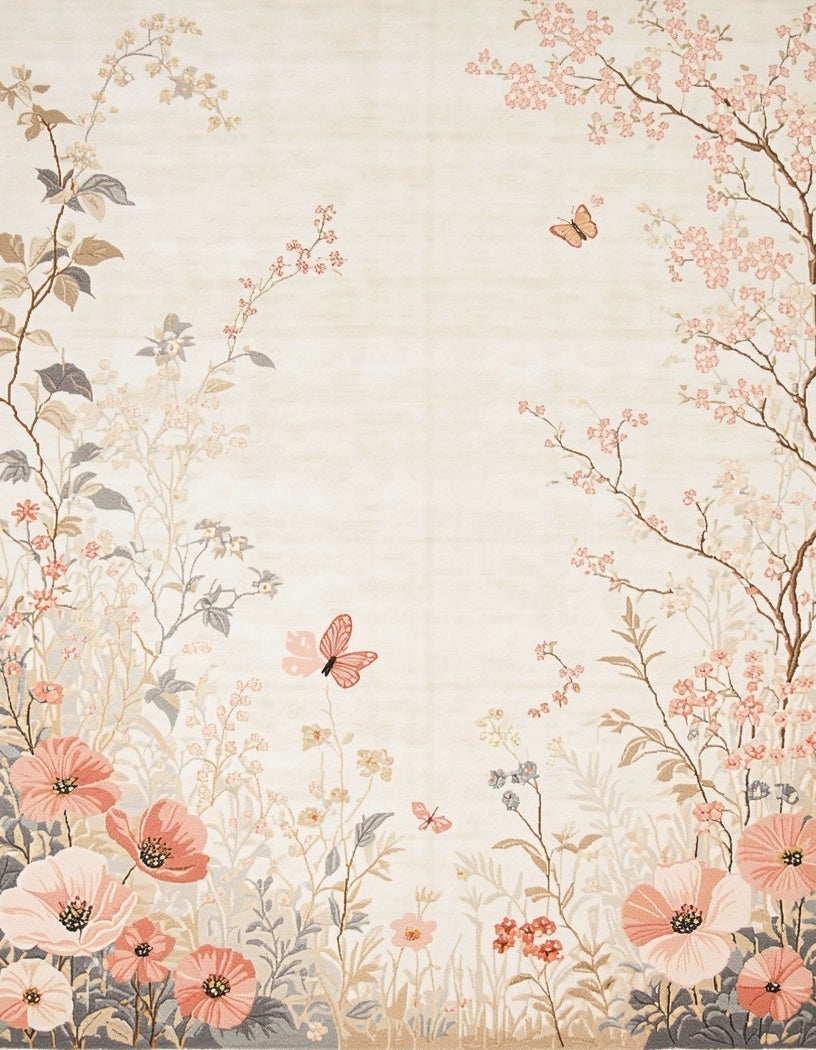 Garden Vista Area Beige Floral for Serene Spaces(Beige)