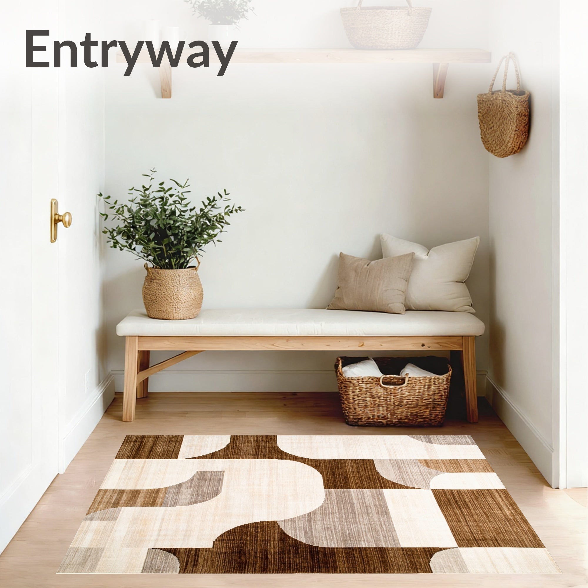 Ultra Soft Area Rug, Non Slip, Stain Resistant, Washable Area Rugs for Living Room, Bedroom, Geometric Beige Brown Contemporary Abstract Art(Beige) Overview: