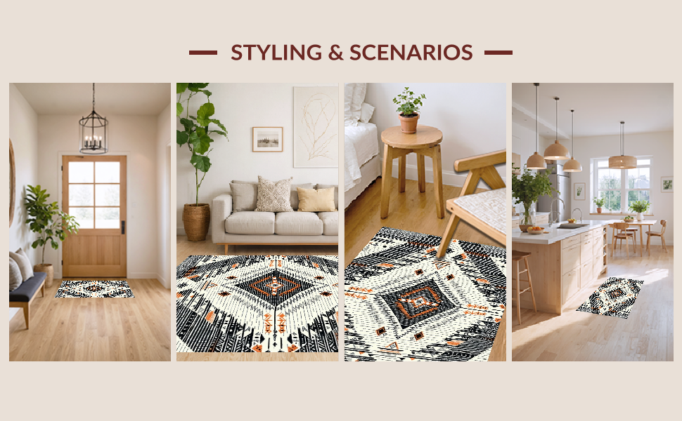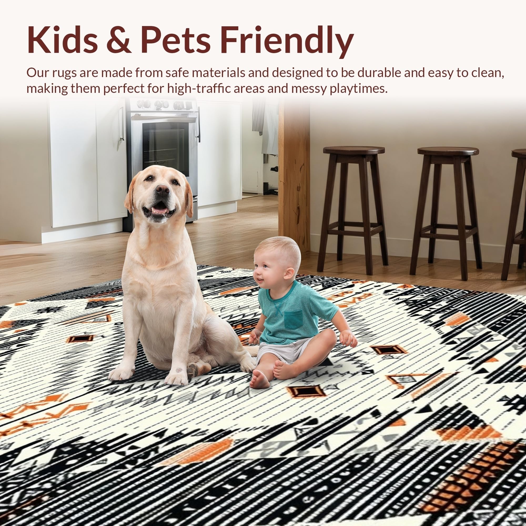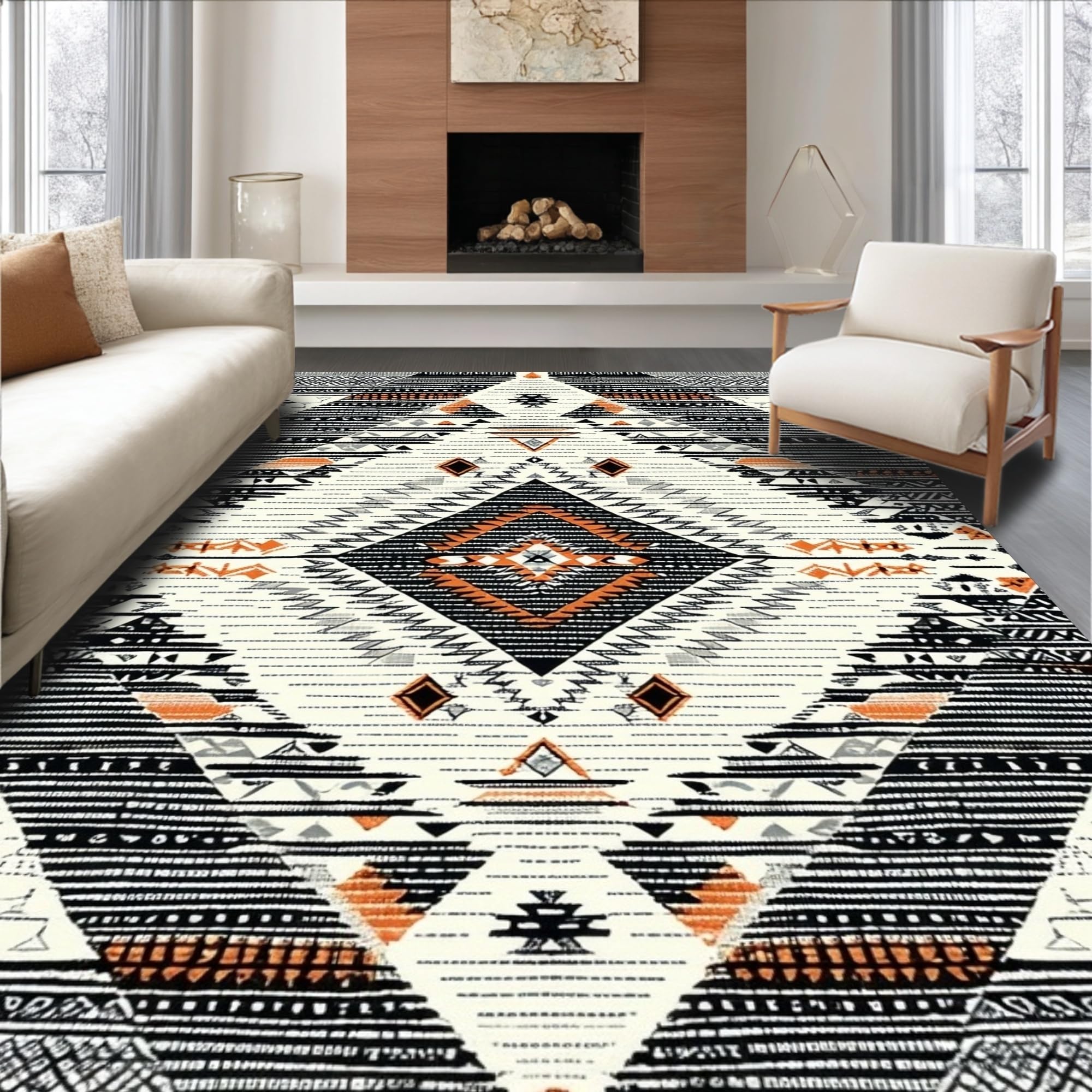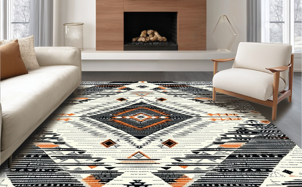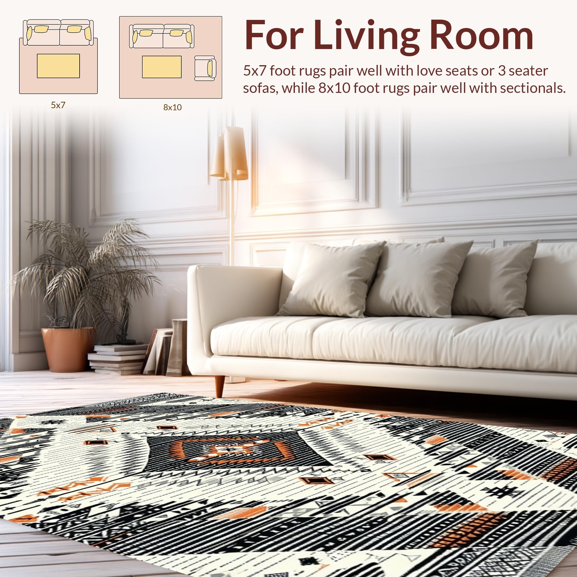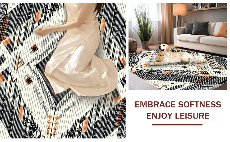 Ultra Soft Area Rug, Non Slip, Stain Resistant, Washable Area Rugs for Living Room, Bedroom, Geometric Black and White Aesthetic(Black) Overview: