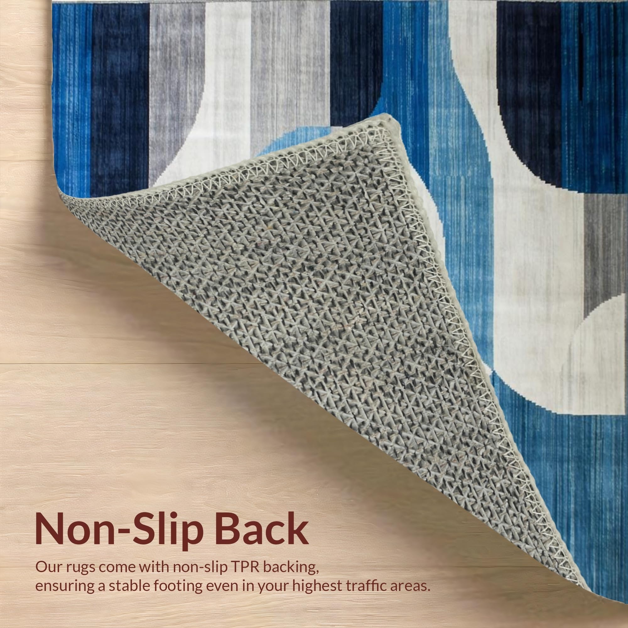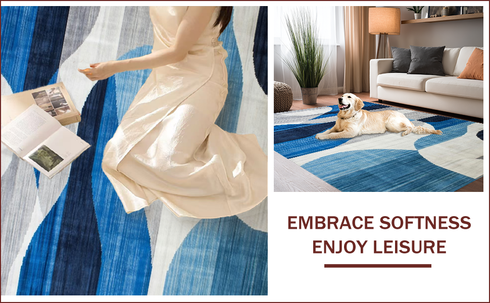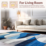 Ultra Soft Area Rug, Non Slip, Stain Resistant, Washable Area Rugs for Living Room, Bedroom, Geometric Blue Tones with Elegant Flair(Blue) Overview: