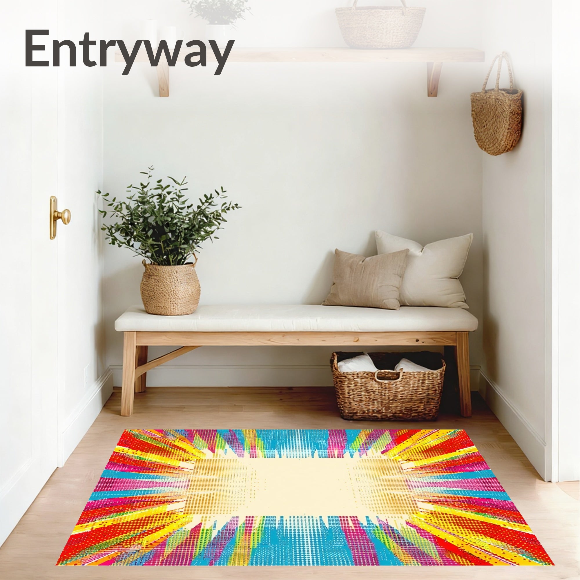 Ultra Soft Area Rug, Non Slip, Stain Resistant, Washable Area Rugs for Living Room, Bedroom, Geometric Burst Vibrant Multi Colors and Beige Hues(Yellow) Overview: