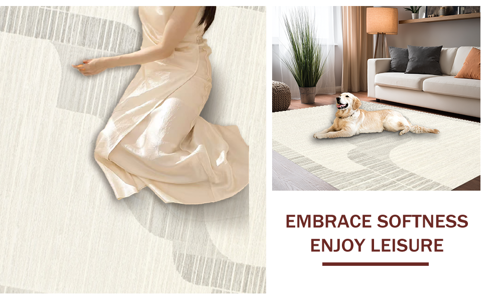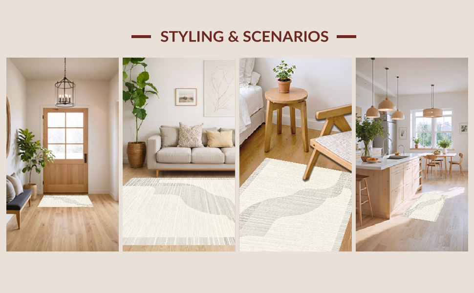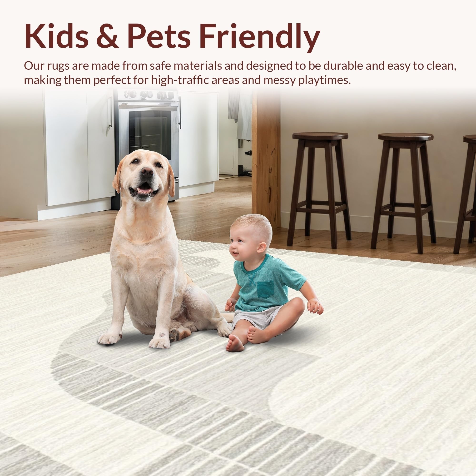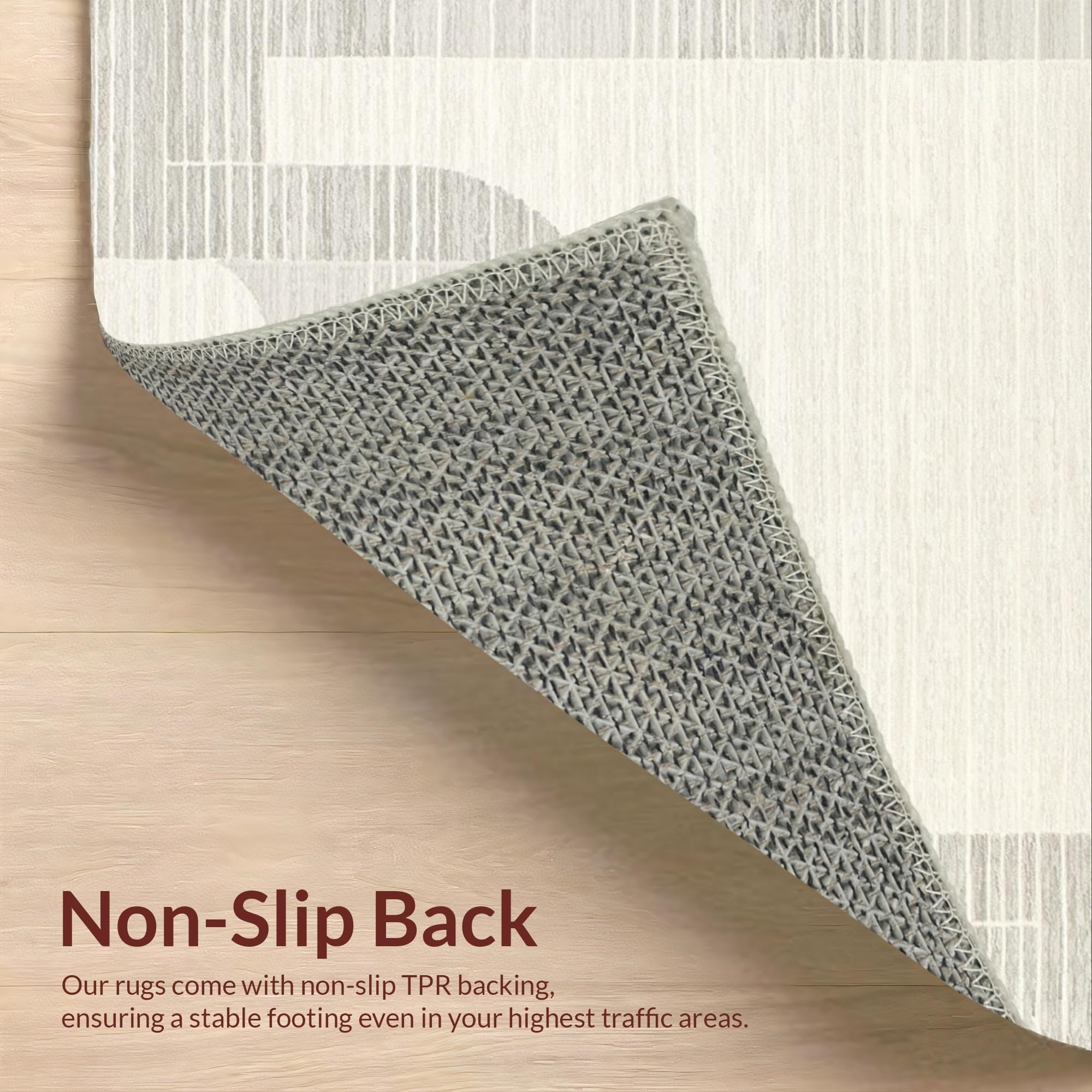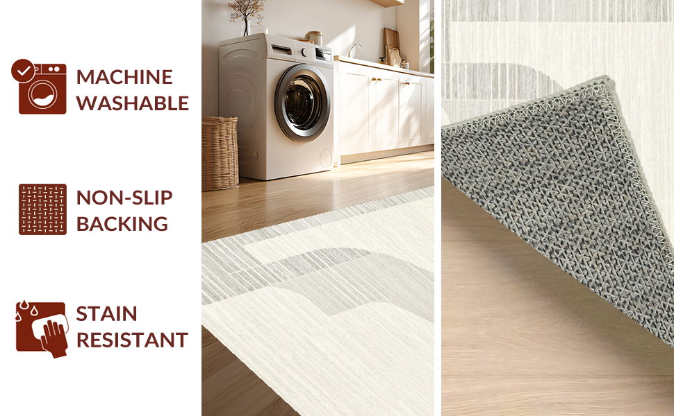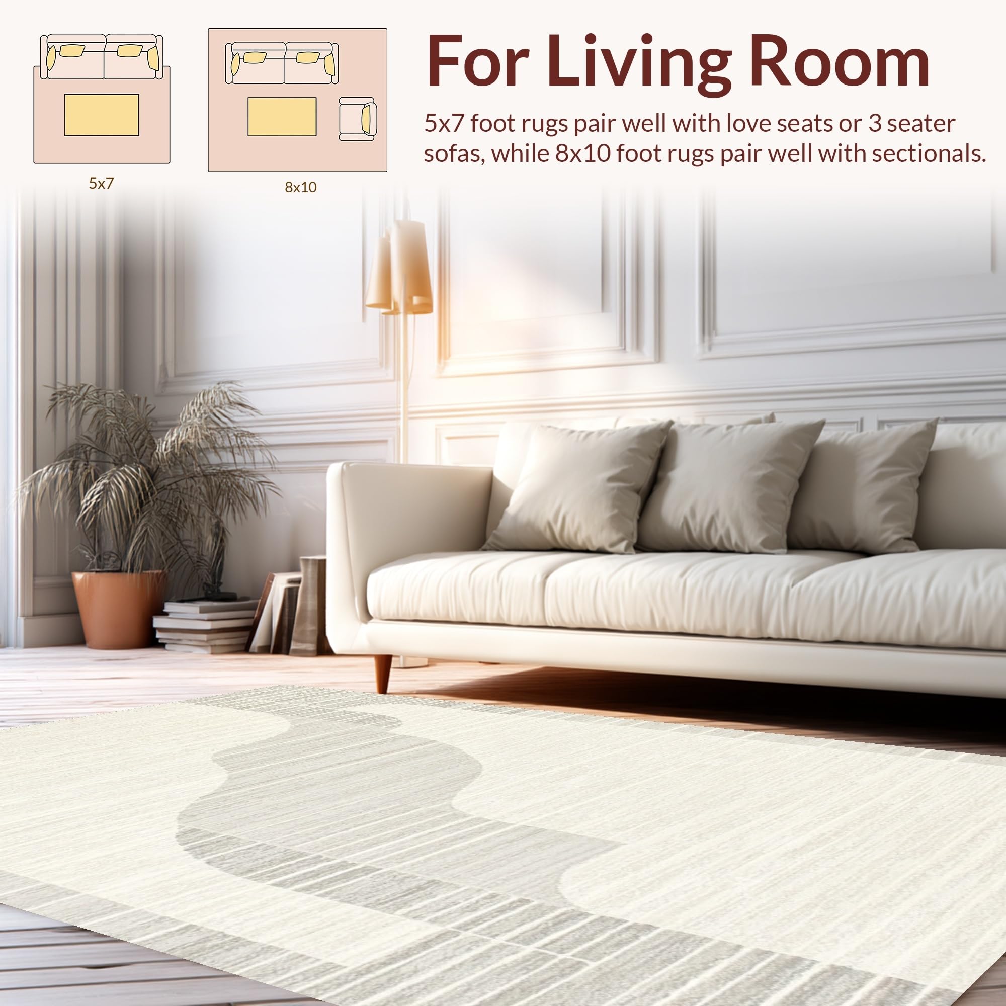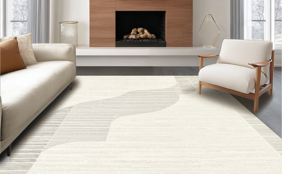 Ultra Soft Area Rug, Non Slip, Stain Resistant, Washable Area Rugs for Living Room, Bedroom, Geometric Cream Wavy Aesthetic(Beige) Overview: