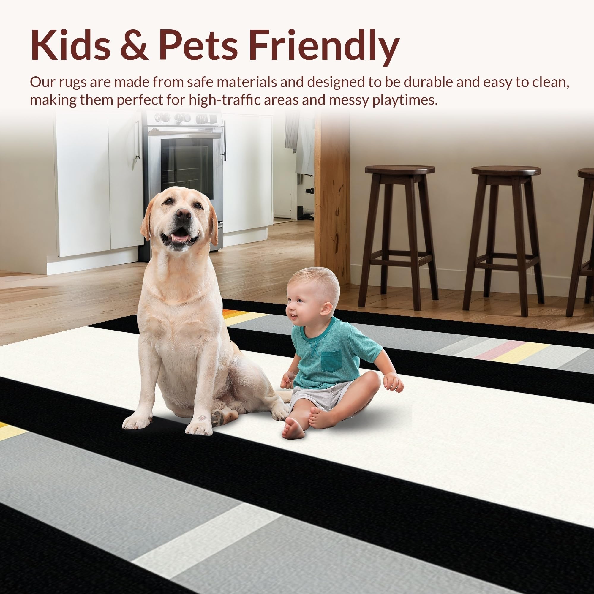 Ultra Soft Area Rug, Non Slip, Stain Resistant, Washable Area Rugs for Living Room, Bedroom, Geometric Earth Tone Harmony(Gray) Overview: