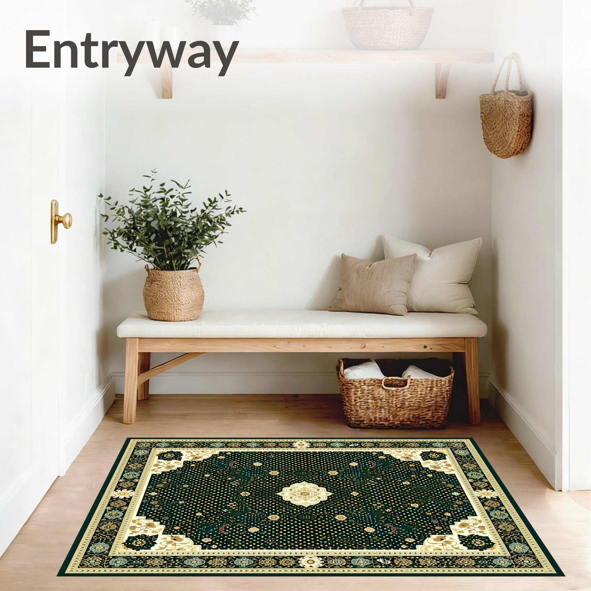 Ultra Soft Area Rug, Non Slip, Stain Resistant, Washable Area Rugs for Living Room, Bedroom, Geometric Farmhouse Spotted(Green) Overview:
