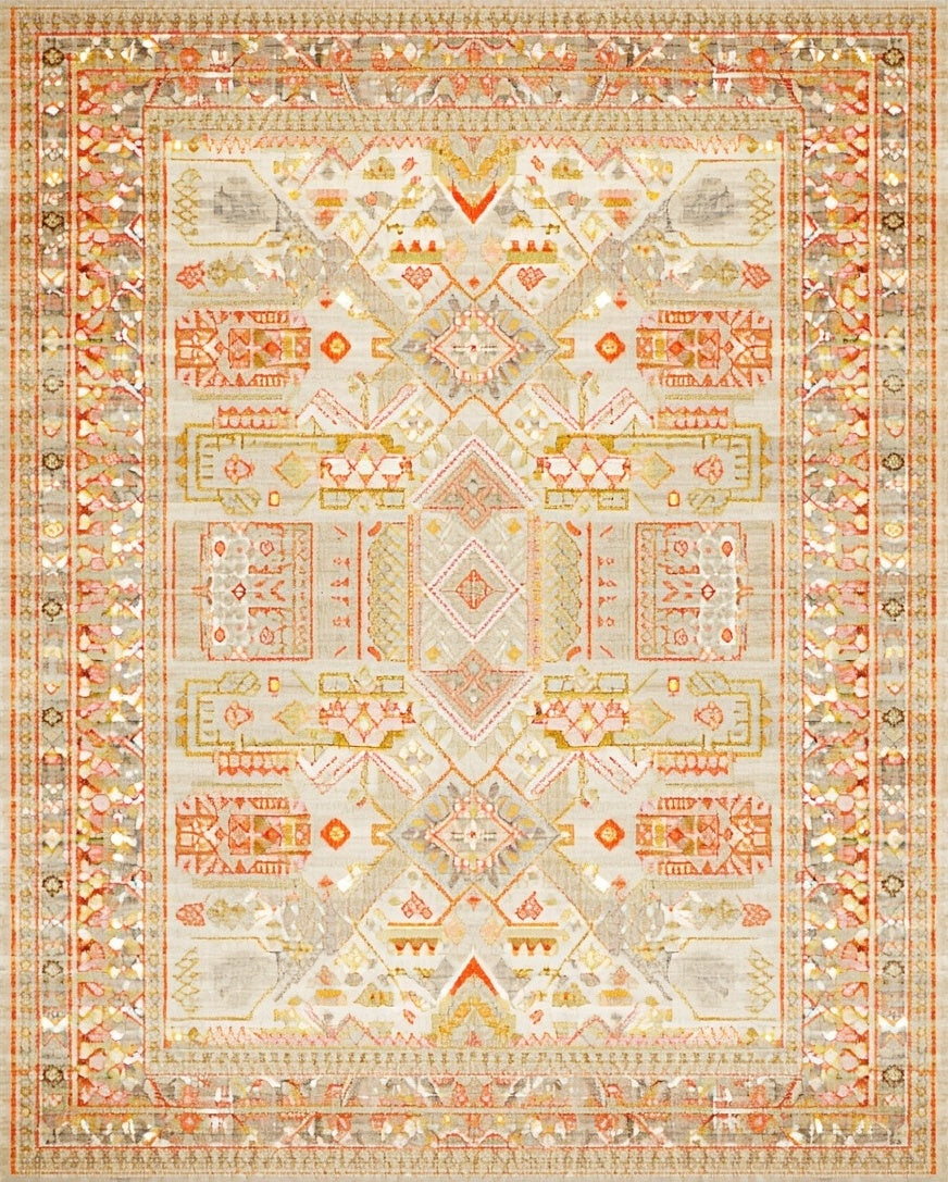 Ultra Soft Area Rug, Non Slip, Stain Resistant, Washable Area Rugs for Living Room, Bedroom, Geometric Farmhouse with Beige Orange Gold Elements(Beige) Overview: