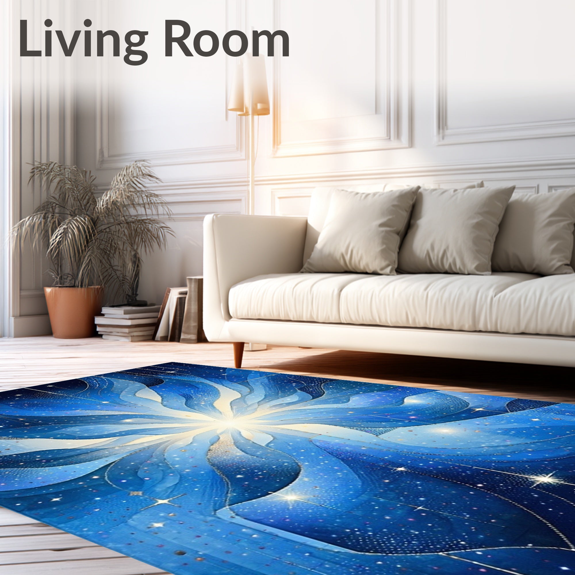 Ultra Soft Area Rug, Non Slip, Stain Resistant, Washable Area Rugs for Living Room, Bedroom, Geometric Galaxy Cosmic Design Blue and Silver(Blue) Overview: