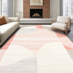 Ultra Soft Area Rug, Non Slip, Stain Resistant, Washable Area Rugs for Living Room, Bedroom, Geometric Harmony Cream & Pink Accent Area Beige Touch(Gray) Overview: