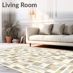 Ultra Soft Area Rug, Non Slip, Stain Resistant, Washable Area Rugs for Living Room, Bedroom, Geometric in Neutral Palette with Rectangular and Square Motifs(Beige) Overview: