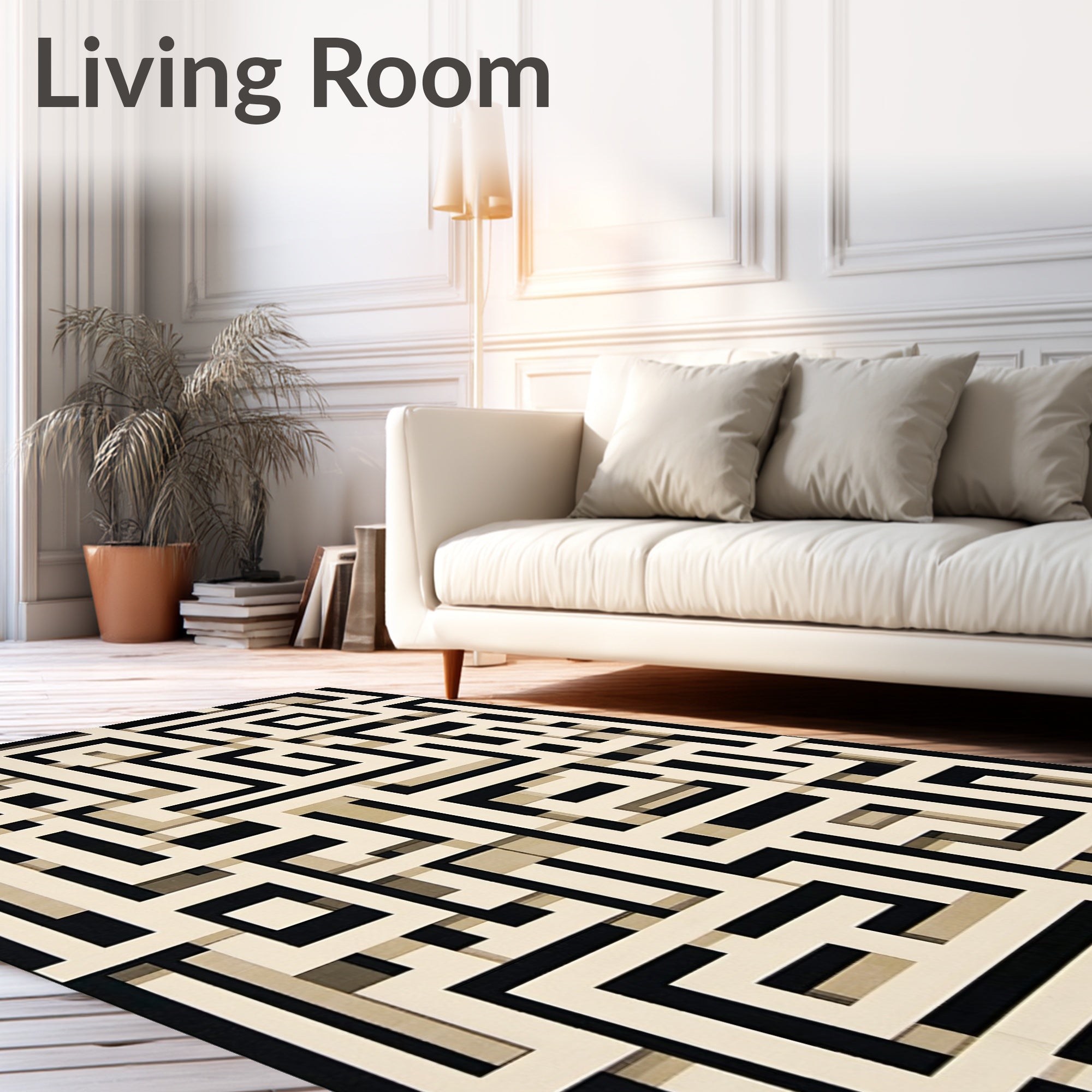 Ultra Soft Area Rug, Non Slip, Stain Resistant, Washable Area Rugs for Living Room, Bedroom, Geometric Maze Motif Area Contemporary Interlocking Shapes Accent(Beige) Overview: