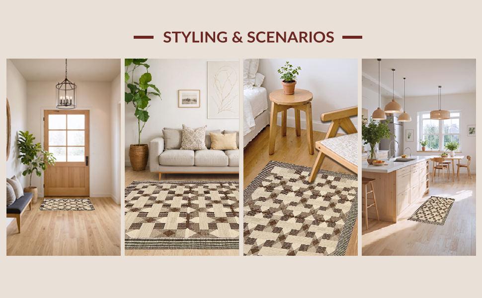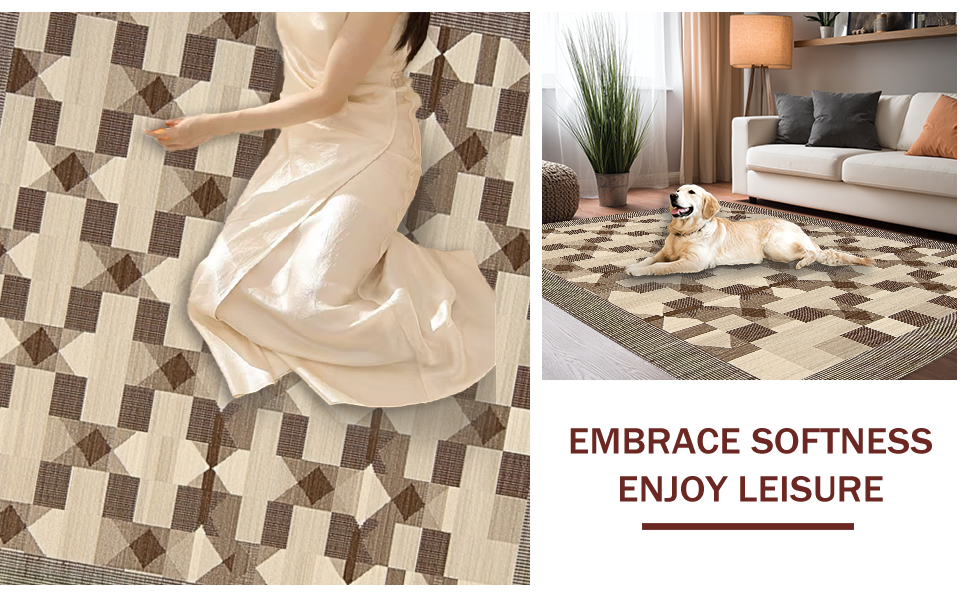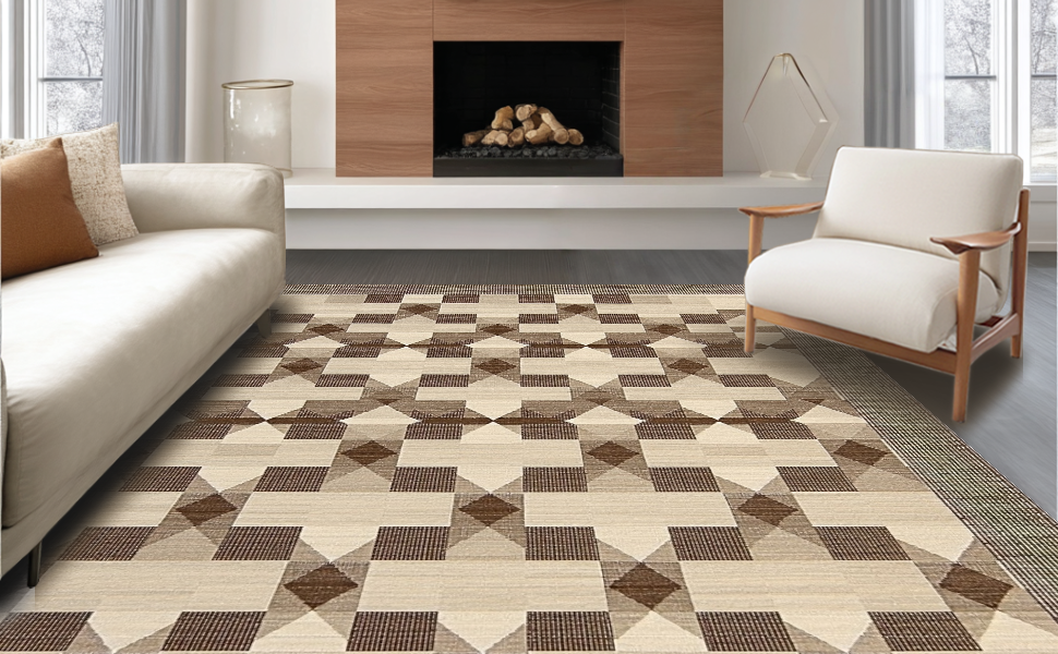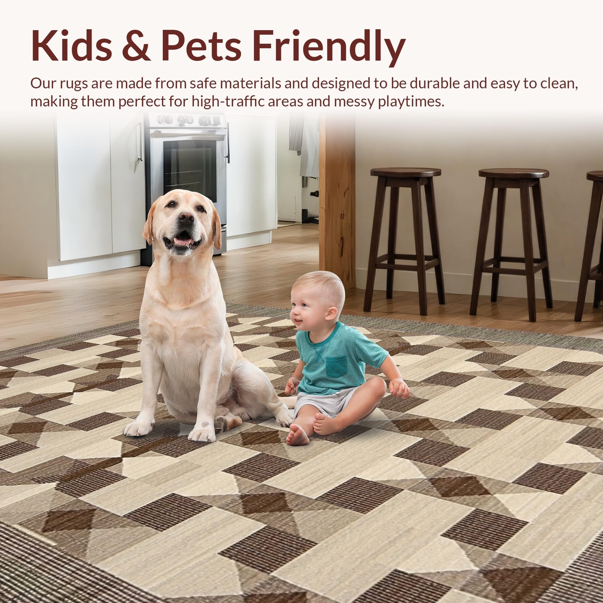 Ultra Soft Area Rug, Non Slip, Stain Resistant, Washable Area Rugs for Living Room, Bedroom, Geometric Natural Tones Elegance(Beige) Overview: