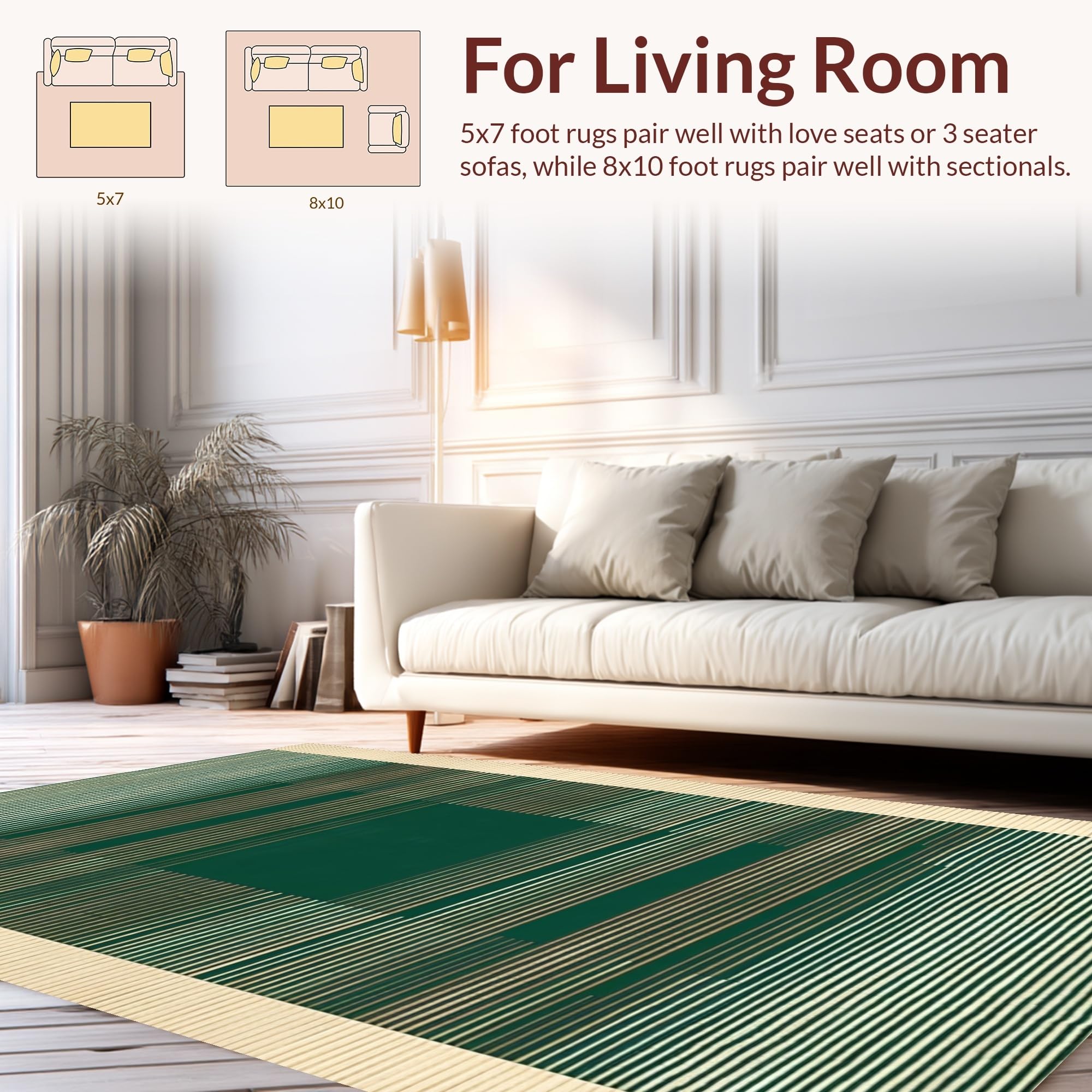 Ultra Soft Area Rug, Non Slip, Stain Resistant, Washable Area Rugs for Living Room, Bedroom, Geometric Ocean Inspired Tones(Green) Overview: