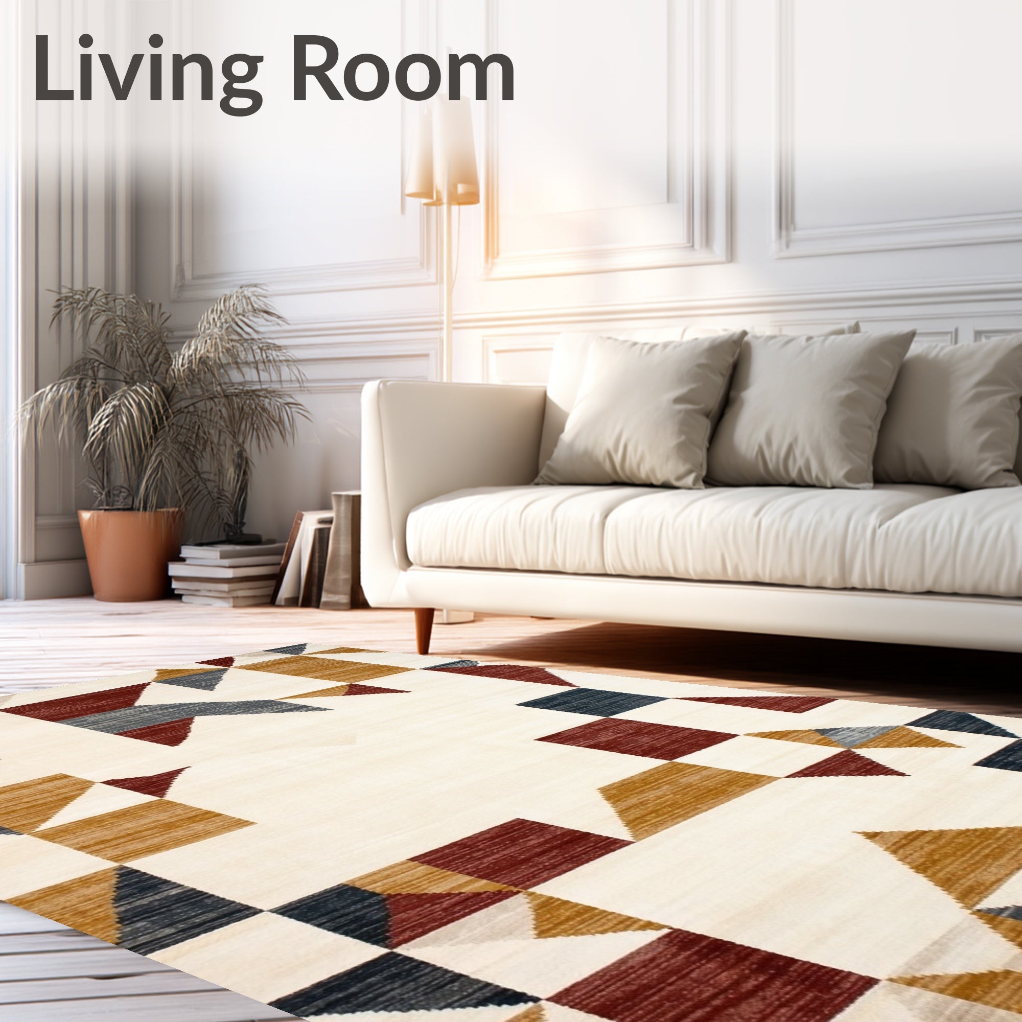 Ultra Soft Area Rug, Non Slip, Stain Resistant, Washable Area Rugs for Living Room, Bedroom, Geometric patterned Area(Beige) Overview: